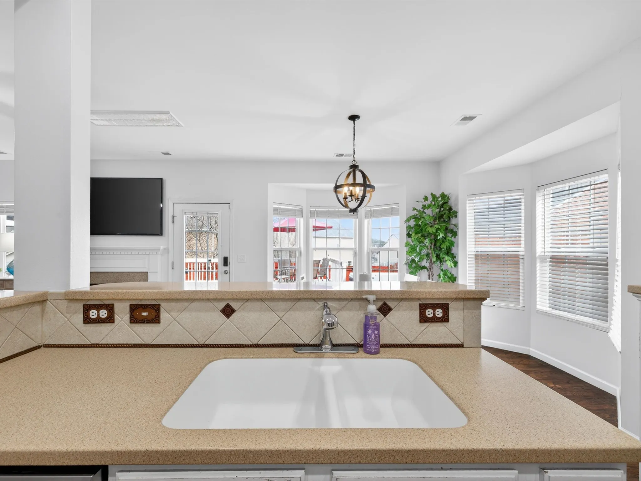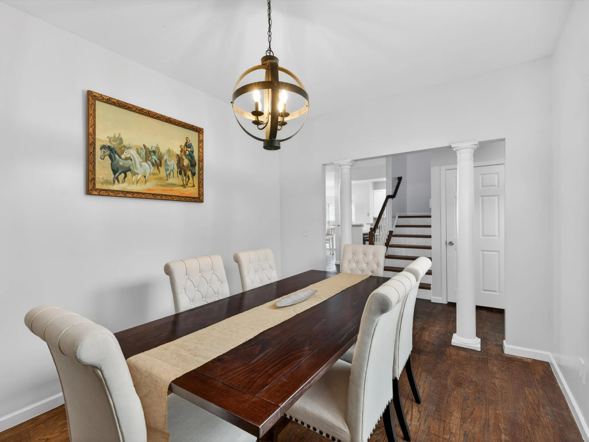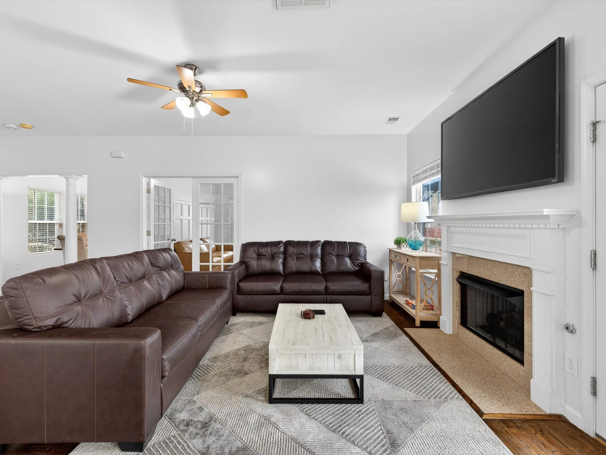 At the heart of the home, the kitchen features ample cabinet space and a convenient pantry, making organization effortless. It flows seamlessly into living areas, creating an inviting space for gatherings or everyday living. Hardwood floors and abundant natural light throughout enhance the warm, welcoming atmosphere. Property sold as-is.
