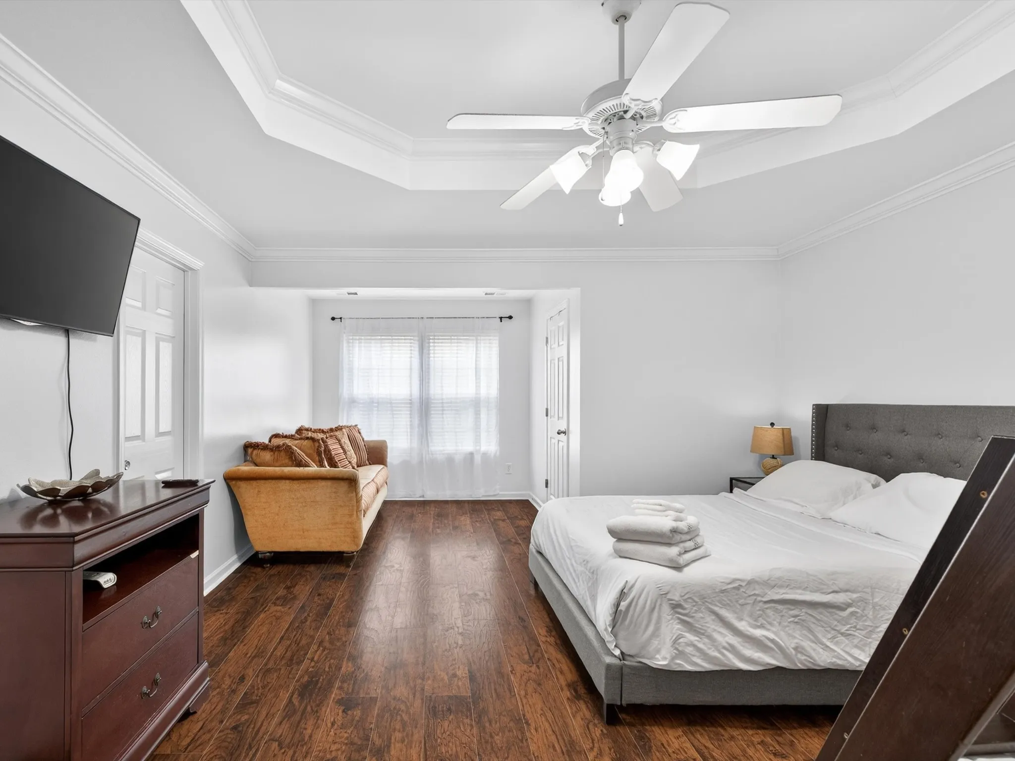All 4 upstairs bedrooms are thoughtfully positioned near a spacious laundry room, adding both convenience and functionality. The primary suite provides a relaxing retreat with coffered ceiling, a walk-in closet and a full bath—perfect for unwinding at the end of the day.