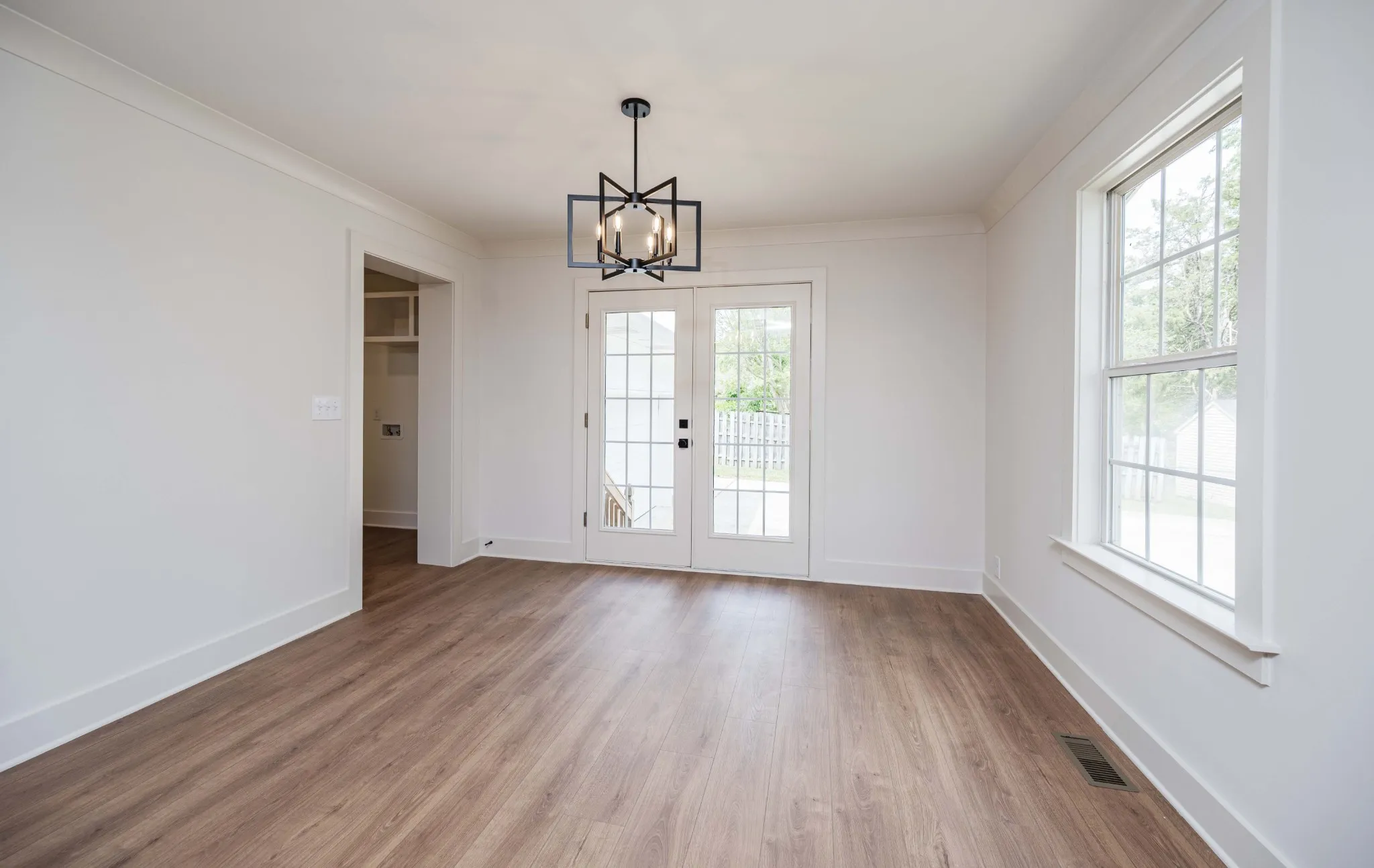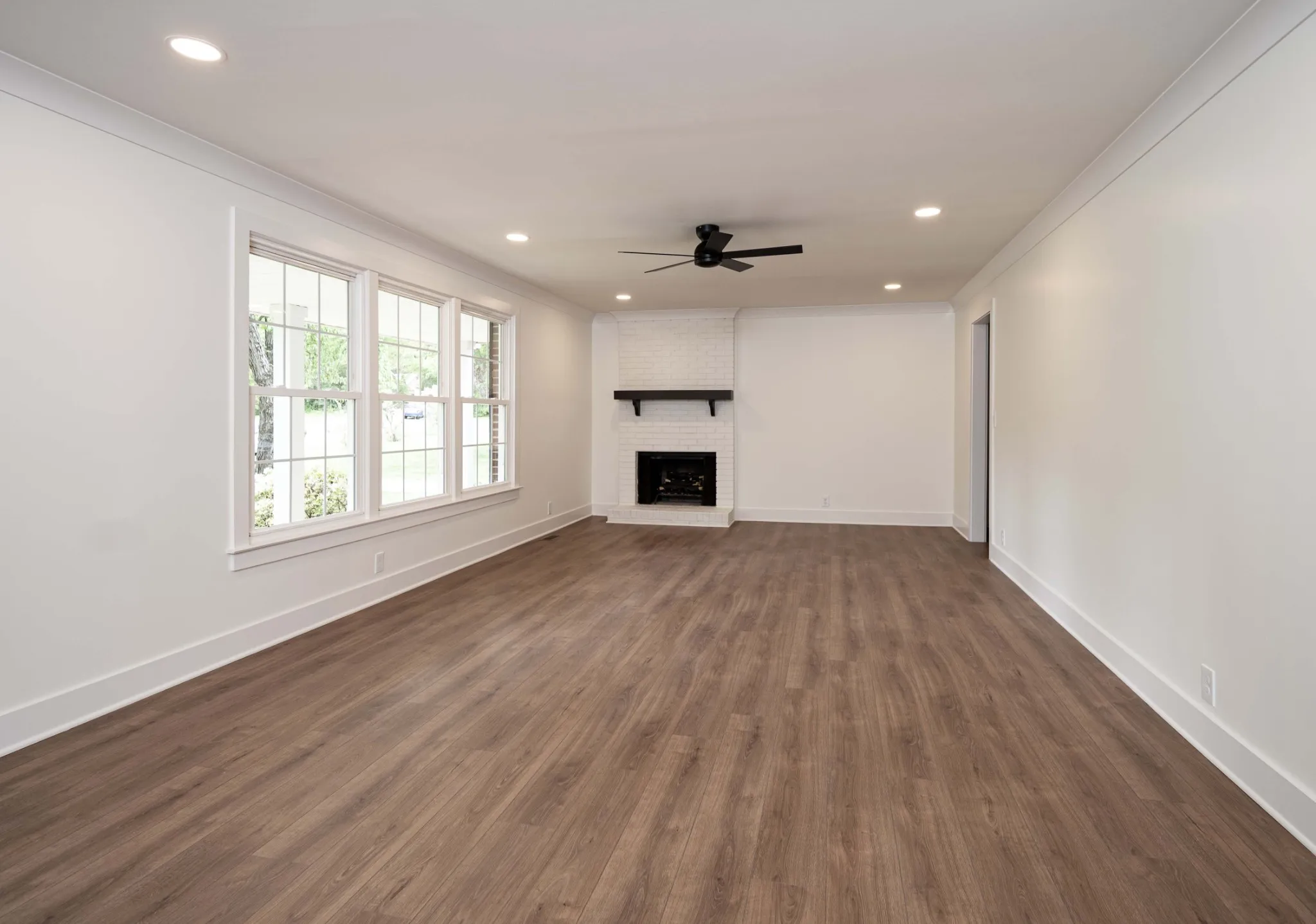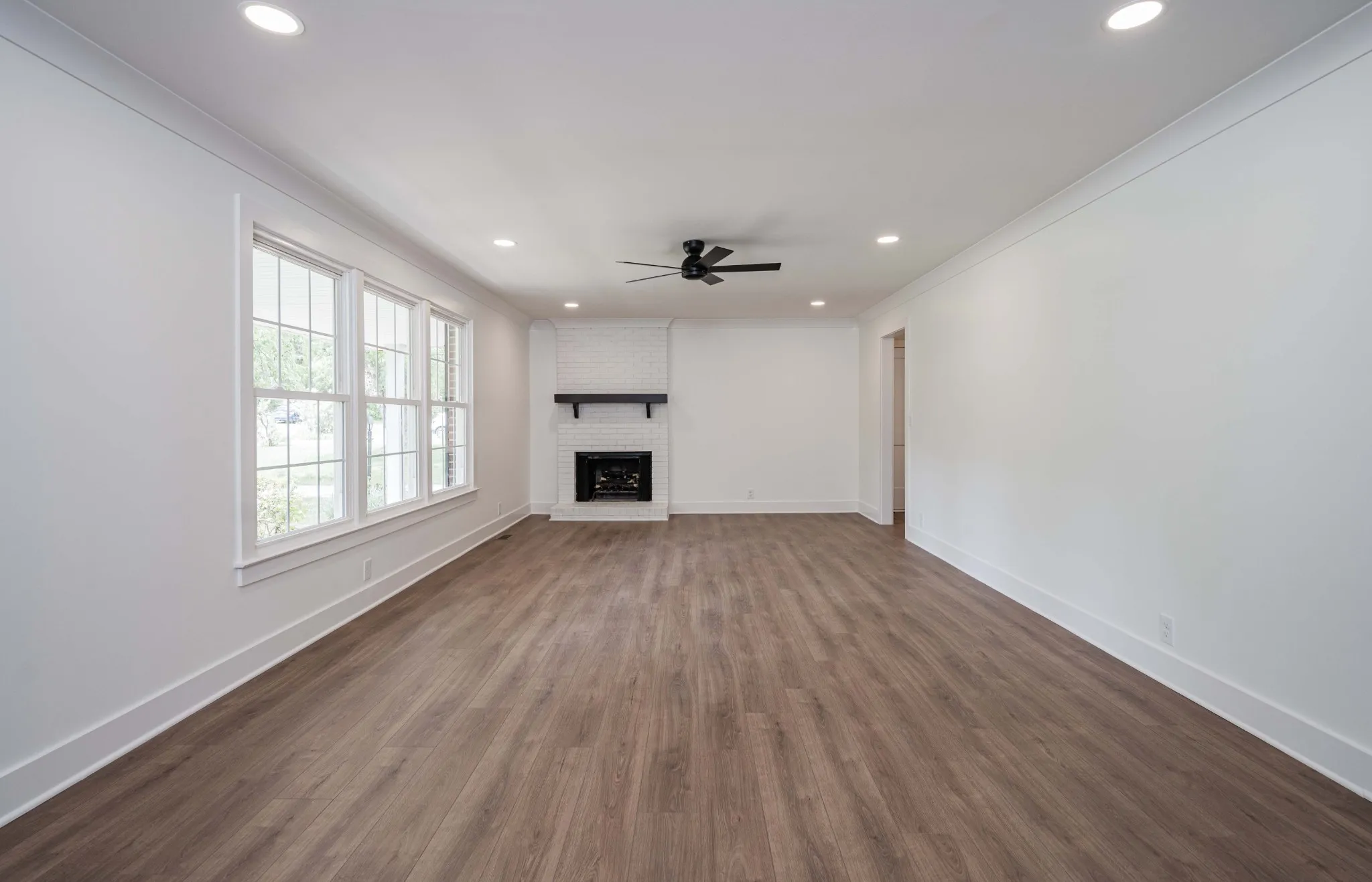 This stunning 3BR/2BA brick ranch in Antioch blends timeless curb appeal with thoughtful modern updates throughout. The open living room is anchored by a white-painted brick fireplace with a bold dark wood mantel, new LVP flooring, and recessed lighting. The kitchen impresses with rich raised-panel cabinetry, granite countertops, stainless steel appliances, and a center island perfect for entertaining. Both bathrooms are fully renovated featuring quartz countertops, double vanities, matte black fixtures, and designer vertical subway tile. A custom-built mudroom with bench, cubbies, and coat hooks connects directly to the oversized 2-car garage with epoxy-coated floors. The primary suite includes a spacious walk-in closet with custom built-in shelving. Major system updates include a new water heater and new insulation, giving buyers added peace of mind. Outside, enjoy a generous tree-shaded lot with a fully fenced backyard offering privacy and room to grow. This one checks every box!