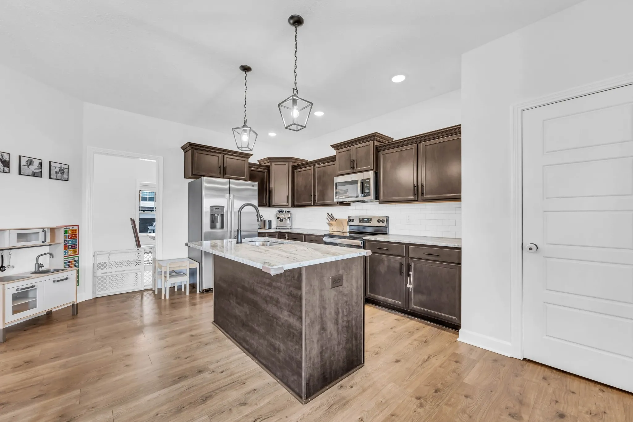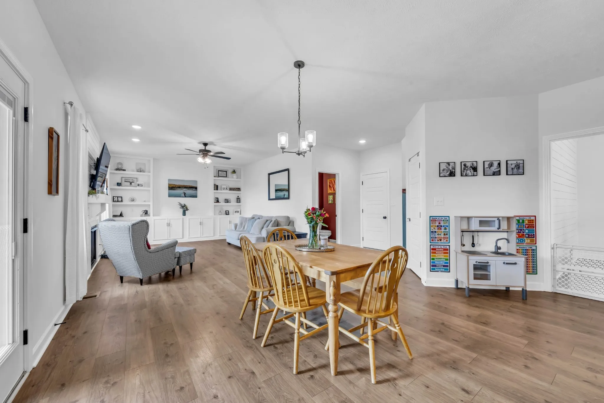 Not your typical home, this one is loaded with upgrades and standout finishes throughout. This beautifully designed home stands out from the start with strong curb appeal and quality finishes throughout. Step inside to a bright entry where a striking accent wall immediately sets the tone. LVP flooring flows across the main level into a spacious living room featuring custom built in cabinetry that adds both style and function. The kitchen is a true focal point with soft close cabinetry, granite countertops, stainless steel appliances, a modern tile backsplash, and a large pantry, built for everyday living while still perfect for entertaining. The adjoining dining area brings in character with a clean, eye catching shiplap accent wall. Upstairs, the primary suite offers a comfortable retreat with a tray ceiling, crown molding, and an ensuite featuring double vanities with granite countertops and excellent storage. Secondary bathrooms carry the same upgraded finishes, creating a consistent, polished feel throughout. A large linen closet and floored attic provide even more storage. Major upgrades continue with an enhanced crawlspace featuring a moisture barrier for added peace of mind. Outside, enjoy a fully fenced backyard perfect for relaxing, entertaining, or everyday use. Located with convenient access to shopping, dining, schools, and Fort Campbell, this home offers the ideal blend of location, upgrades, and everyday functionality.