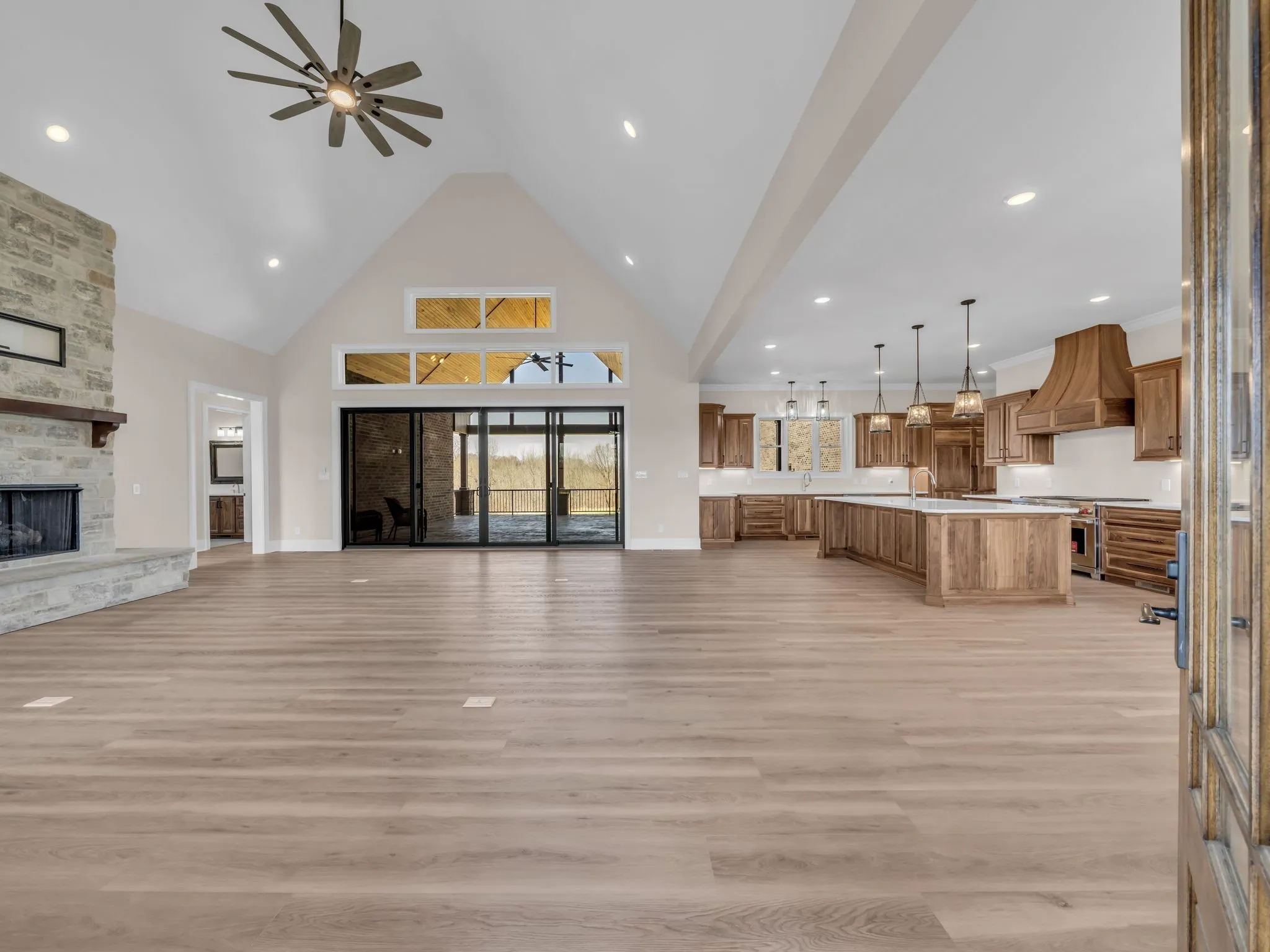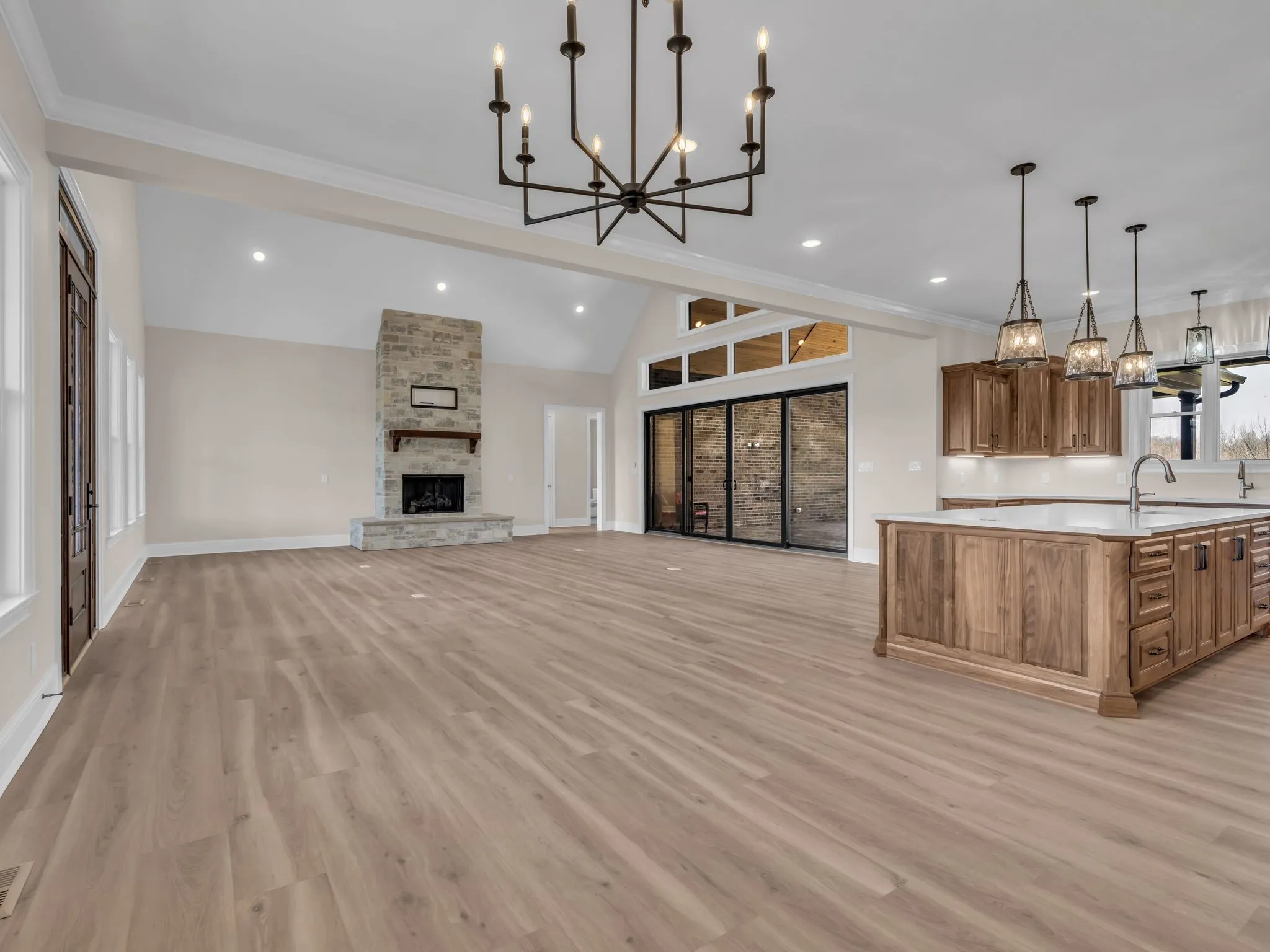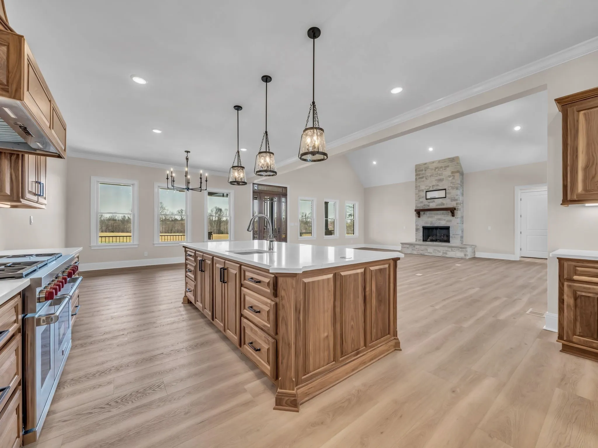 MUST SEE TO APPRECIATE! BRAND NEW, BEAUTIFUL CUSTOM BUILT ALL BRICK HOME ON 40 ACRES! 3 Large Bedrooms, 3 Full Baths, 1 Half Bath. Custom Walnut Cabinets thru Entire Home! Kitchen has Sub Zero 60 Inch Refrigerator/Freezer, 48 Inch Wolf 6 Burner Dual Fuel Gas Cook Top with Electric Oven and a Cove Dishwasher! Custom Quartz Counter Tops, Soft Close Drawers. HUGE Pantry! Living Room is Open Concept with Stone Gas Log Fireplace, Cathedral Ceilings that Extend to Covered Back Porch Area, thru 16×8 Ft Tall Glass Doors with Windows above Doors. Primary Bedroom is 20×20 and has a Double Tray Ceiling with Crown Molding, Double Vanities with Cosmetic Area, Extra Large 2 Person Heated Whirlpool Tub! Separate 6×6 Tile Shower with Dual Shower Heads, Hand Held and Rain Head! Heated 2×4 ft Tiles in ALL Full Baths! Primary WIC is 29×8 Ft with Bult-In Shelving. The Secondary Bedrooms are 14×14 with Large Closets. Upstairs has an Expansive Living Area with 14×22 Office or 4th Bedroom with 8×14 WIC and Custom Full Kitchen, with Bosch Appliances and Full Custom Bathroom! This Area Would be a Perfect Mother-in-Law Suite, Man Cave or Teen Hang Out. THERE IS NOTHING ORDINARY ABOUT THIS HOUSE! GREAT Outdoor Living Space with 41×10 ft Front Covered Porch, Two Covered Back Porch Areas: 23×30 and 20×12, All Stamped Concrete. Attached, 29×50 3 Single Door Garage. House is Smart Wired Thru-Out for Internet and Security Cameras. The acreage is 20 open pasture and 20 wooded, Partially Fenced. This Home was Built with 2×6 Exterior Walls on the Main Level. Has Andersen 400 Series Windows In Dark Bronze, Encapsulated Crawl Space with a Dehumidifier. All 3 Dual Fuel Trane HVAC Units have the HALO-LED, Whole Home Air Purification for Entire Home. Home has a Water Filtration Syst