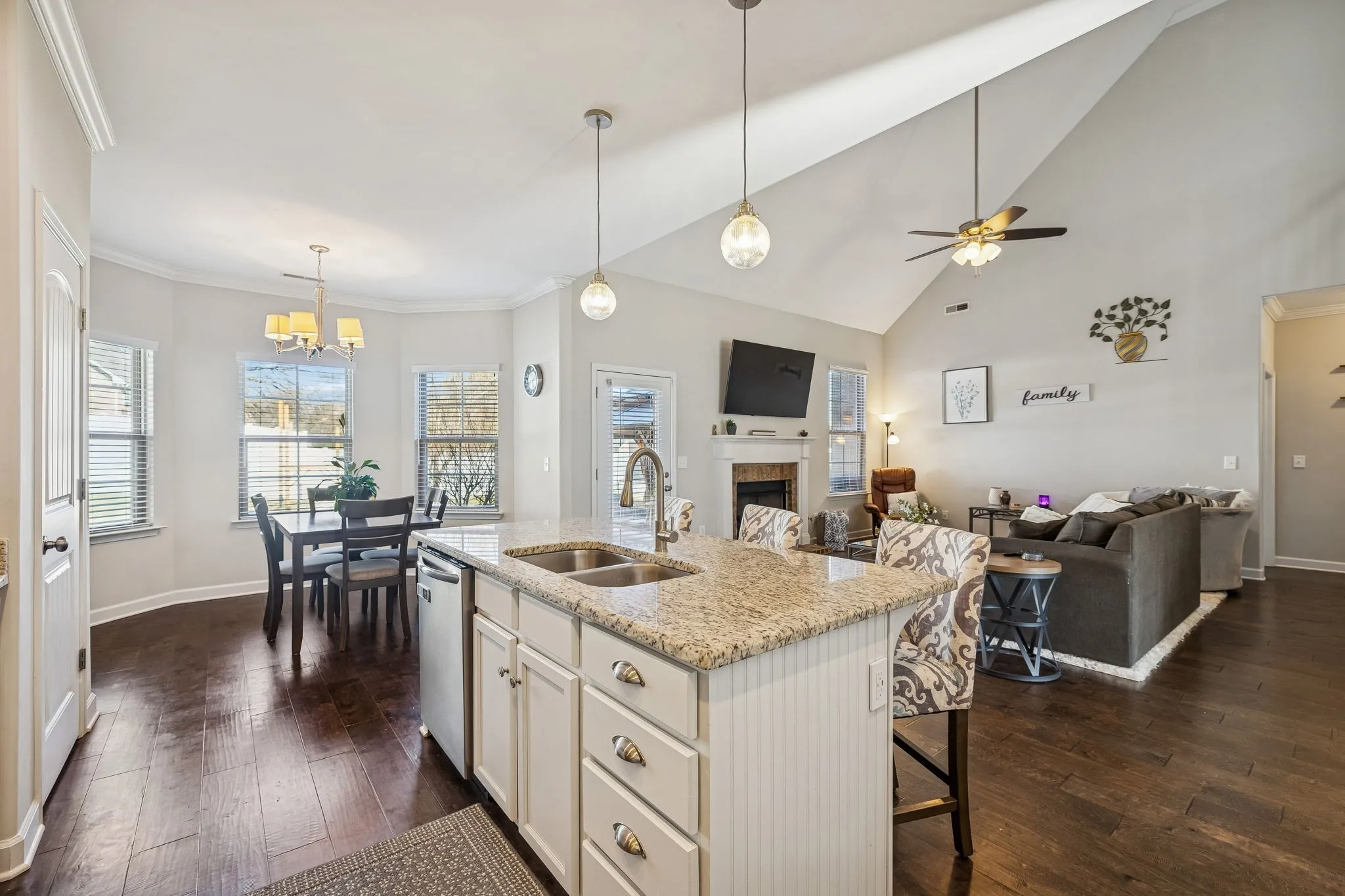 Welcome to 1600 Inverness Drive, where quality construction meets thoughtful upgrades in one of Spring Hills most sought after locations.Built in 2016, this 4 bedroom, 3 bath residence offers an open floor plan filled with character, space, and timeless finishes.The main level features vaulted ceilings, elegant custom rounded walls, and a seamless flow ideal for both everyday living and entertaining. The kitchen has white cabinets, granite countertops, and stainless steel appliances. The Primary suite is conveniently located on the main level, along with an additional bedroom, perfect for guests, a home office, or multigenerational living.Upstairs, you will find two spacious bedrooms and a large bonus room, offering flexible space for a media room, playroom, or a second living area. Throughout the home there are custom wood built shelving in the closets, upgraded LVP flooring, and new carpeting. Additional upgrades include whole home water filtration ,refrigerator, New fireplace insert, and a Vinyl privacy fencing. Home is equipped with 3 HVAC units for efficiency, creating a move in ready experience both inside and out. Situated on a corner lot, the home also includes an oversized 2 car garage. Minutes from shopping, dining, and top rated Williamson County schools. A luxury retail development called Sagefield is planned for the neighboring town for convenient shopping. Homes like this Don’t come around often, schedule your showing today.