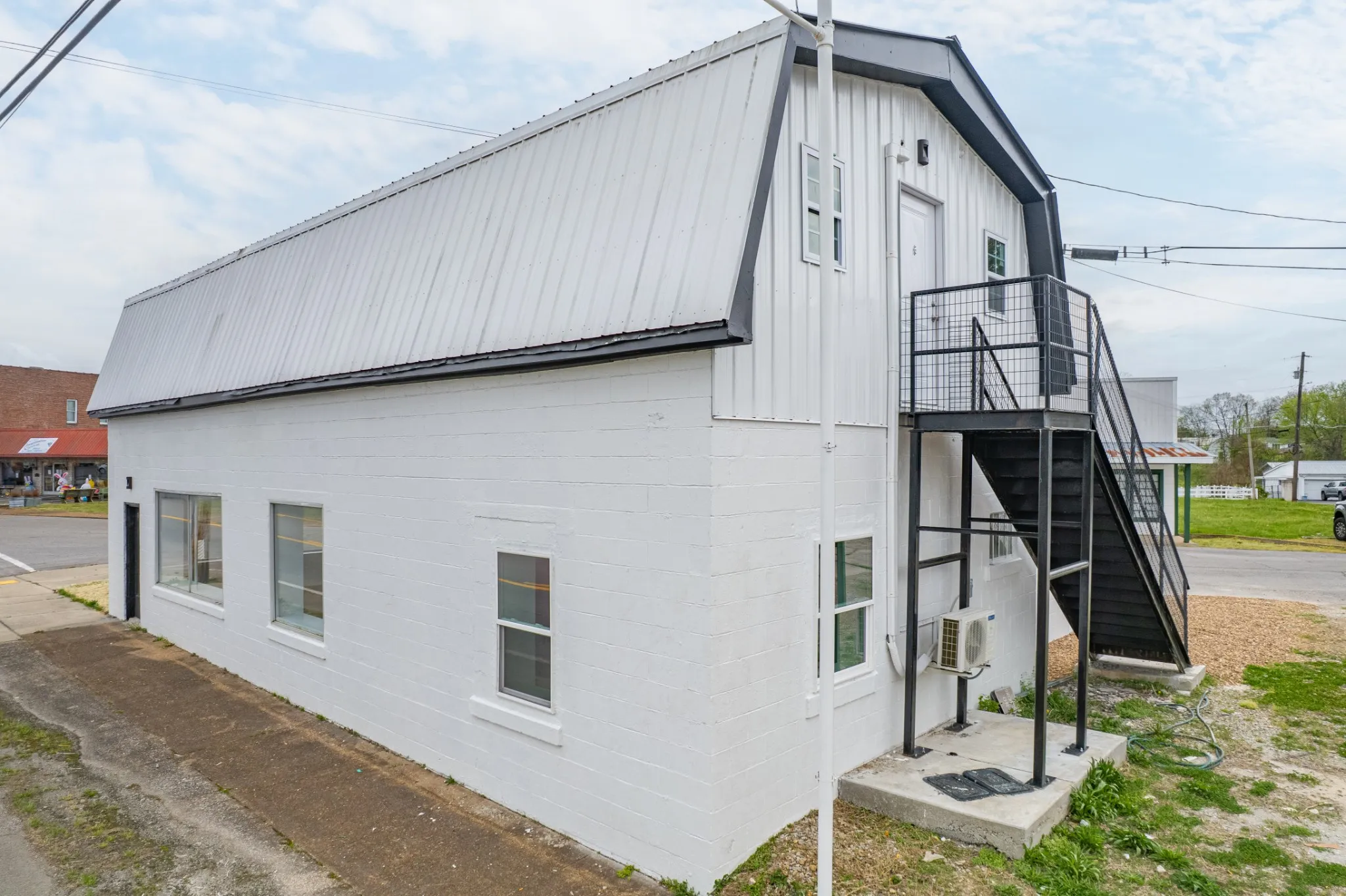 UPSTAIRS, you’ll find Additional Finished Space…ideal for Office Expansion or Living Space. ~Full Kitchen Setup ~1 Bedroom ~Full Bath ~Built-in Dumbwaiter ~Rental Income Potential or Live/Work Flexibility. Unique Spiral Staircase access adds character while maximizing space efficiency. And an Exterior Staircase for Easier Access for Furnishings.