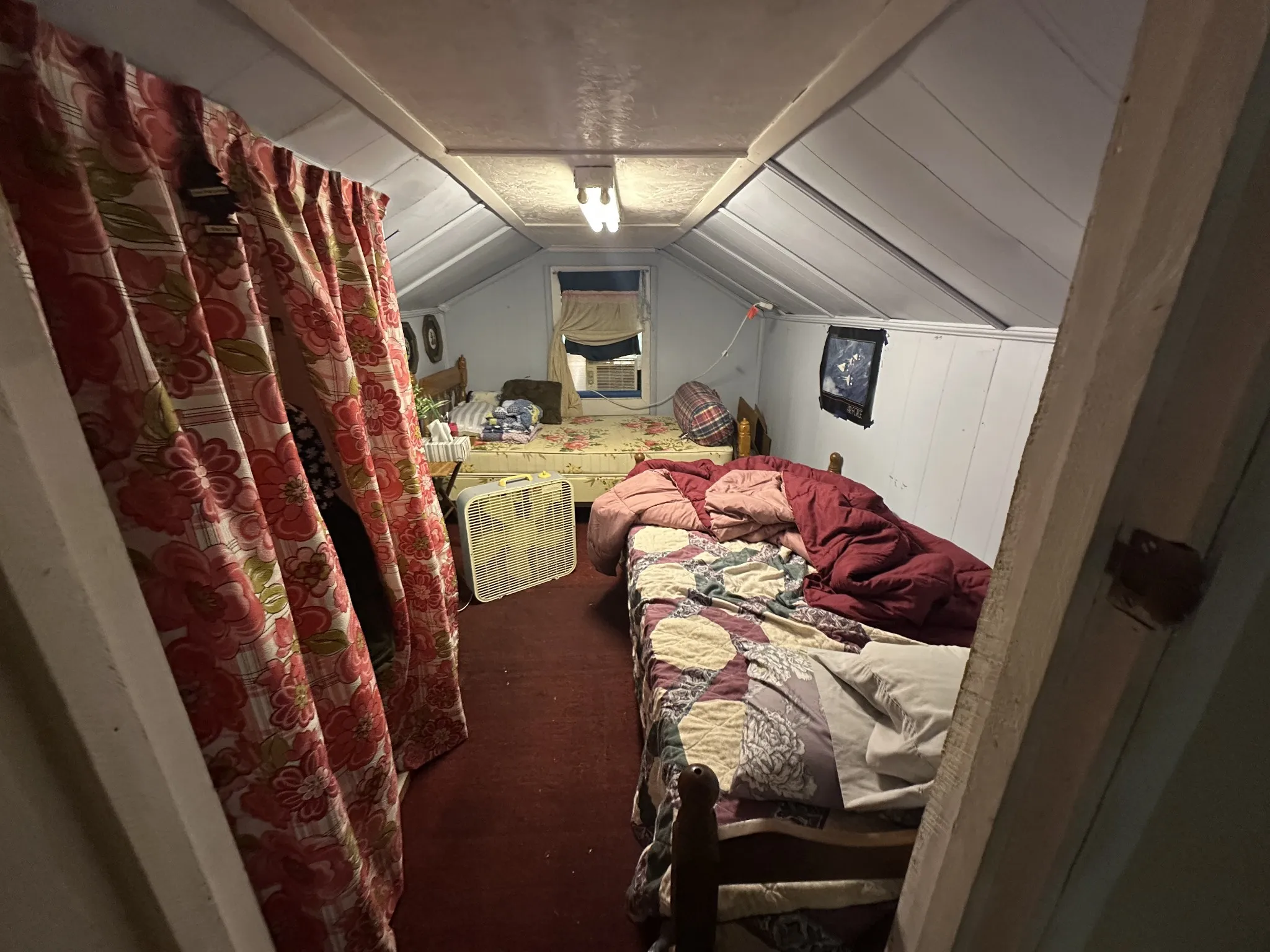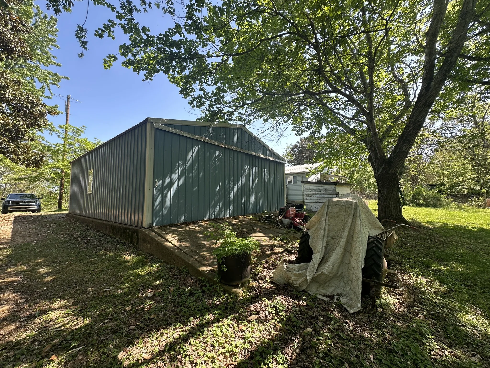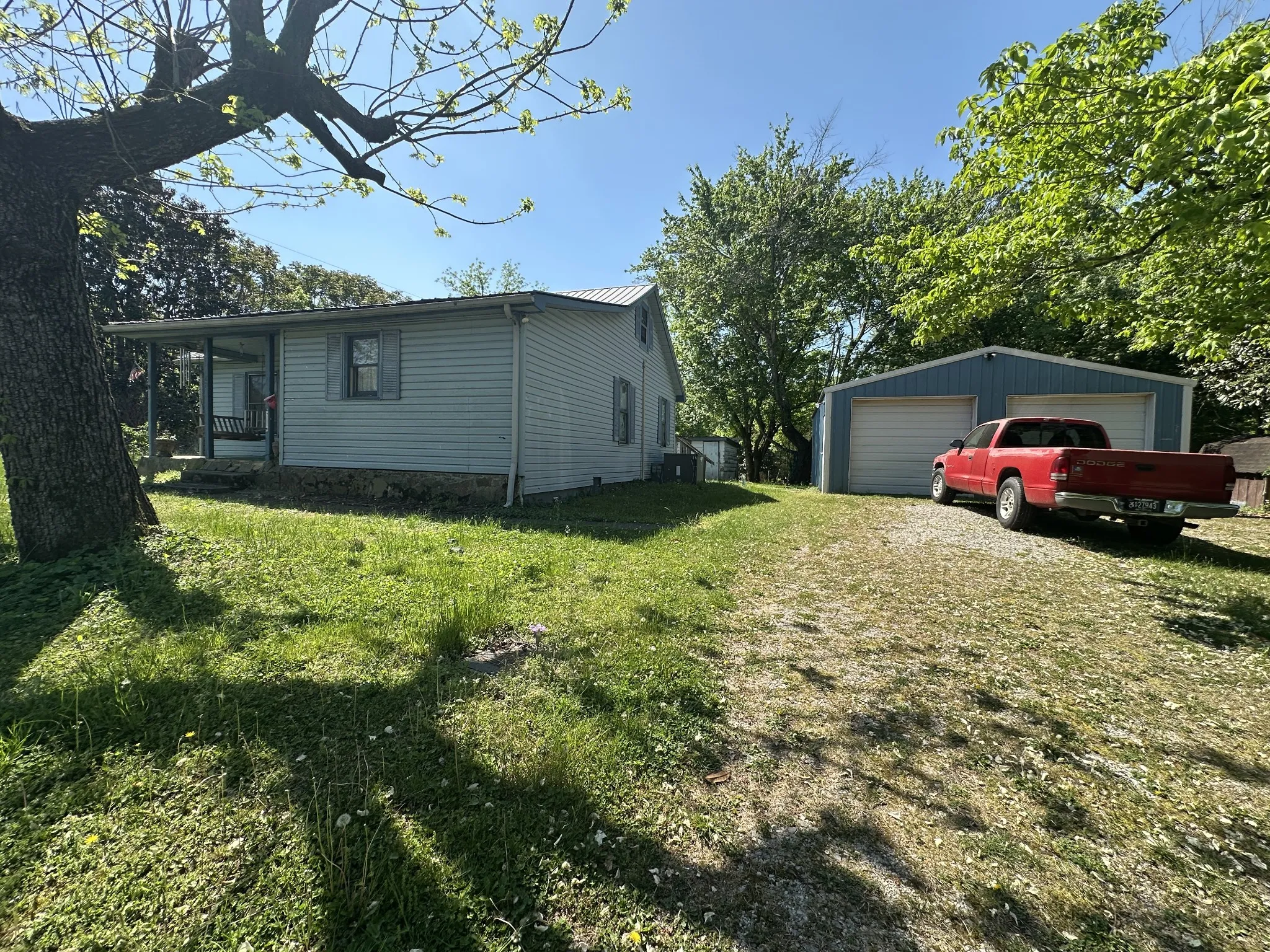Unique opportunity at hand – land, detached garage, and residence under 100k! Main level offers 2 bedrooms, 2 full bathrooms, a spacious living room, combination kitchen/dining room, and a full utility space with pantry! The upper level is a converted attic space with two distinct spaces. This previous residence is located on 0.8 cleared and level acres with mature trees and plenty of space for a garden or room to stretch out. TWO-CAR DETACHED GARAGE. Selling as-is, seller to make no repairs. Cash or Conventional. Vehicles, tractor, couch in living room and minimal personal items will not convey. Move into an affordable housing option, renovate and flip, or demo and build your dream home – possibilities are endless!