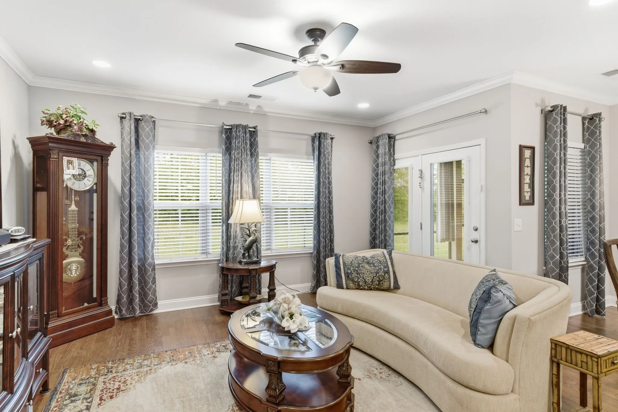 Inside, the home features a bright and welcoming layout filled with natural light from numerous windows throughout. Designed for easy everyday living, the main level offers step-free access and includes two bedrooms along with a dedicated office, creating the ideal setup for guests, remote work, or hobbies.