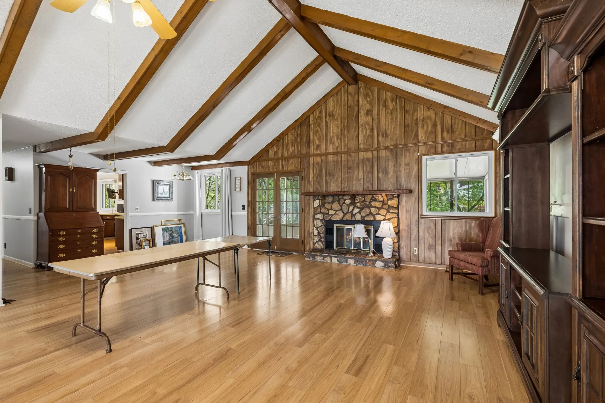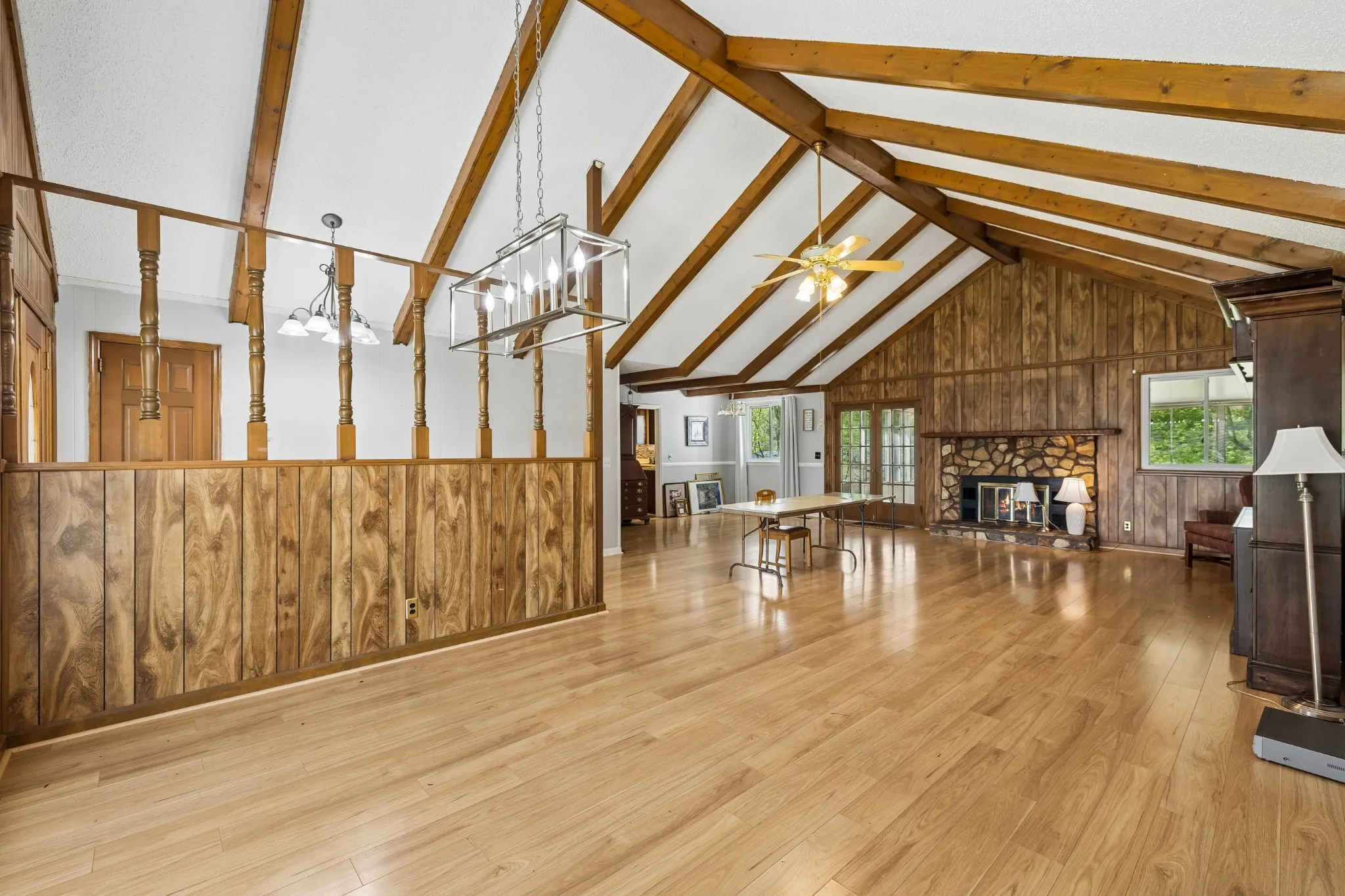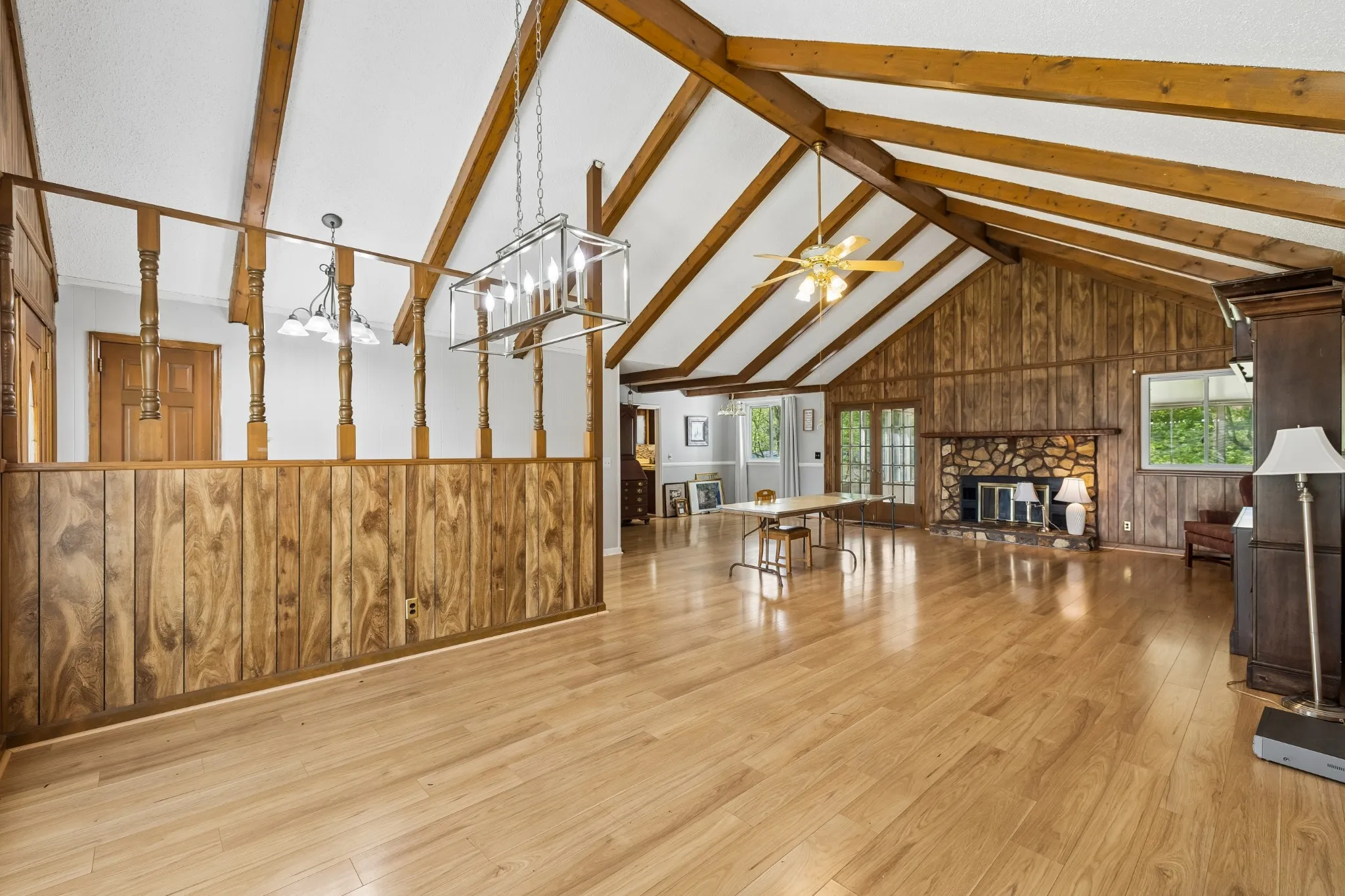 Nearly 4,000 finished sq ft of opportunity in this all-brick ranch with full basement and incredible renovation potential. Ideal as a spacious single-family home, multigenerational setup, teen/in-law suite, or possible owner-occupied STR. Great bones with character features including a stunning stone fireplace, cathedral ceiling, and wood beams. Main level offers 3 bedrooms and 2 baths. Basement includes 1 bedroom, 1 bath, 2 bonus spaces, shop area, and heated/cooled tandem 2-car garage. Major updates already completed with newer roof, appliances, and HVAC systems, windows, plus whole-house generator and lifetime structural warranty. Heated and cooled garage with an Insulated garage door. Needs cosmetic updates but packed will great features.