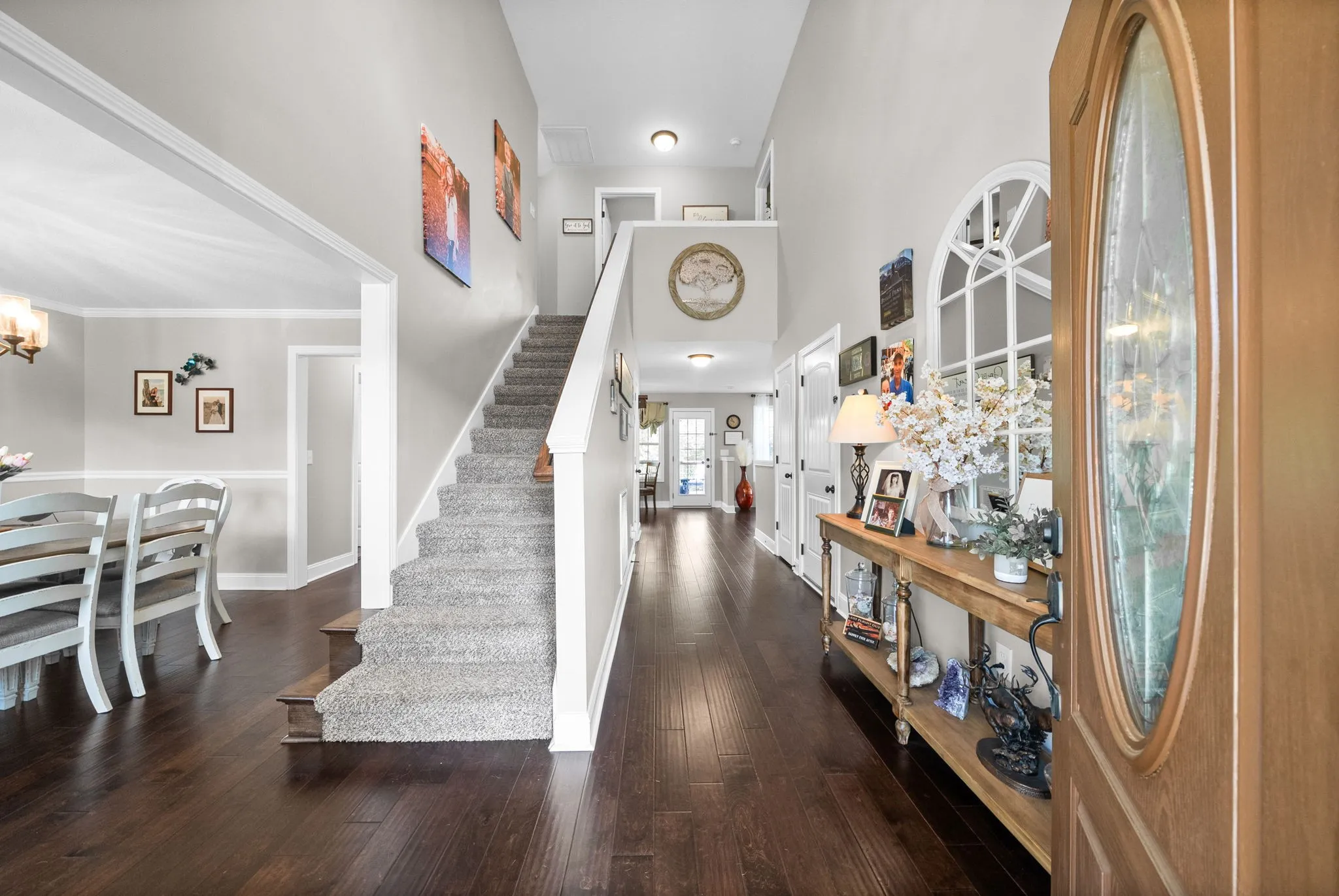This beautifully maintained four bedroom home is perfectly situated on a large, private, tree-lined lot that offers both tranquility and space to enjoy the outdoors. Designed with comfort and style in mind, this updated home features an open floor plan filled with abundant natural light, creating a warm and inviting atmosphere throughout. The heart of the home is the stunning kitchen, complete with a gorgeous backsplash, stainless steel appliances, granite countertops, and a spacious pantry, ideal for everyday living and entertaining. The living room is highlighted by a cozy fireplace and offers ample space to gather and relax. A formal dining room, laundry room, and half bath complete the thoughtfully designed main level. Upstairs, all four bedrooms provide privacy and comfort. The primary suite is a true retreat, featuring a tray ceiling, eye-catching feature wall, and a spacious layout. The attached primary bathroom includes a separate soaking tub, fully tiled shower, double sinks, and a large walk-in closet. Step outside to your own outdoor haven, this is a backyard that does not disappoint, it’s a perfect space for unwinding after a long day or hosting guests with an oversized deck that offers both covered and open areas for year-round enjoyment. Surrounded by mature trees, the property provides exceptional privacy and a peaceful setting where you can enjoy frequent visits from deer and local wildlife. Meticulously maintained and clearly reflecting pride of ownership, this home offers the perfect blend of comfort, style, and nature—plus the added bonus of no HOA.