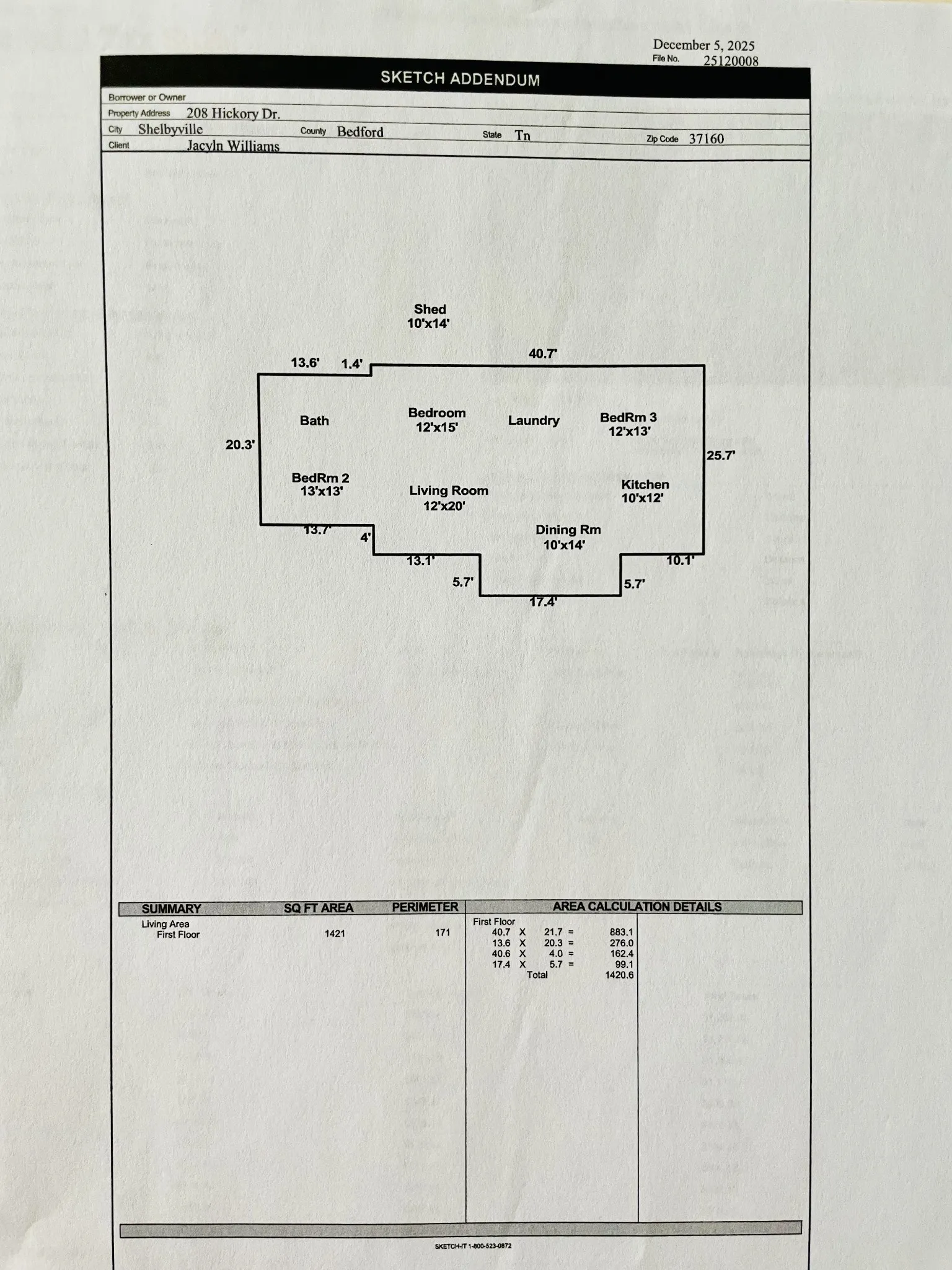 - Building Size: 1,421 Sqft