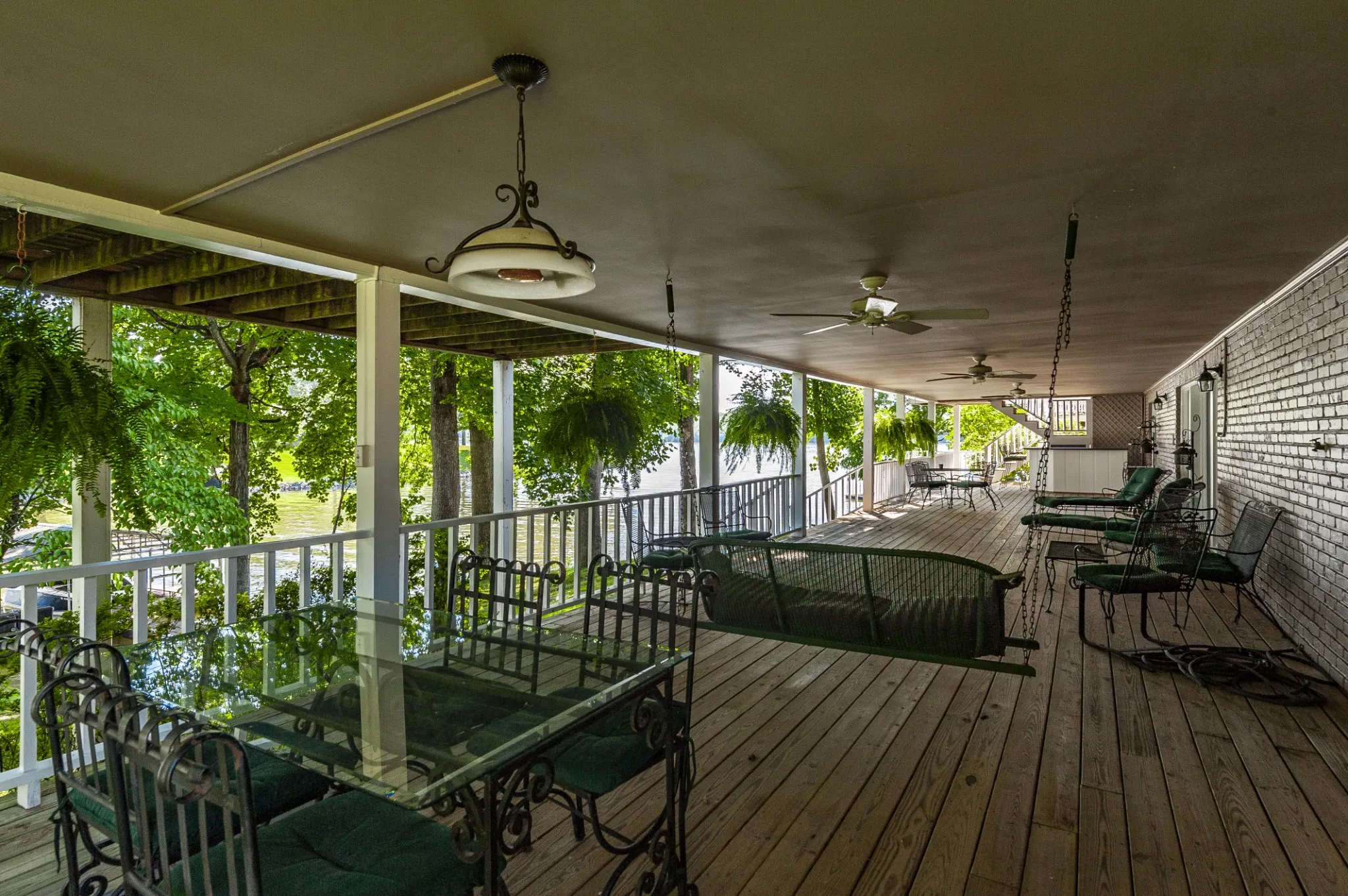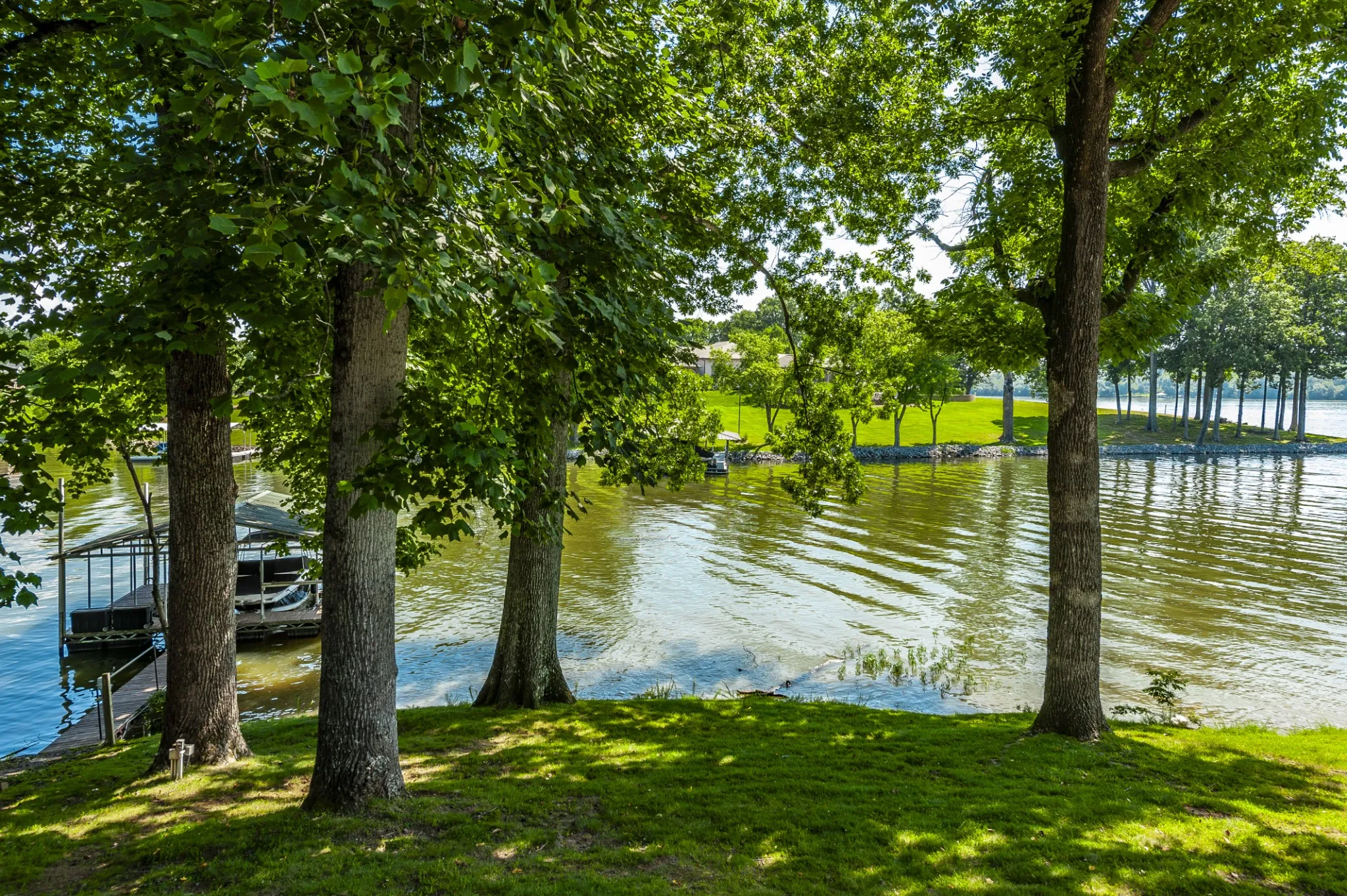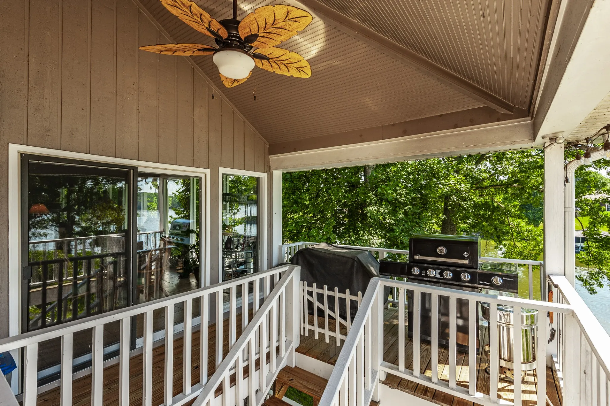 find generous storage and a full covered patio overlooking the lake, extending your living space outdoors year-round. Due to recent ice storm damage, the boat doc is