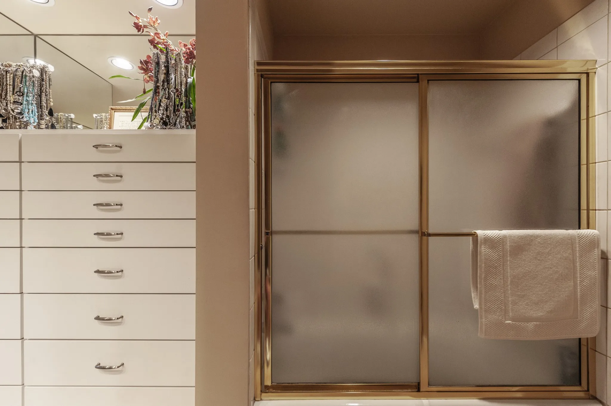 the sunsets over the water. The luxurious Master Suite offers dual bathrooms & closets, along with custom built-ins for ultimate comfort and functionality. Downstairs the