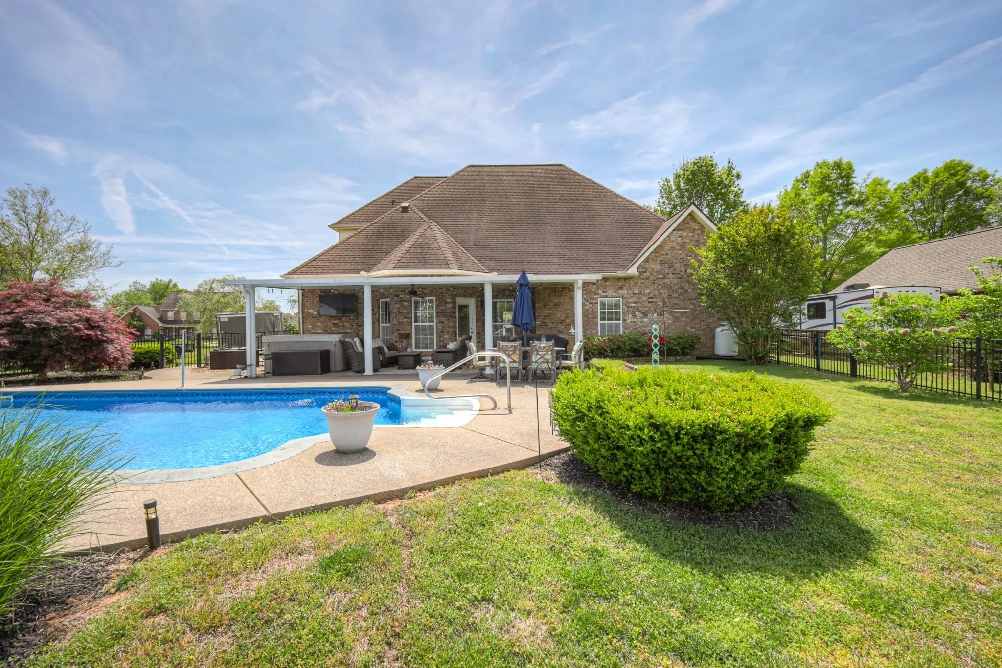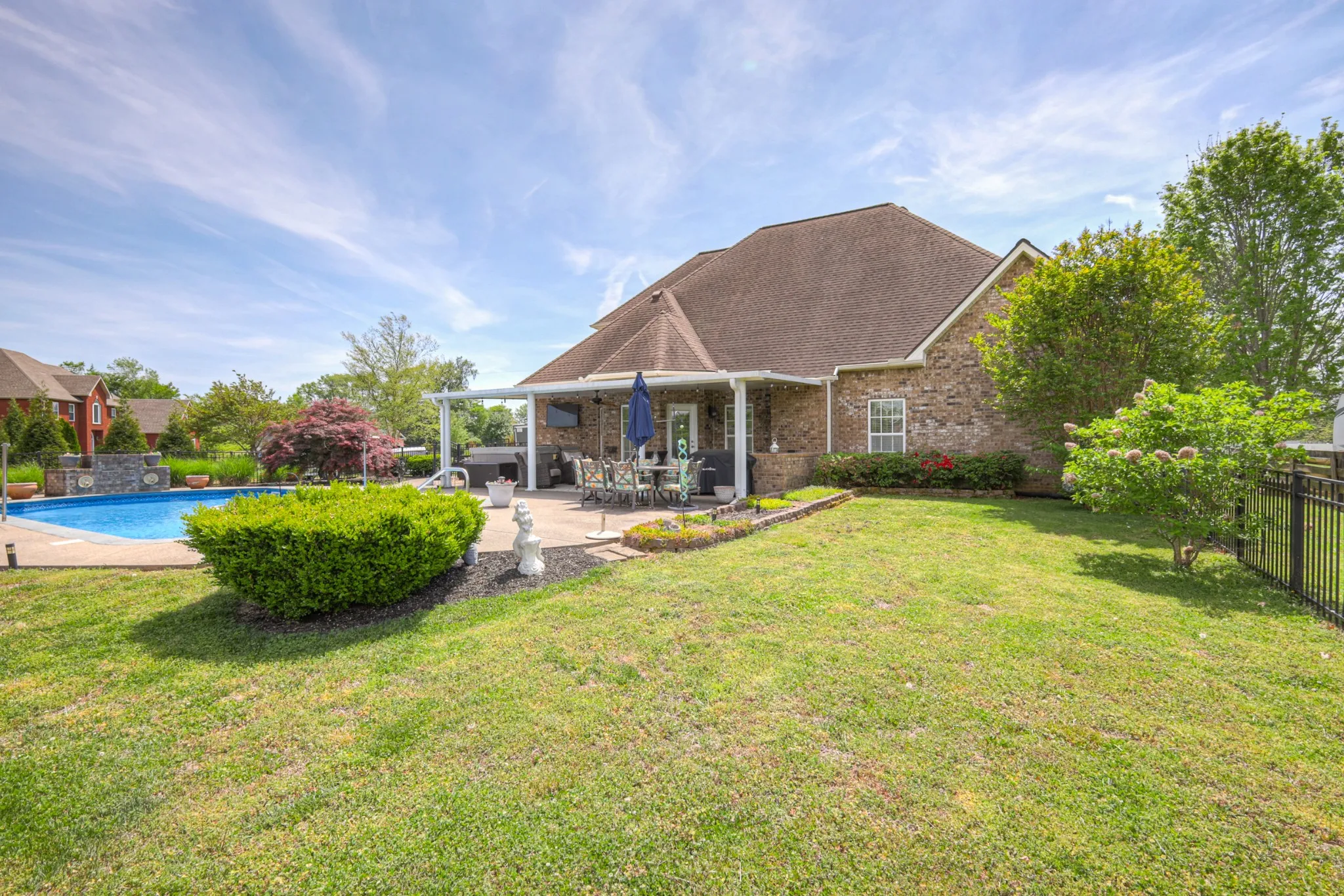 This home is ready for summer!! This home sits on 3/4 acre lot and has a wonderful outdoor living area including a large covered porch, beautiful inground pool and a nice area to lounge by the firepit in the evening!! Check out the floorplan under the media and see the huge downstairs primary suite and very large media/bonus room upstairs. This home features a great room with vaulted ceiling and fireplace, open kitchen with stainless appliances and formal dining room to entertain guests/family. This is a one owner home and sits on a dead end street in the Harvest Grove subdivision, a beautiful well established area. It is also less than 1 mile to Wilson Elementary and only 4 miles to I-840. This home has a 4 bedroom perc site! Do not miss out on this very well cared for home!!
