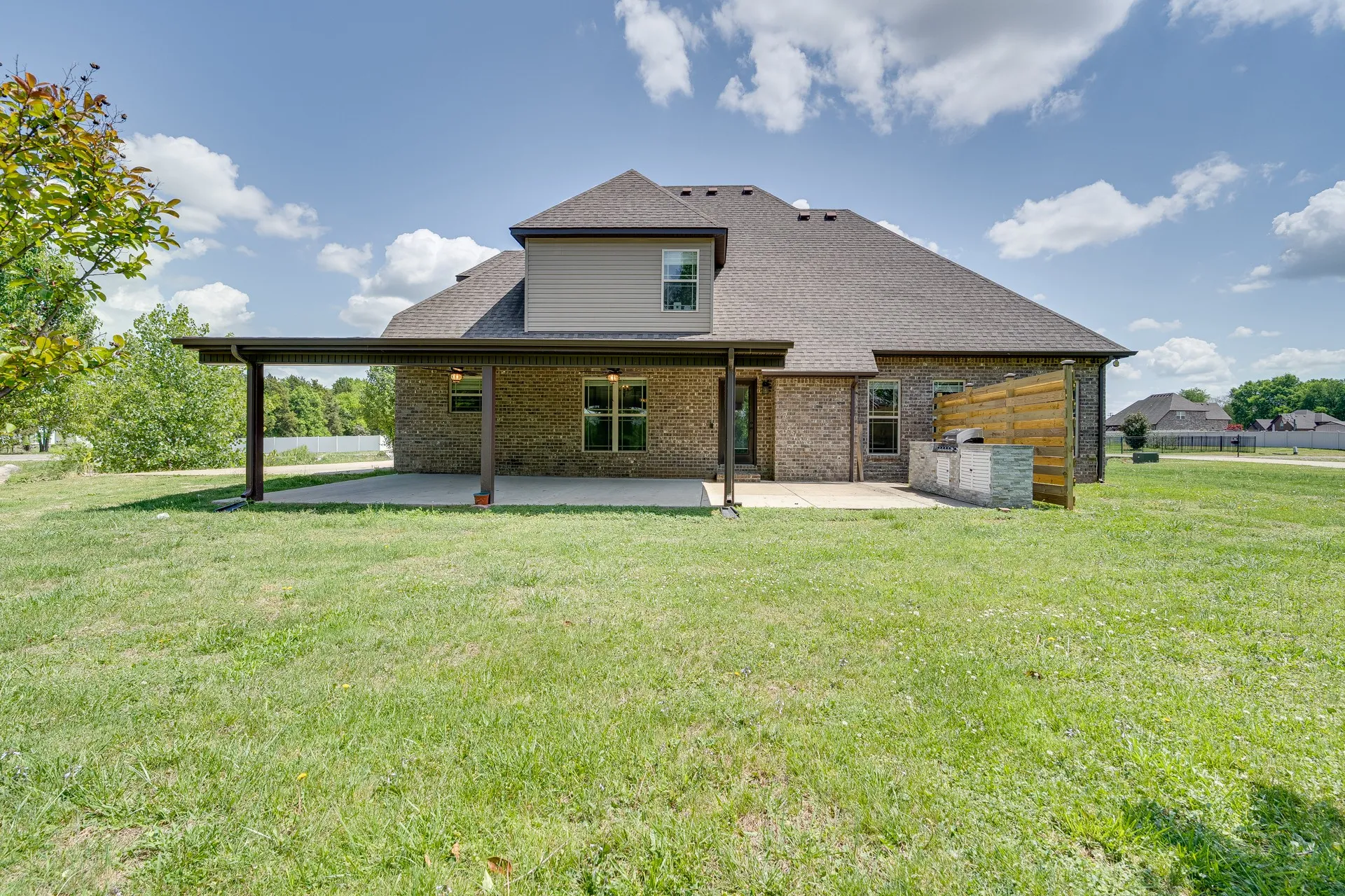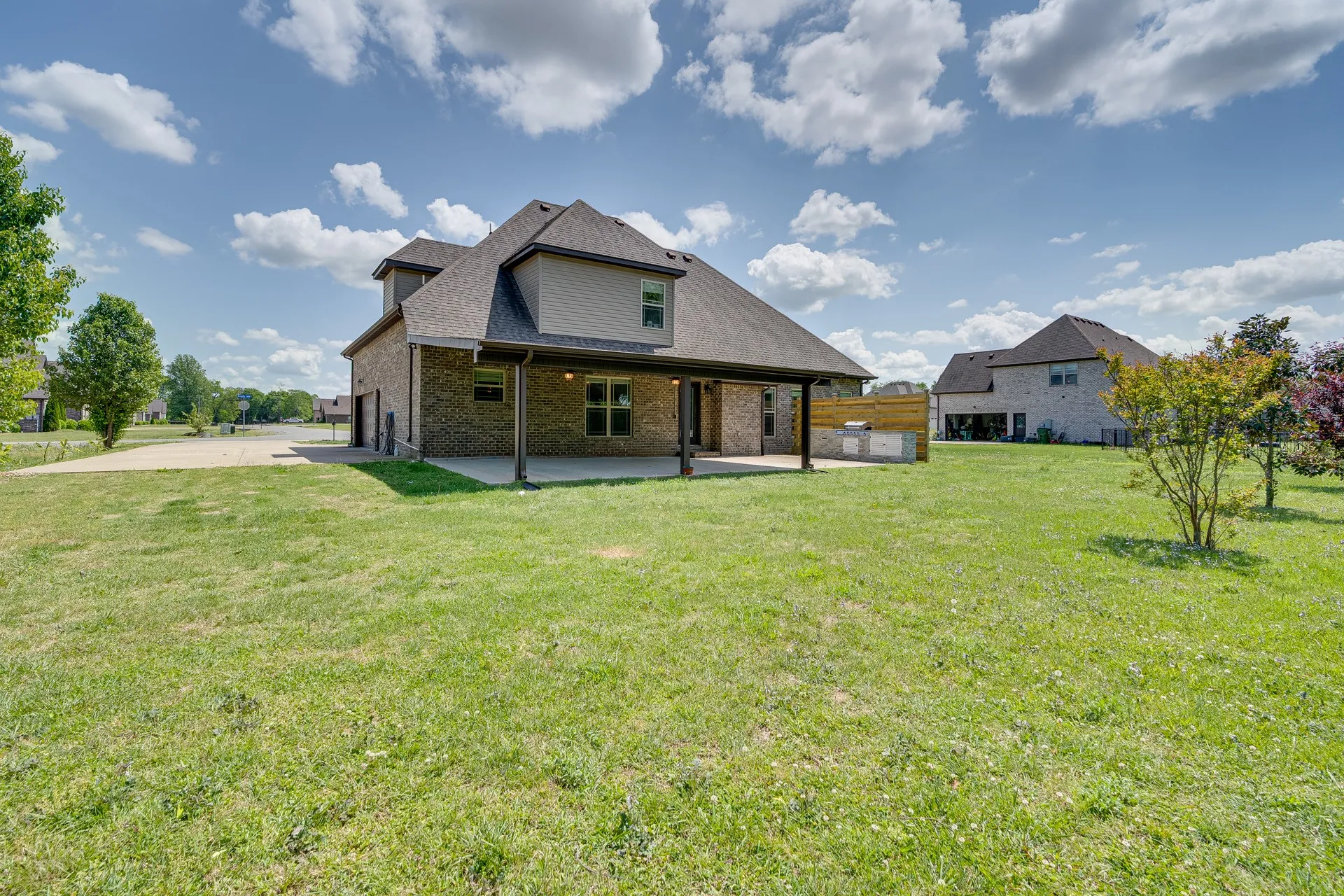 Outdoor features include a covered patio and a dedicated grilling area—ready for entertaining or relaxing. An attached two-car garage and extended driveway offer ample parking and storage.
