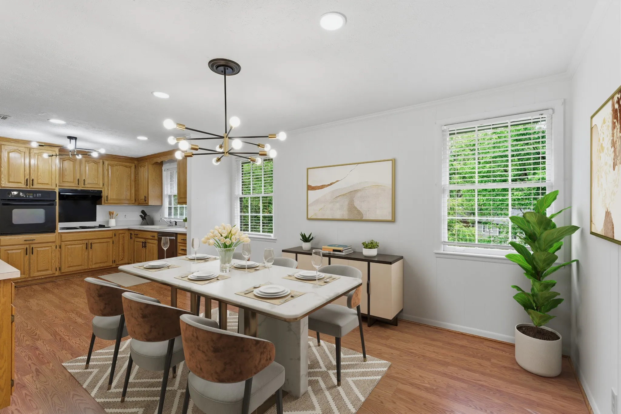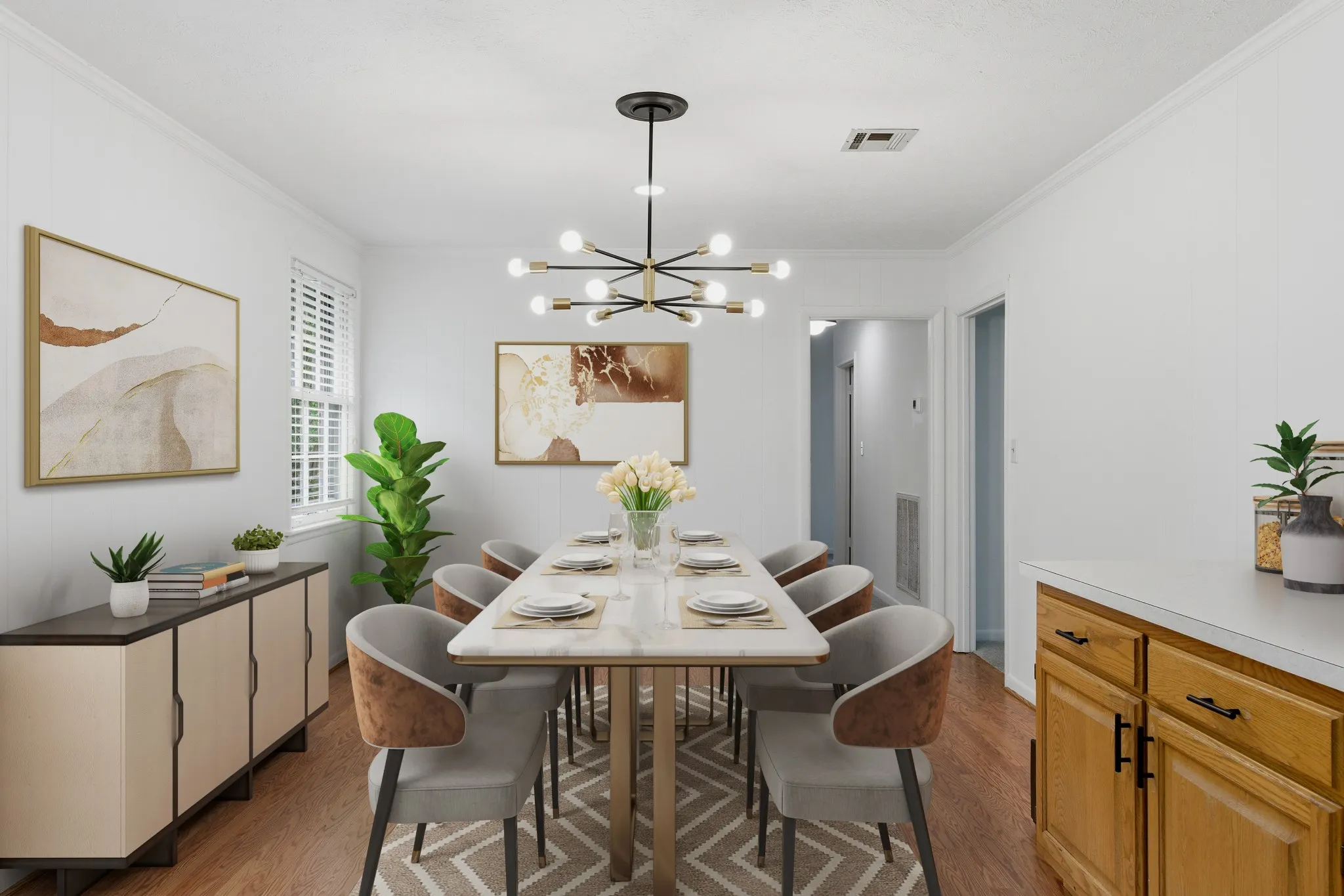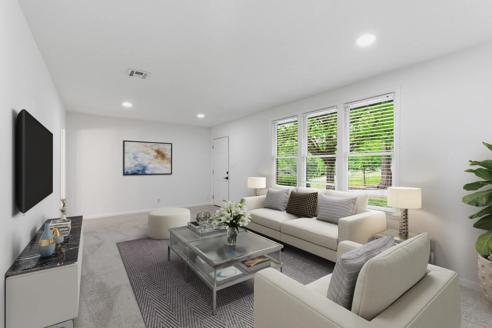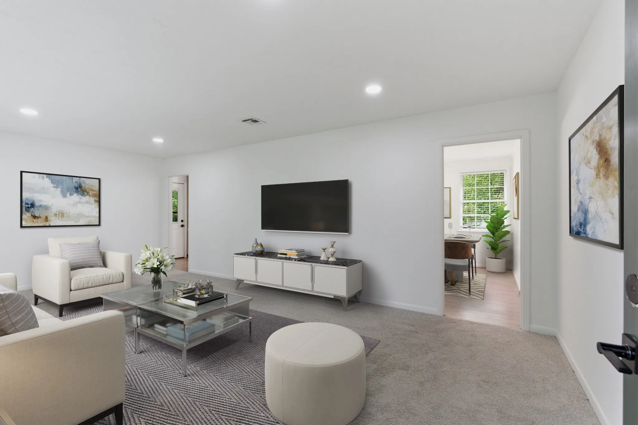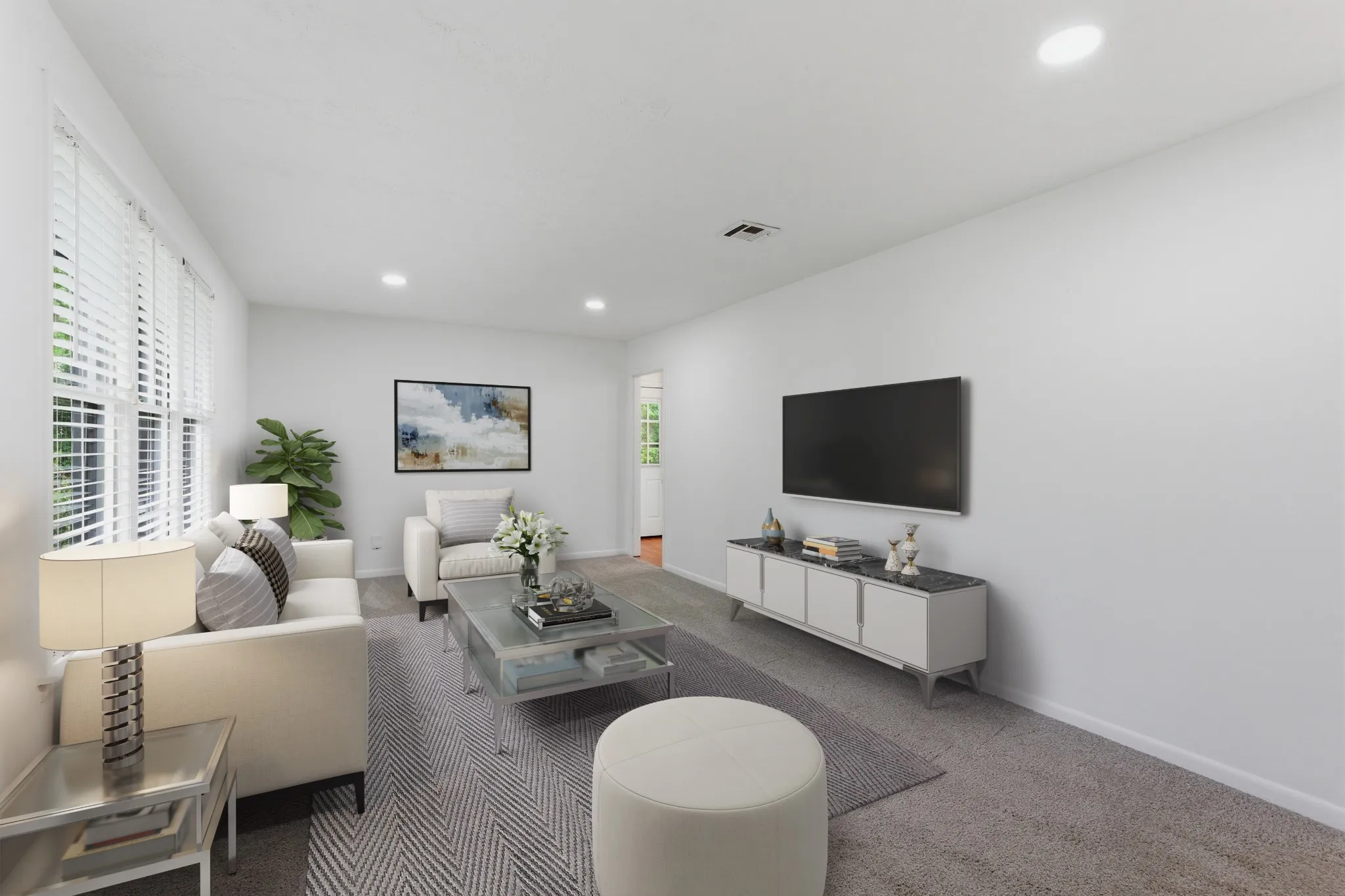 At the same time, this home offers the comfort and updates traditional buyers are looking for, including new carpet, fresh paint, and updated light fixtures. The main level offers generous living space and a functional layout, while hardwood floors are believed to be under the existing carpet, creating an opportunity for added value over time. Downstairs, the concrete floors can be stained for a clean, modern finish.