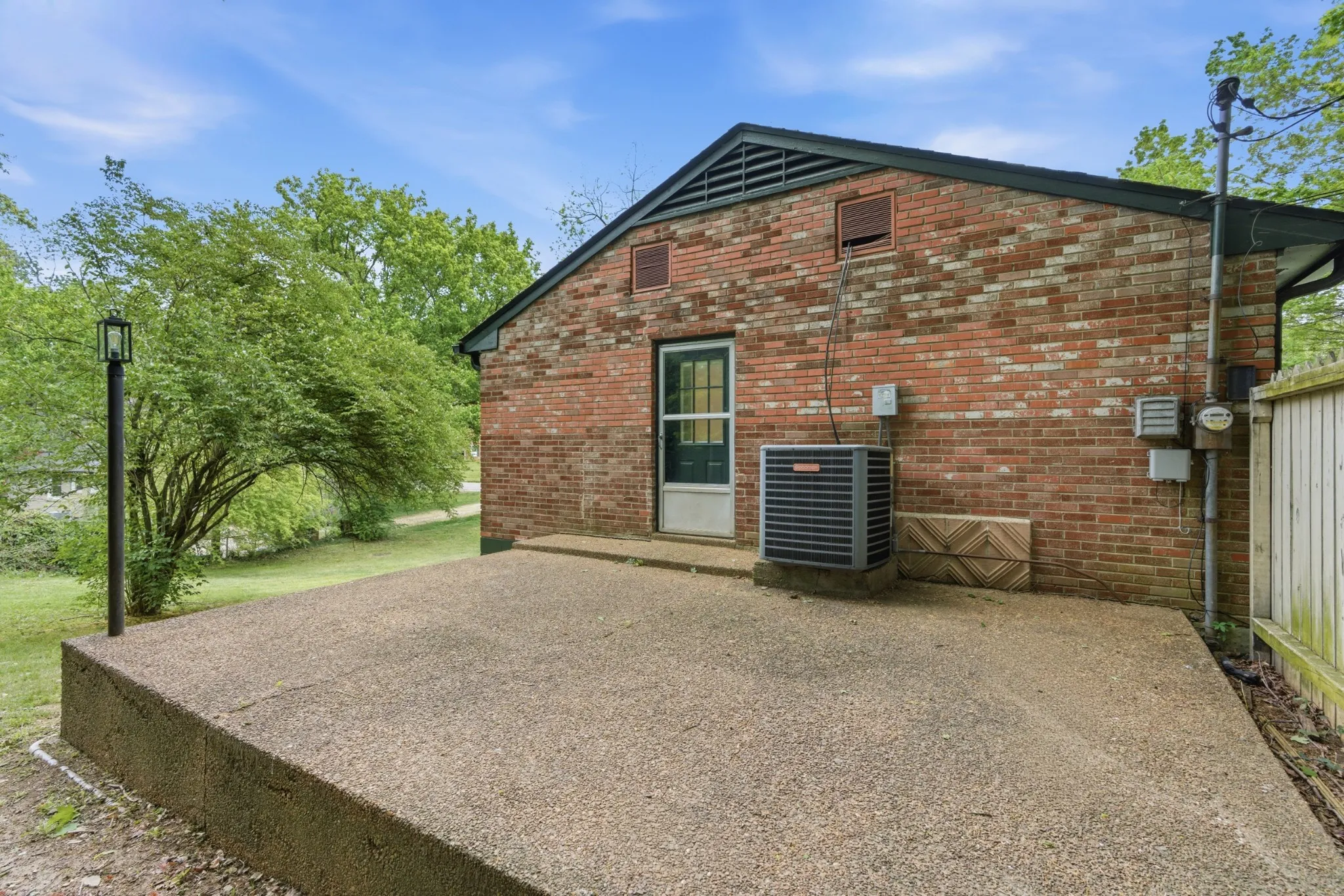 Step outside to a side patio perfect for relaxing or entertaining, while the half-acre lot offers multiple access points and abundant off-street parking for guests or additional vehicles.