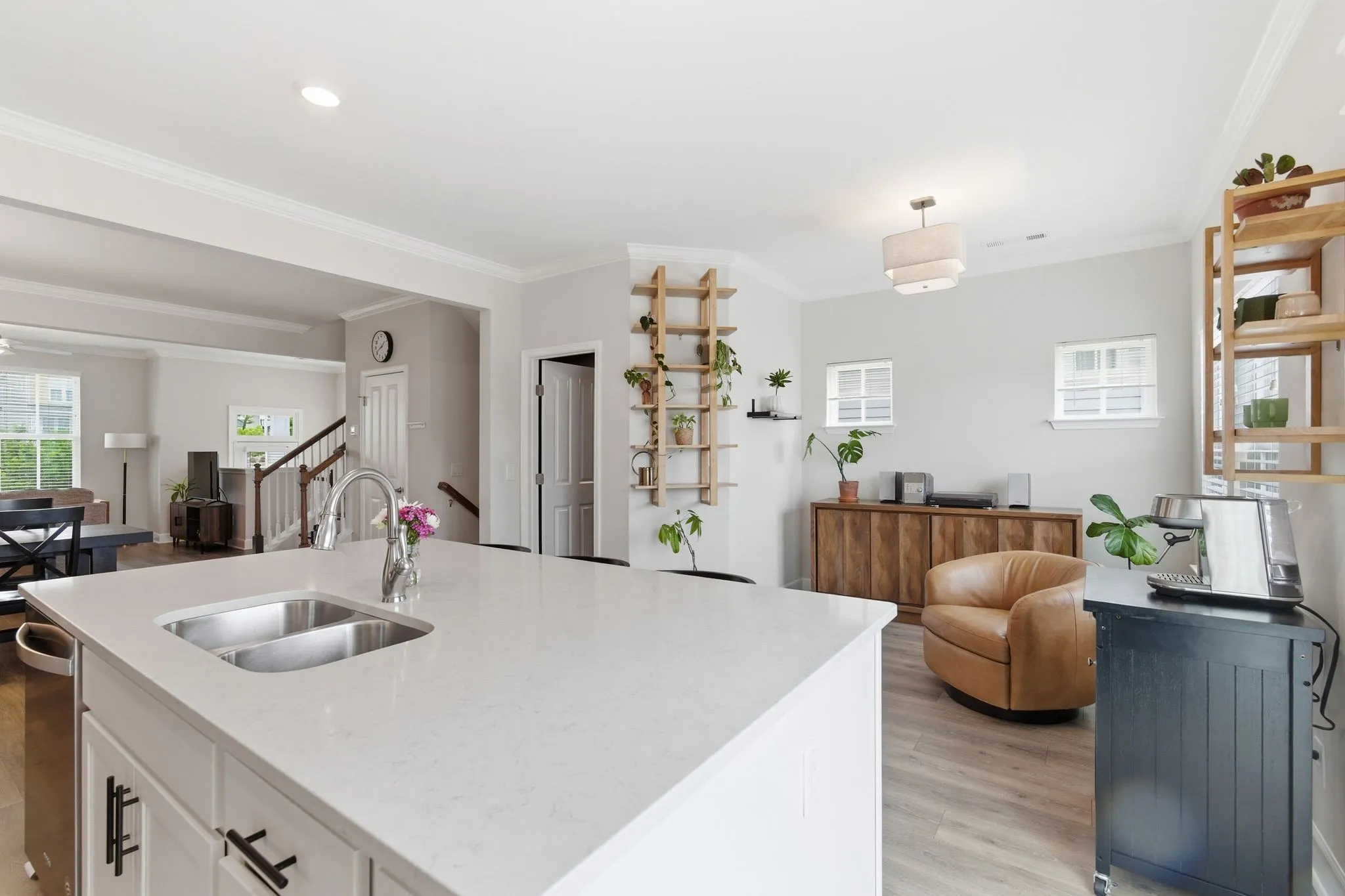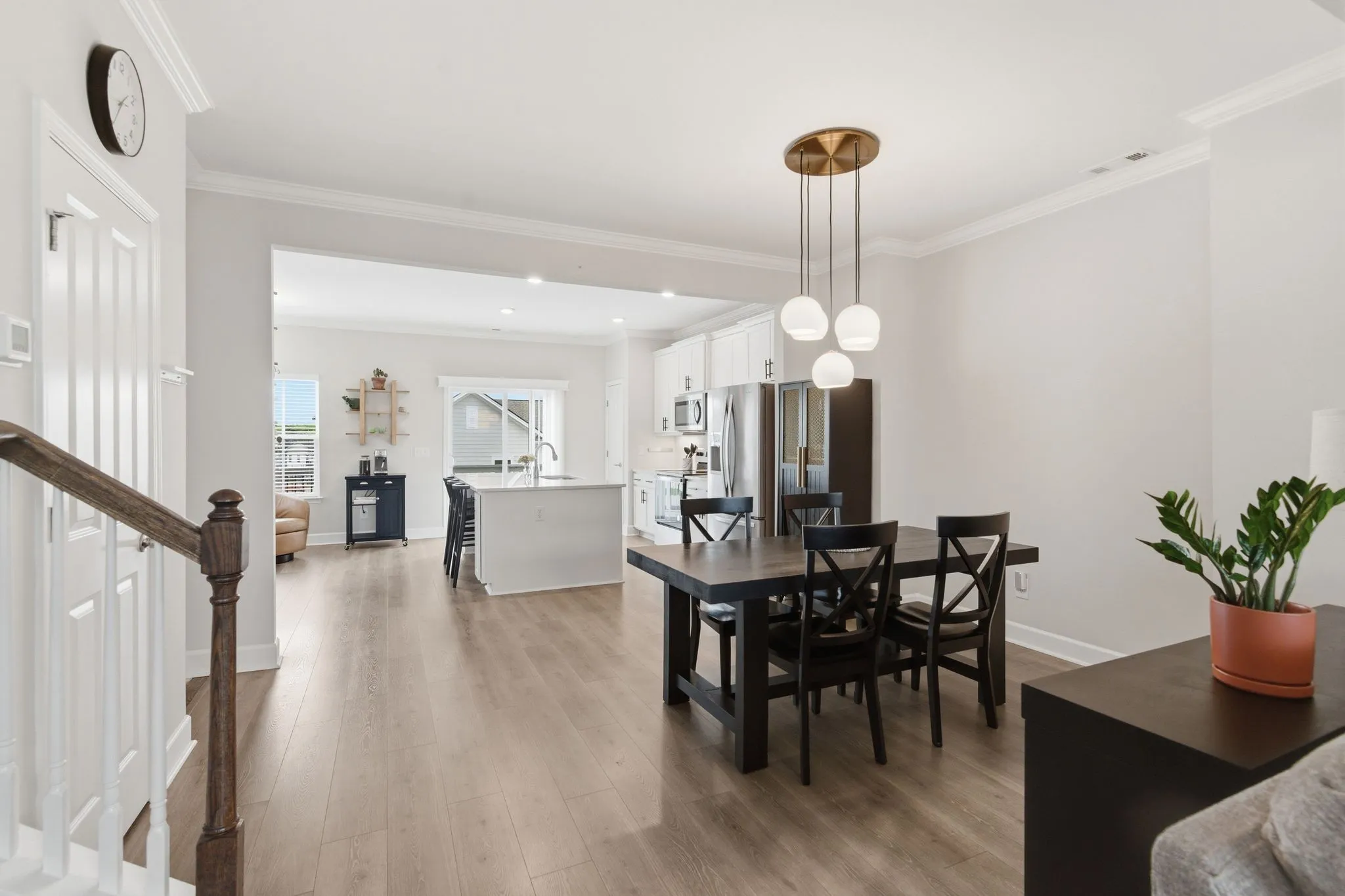 Awesome end-unit townhome in the highly sought-after Carothers Farms community! This move-in ready home offers a spacious, open-concept layout with the living room, dining area, and kitchen seamlessly connected—perfect for both everyday living and entertaining. Durable LVP flooring enhances the main level with style and easy maintenance.