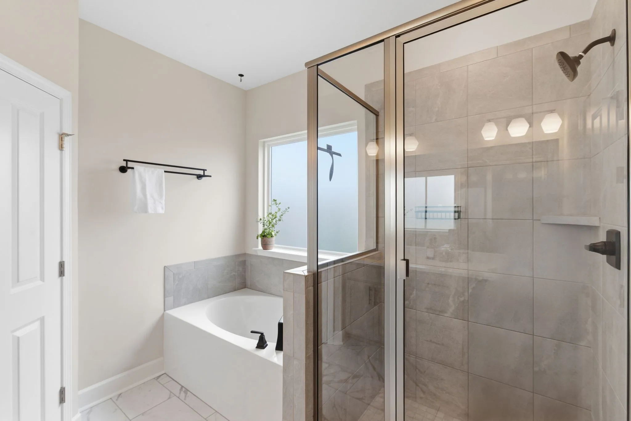 The kitchen features beautiful cabinetry, quartz countertops, a large island, and stainless steel appliances—ideal for gatherings. The generous primary suite is a true retreat, complete with a garden tub, tile shower, and two closets. One secondary bedroom includes attractive built-ins, perfect for a home office, guest space, or added storage.