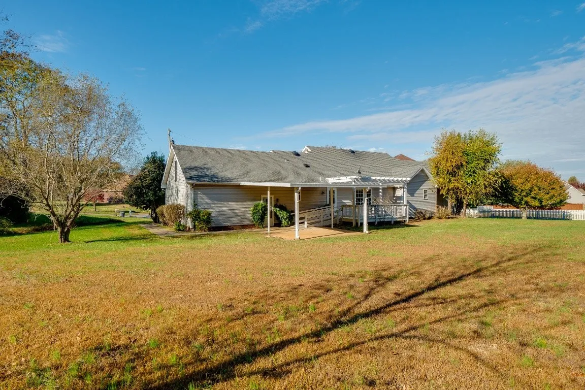 Lovely ranch home nestled in a cul-de-sac on a 1.03 acre lot with quick convenience to the designated Rossview school zone. Rocking chair front porch greets your guests. Satin nickel finishes throughout. Three bedrooms, two full baths, dining room, great room with natural gas fireplace, formal living room or office at entry foyer (OPTIONS!!!!). The kitchen has granite countertops, a gas cooking range and a tiered breakfast bar, stainless steel appliances to include new refrigerator, and pantry. Kitchen has a breakfast nook large enough for a formal dining table if desired. Dedicated laundry room. This home has an unfinished floored attic space/bonus area with knee walls with a door and staircase access. LVP in all areas with exception to the bedrooms. Primary bedroom features a nice walk-in closet with LVP, built in shelving and private bathroom to include a shower w seat. Hall bathroom features a large double vanity and tub/shower combination. Great Room has a tray ceiling and corner natural gas fireplace. Gorgeous yard with mature trees on 1.03 acres. Large Deck with pergola and a covered back patio. The 595 SQ FT garage is spacious and has room for parking your vehicles. Water heater recently replaced. Showings start May 1.