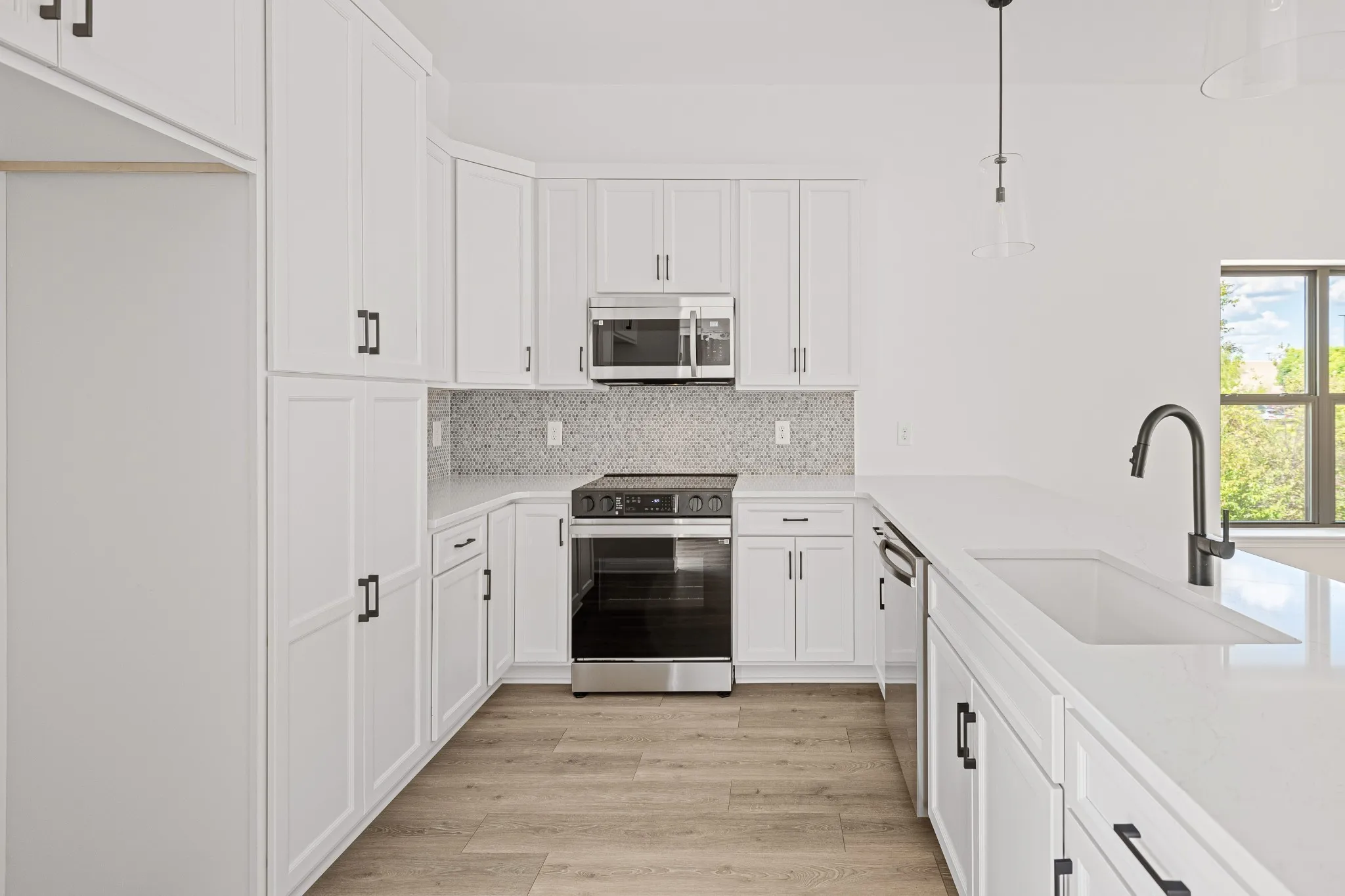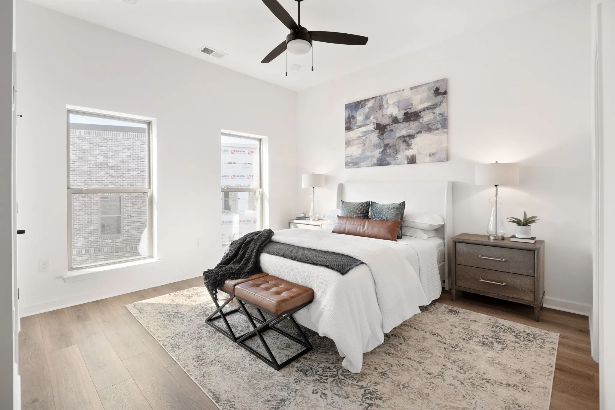 Welcome to elevated suburban living! This stunning, brand new, two-story end unit condo delivers an unparalleled blend of modern style and functional design, perfectly tailored for the style-conscious homebuyer. Featuring designer finishes throughout, including soaring 10-foot ceilings, an open-concept loft layout, and Mohawk Revwood laminate flooring (carpet-free!) over both levels, complemented by a striking solid wood staircase. The chef’s kitchen is a true showstopper with elegant Quartz countertops, a massive 9+ ft peninsula island, custom soft-close cabinetry, and stainless steel appliances. The home features two generously sized bedrooms, both with their own private en suite bathrooms for ultimate privacy. Further enhancing convenience is a 2-car garage and a premier location walkable to shops, restaurants, and more. Ready for immediate move-in, this unit is ideal for someone looking to move right in or the savvy investor looking for an immediate rental opportunity. GENEROUS BUILDER INCENTIVES AVAILABLE! Contact agent for specific details. Photos, measurements, and other listing data are provided as estimates only and may depict similar but not identical units or features. Buyer acknowledges this and must rely solely upon their own independent inspections and due diligence to verify all property details.