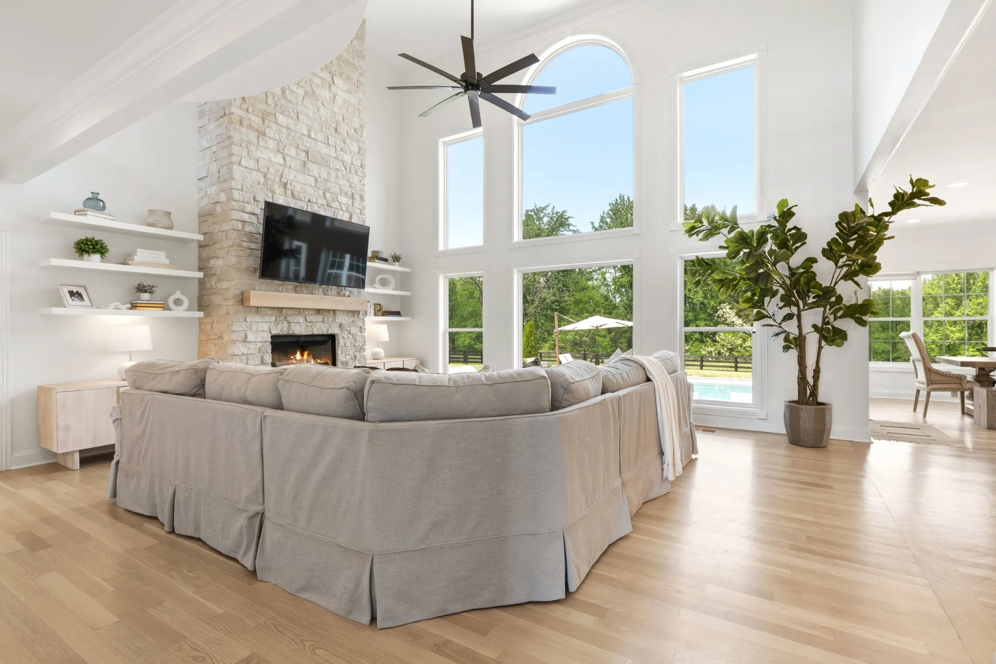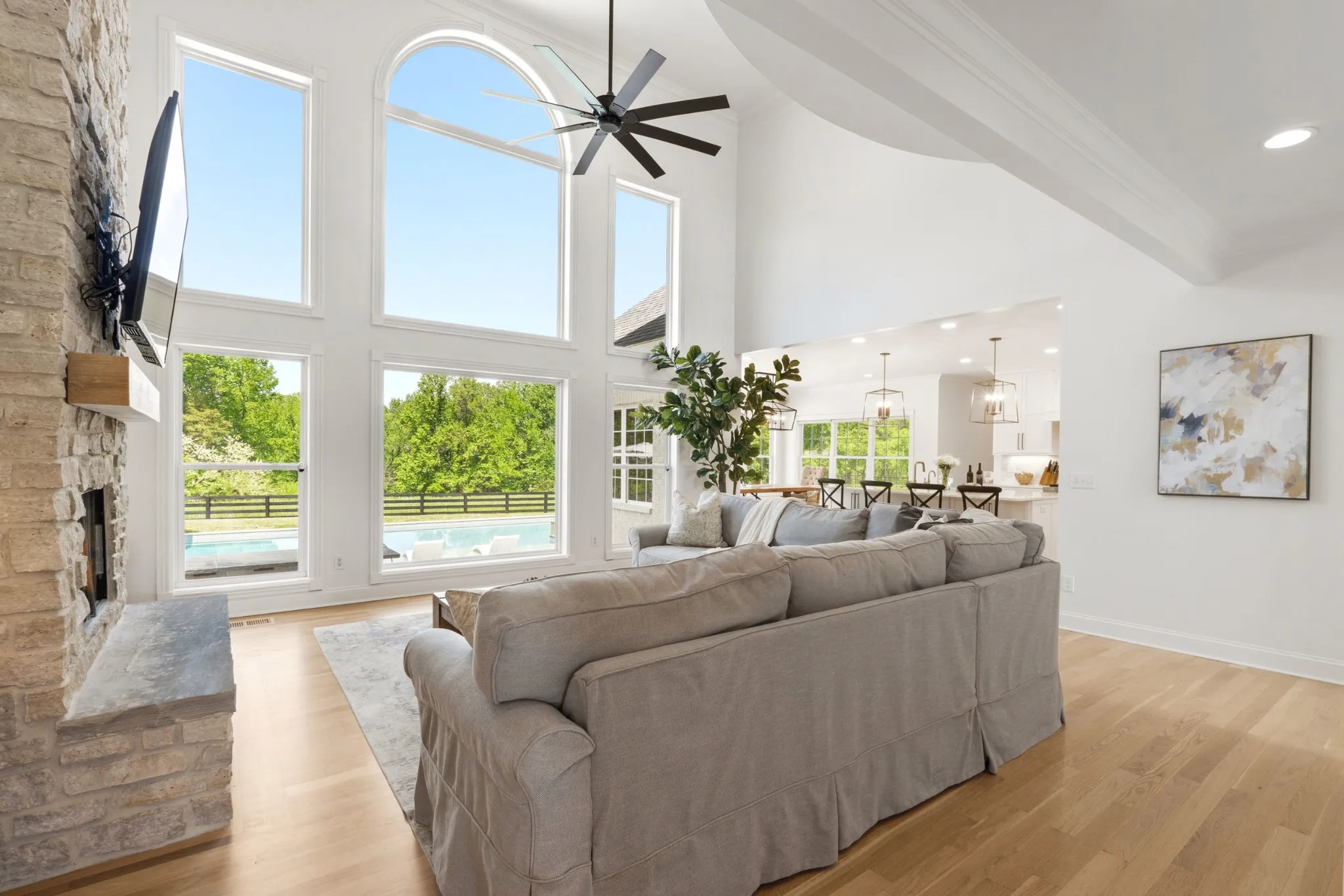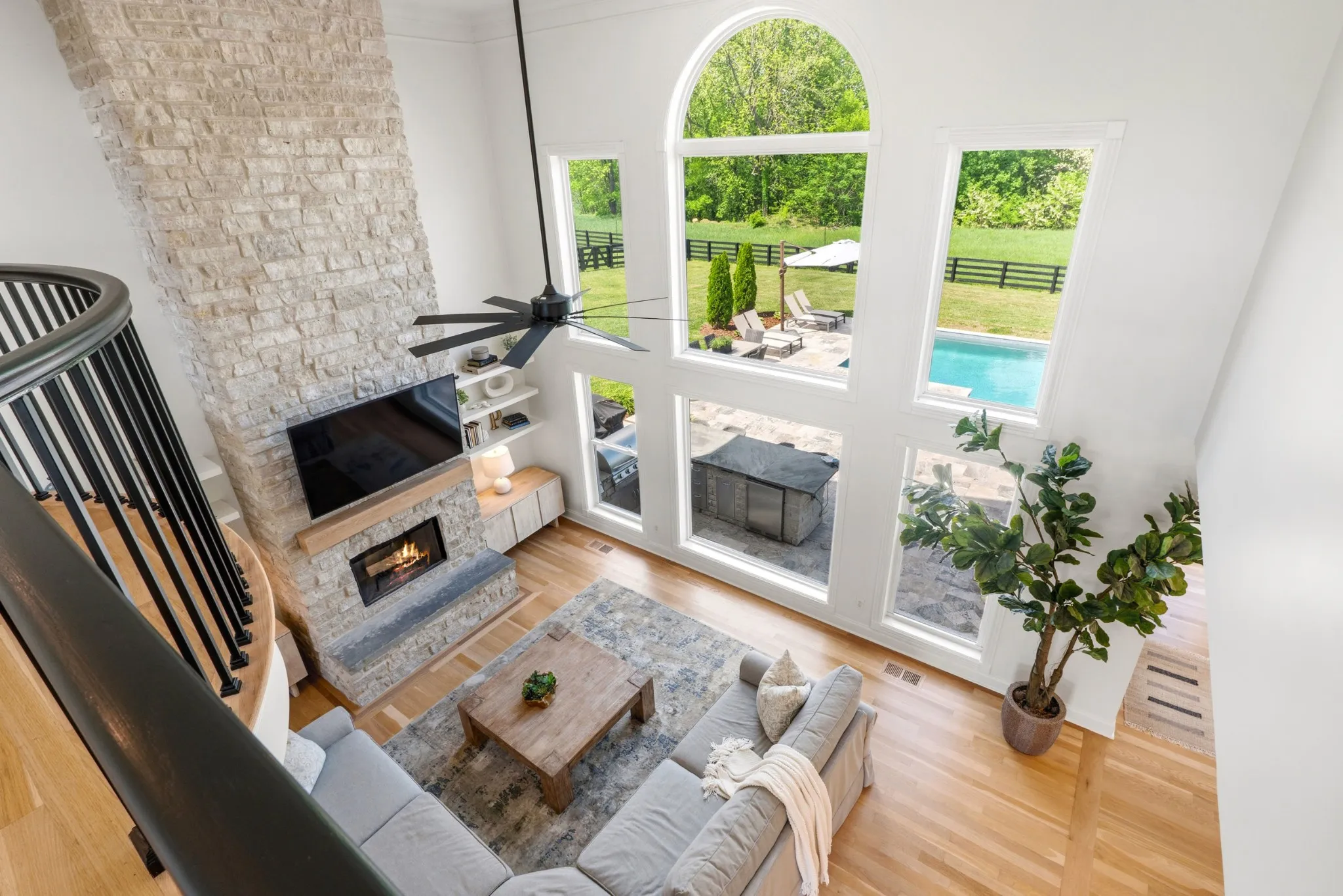 This exceptional property features a gourmet kitchen and a breathtaking two-story family room with a dramatic wall of windows overlooking the resort-style gunite pool and spa. The main-level primary suite provides comfort and convenience, while nearly every room captures peaceful, picturesque views of the surrounding landscape.