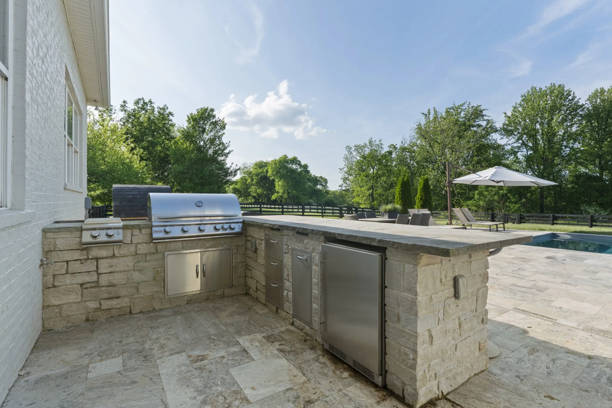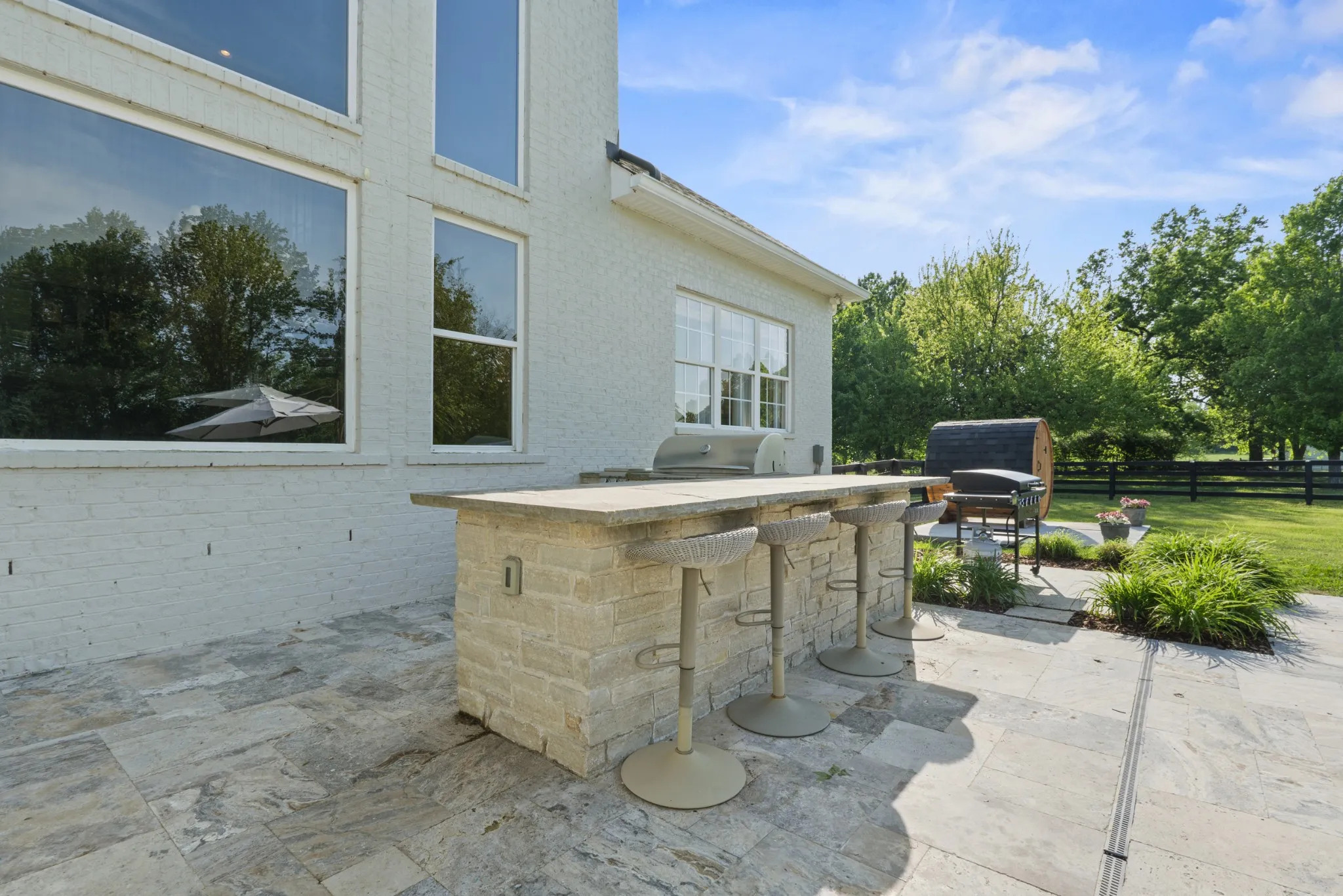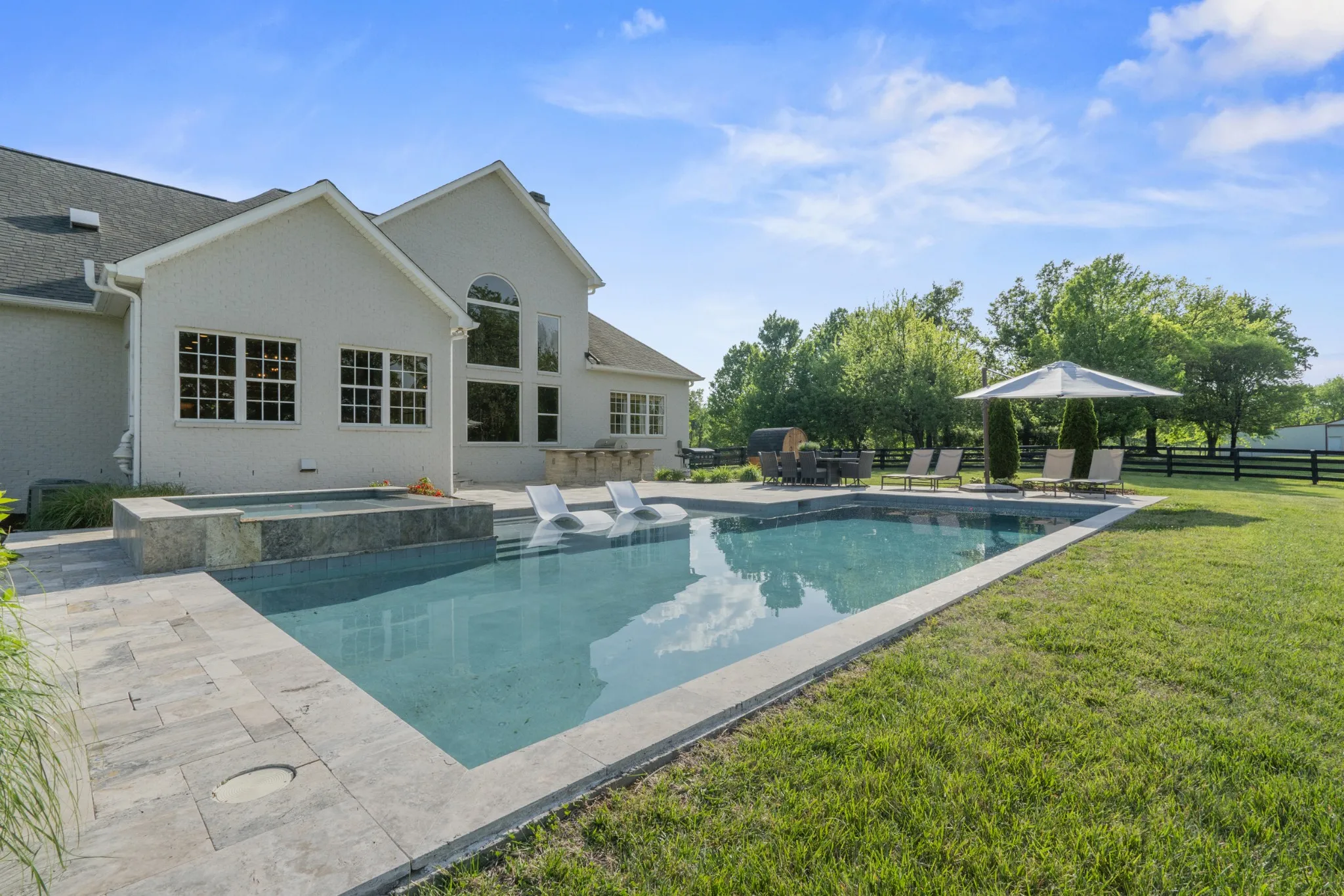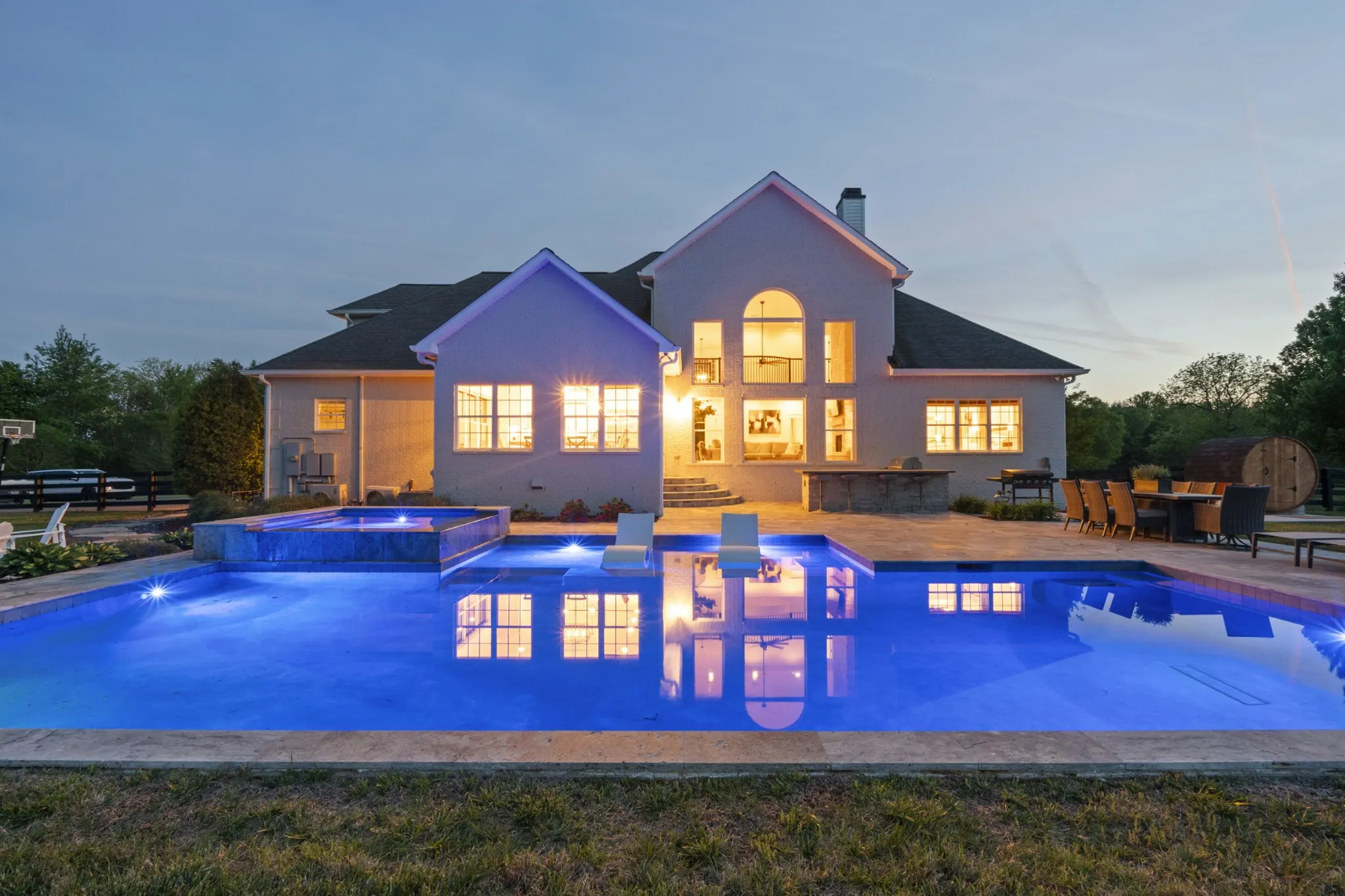 The outdoor living is equally impressive, designed for both relaxation and gathering, with a built-in BBQ, gunite pool and spa, sauna, and firepit. Enjoy farm-to-table living with your own chicken coop and a charming fruit orchard featuring peach, nectarine, apple, and plum trees.