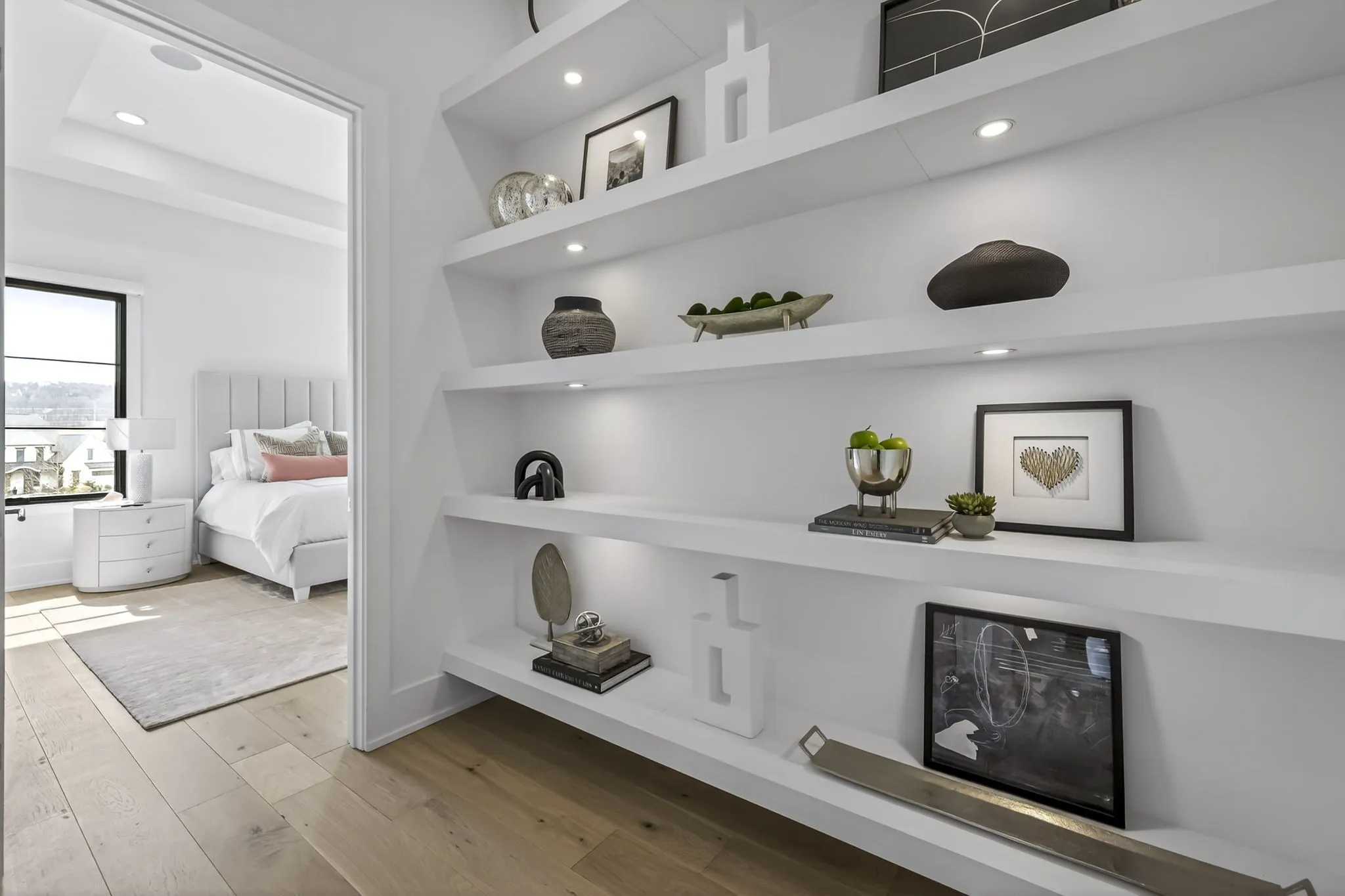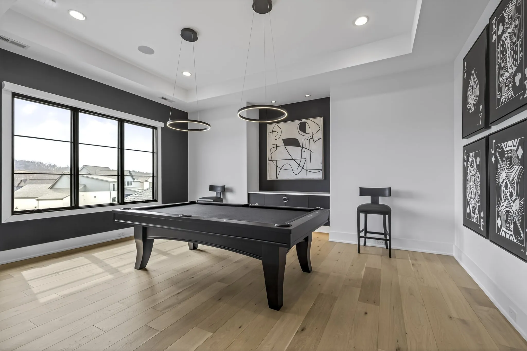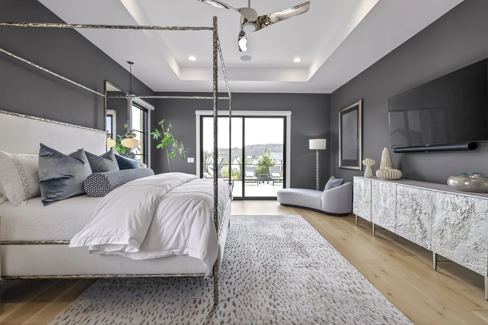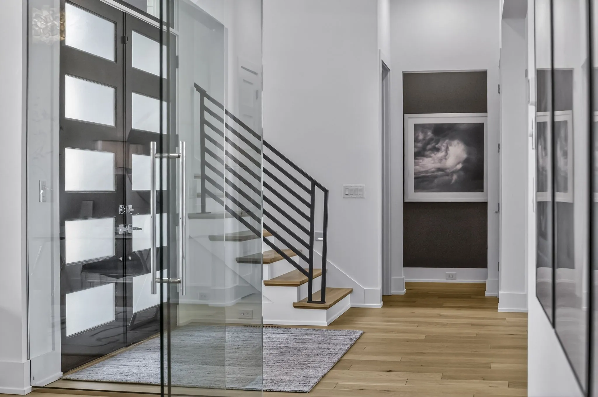 The light-filled, open-concept layout is framed by floor-to-ceiling windows & three walls of 8’ stacking nano doors for seamless indoor-outdoor living. The great room features a sleek linear fireplace w/floating cabinetry, while a glass-walled office creates a private work-from-home space.