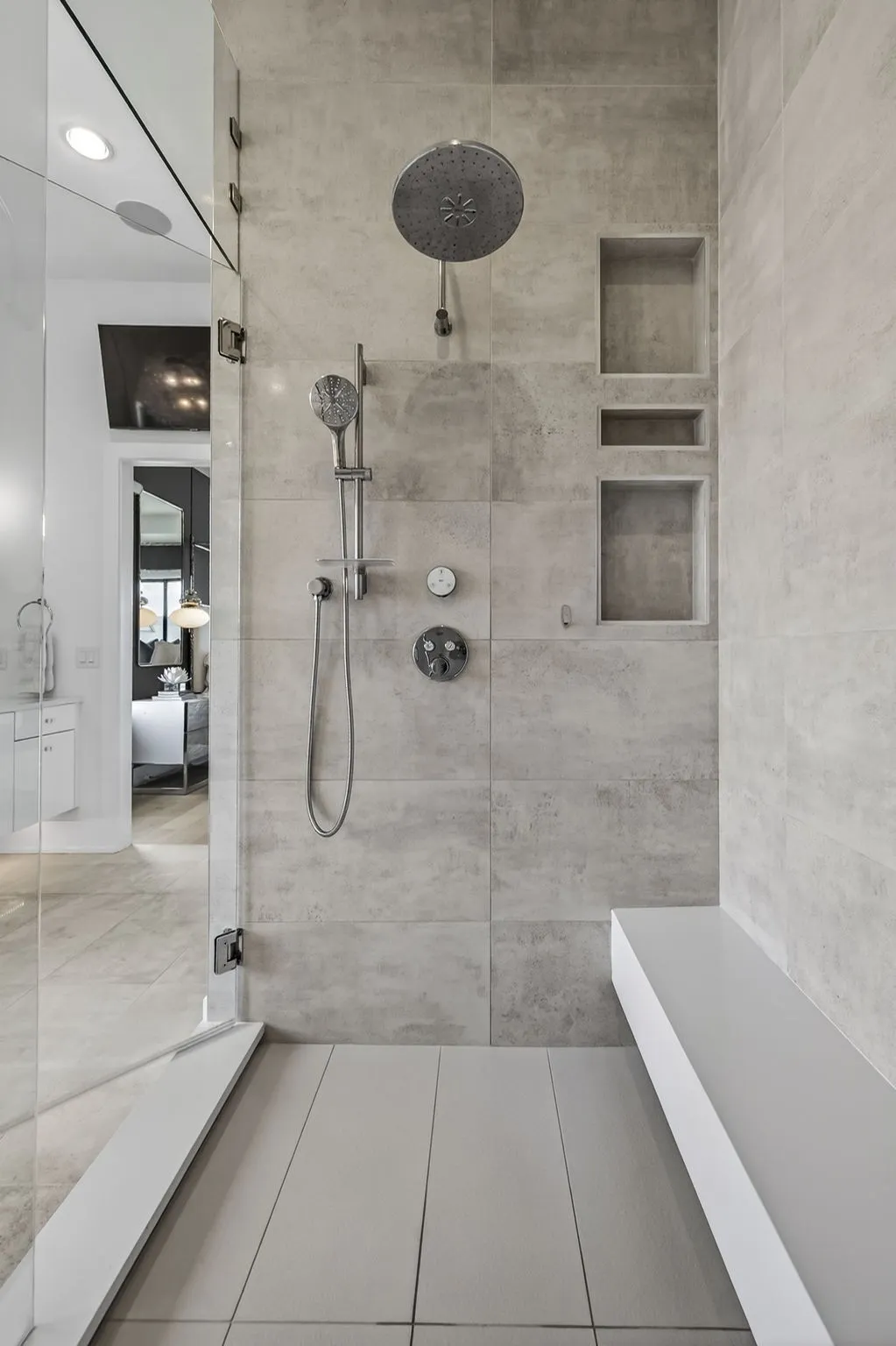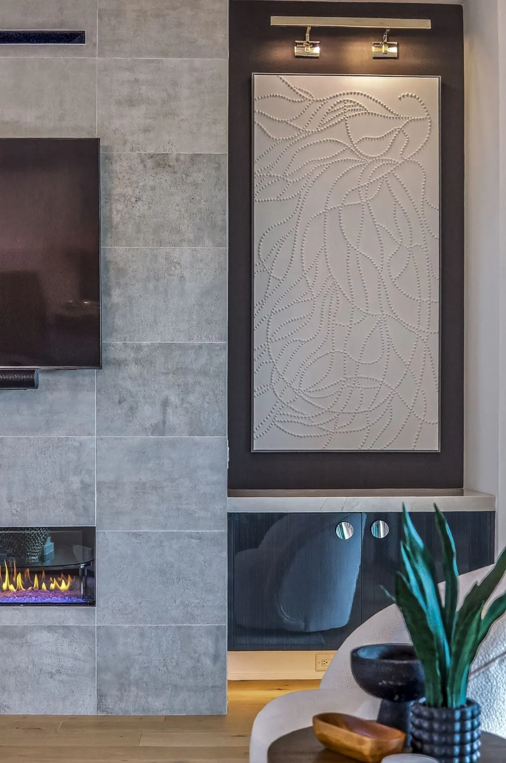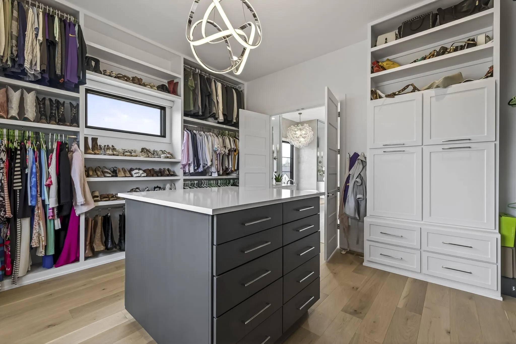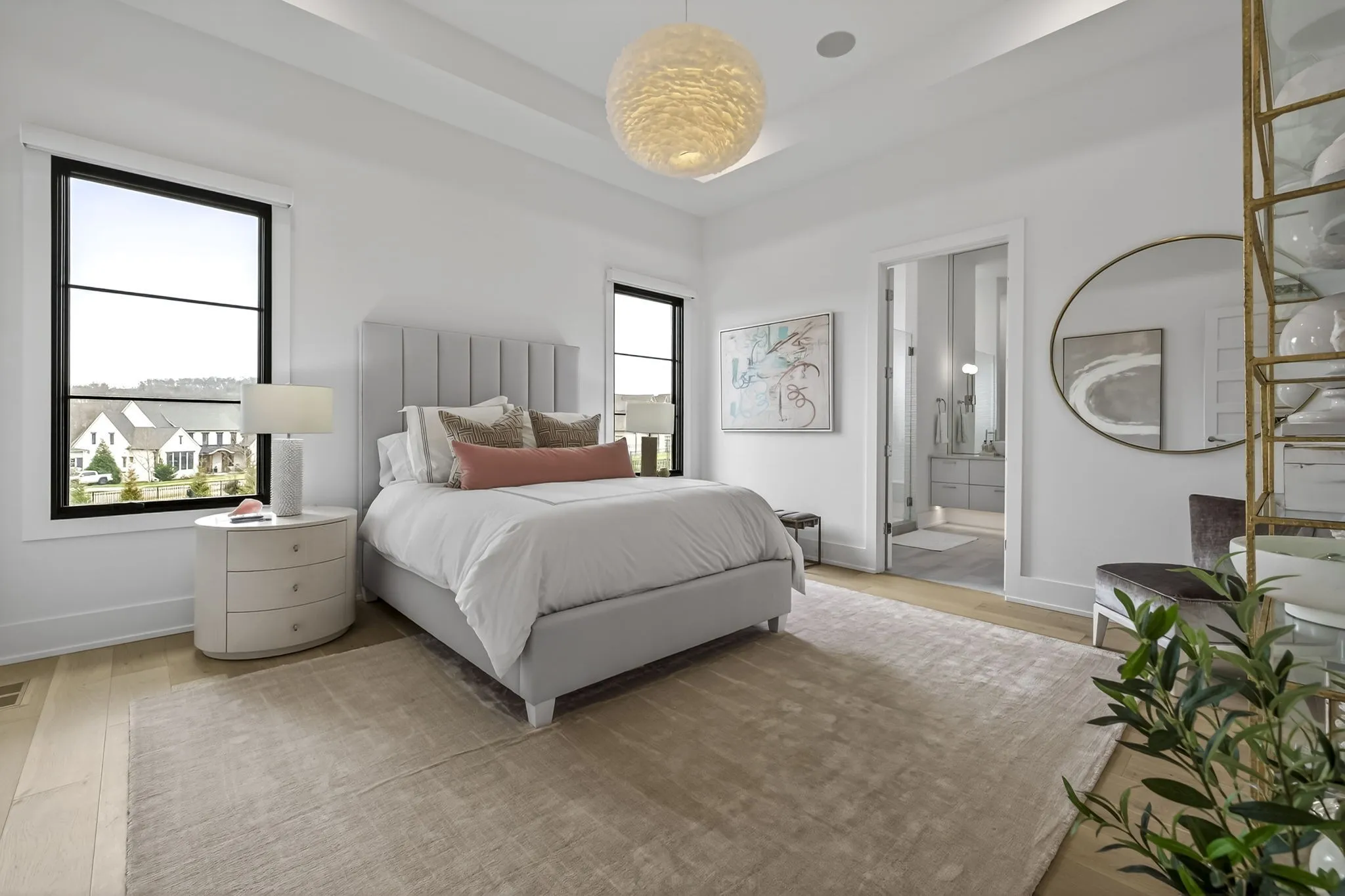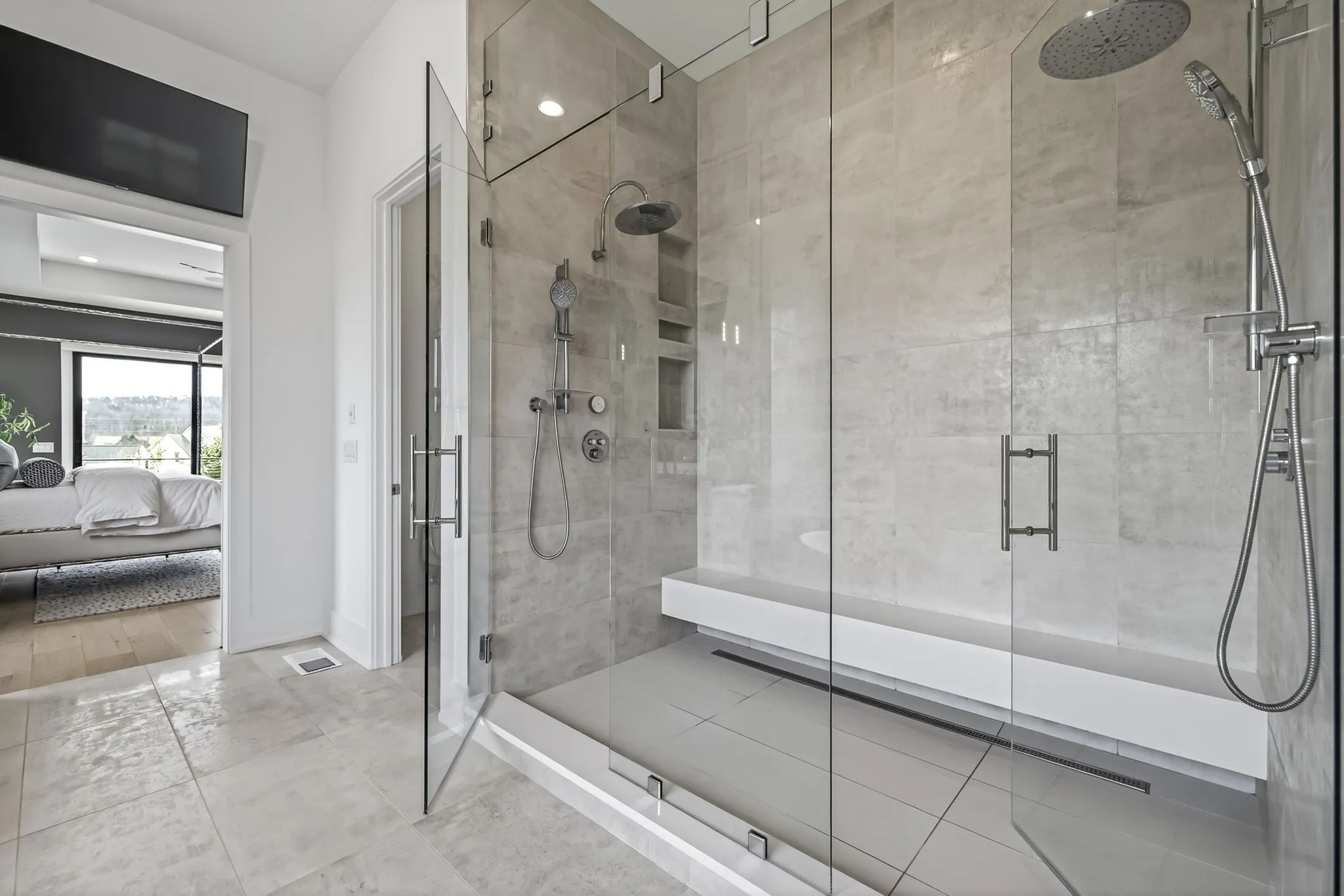 The light-filled, open-concept layout is framed by floor-to-ceiling windows & three walls of 8’ stacking nano doors for seamless indoor-outdoor living. The great room features a sleek linear fireplace w/floating cabinetry, while a glass-walled office creates a private work-from-home space.