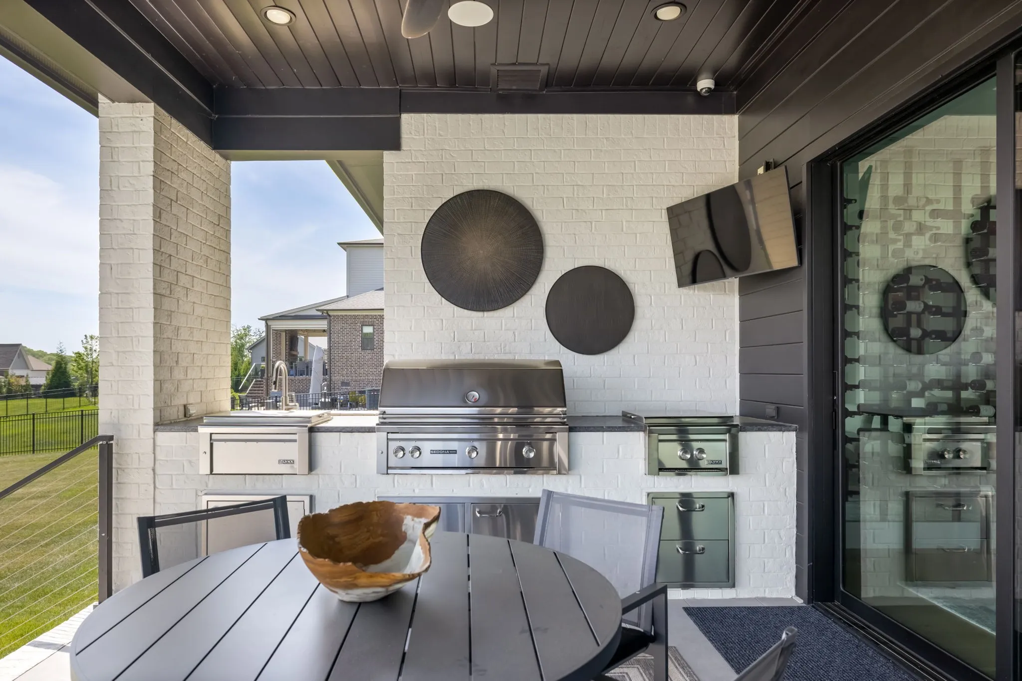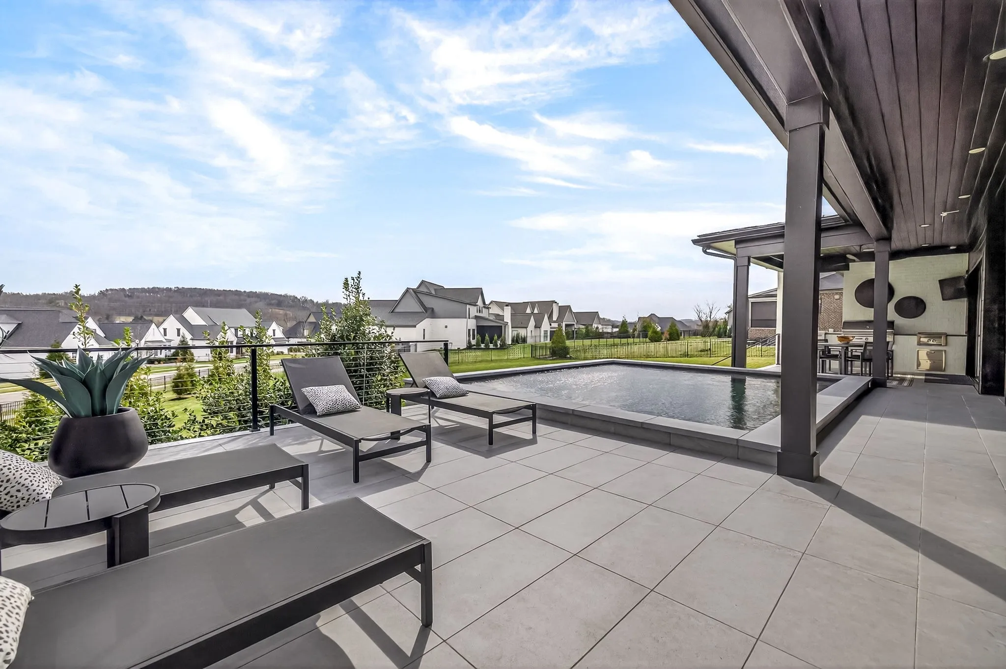 The $200+k outdoor living is designed w/3 separate spaces: a covered lounge w/fire pit & audio/video, a full outdoor kitchen w/quartz countertops, Lynx gas grill, side burner & sink AND a private sunning deck. The 20’x16’ pool/spa w/16 jets, porcelain tile floor & soffit lighting complete the resort feel.