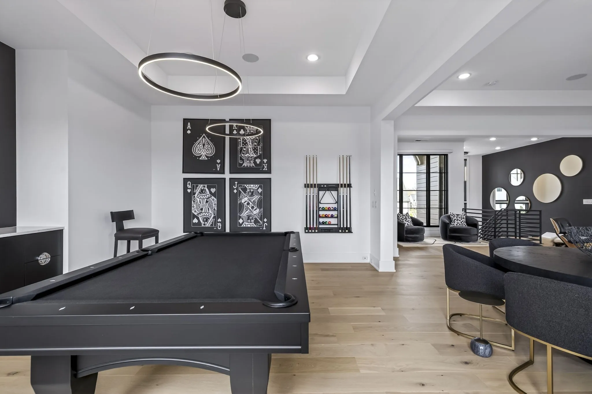 The main-level owner’s suite offers a spa-inspired bath w/freestanding tub, oversized shower w/dual heads, floating vanities & a custom closet that will make you swoon!. A private guest suite on the main adds flexibility & the upstairs features a large media room w/wet bar, beverage & wine fridges, ice maker, a separate billiards room plus two en-suite bedrooms.