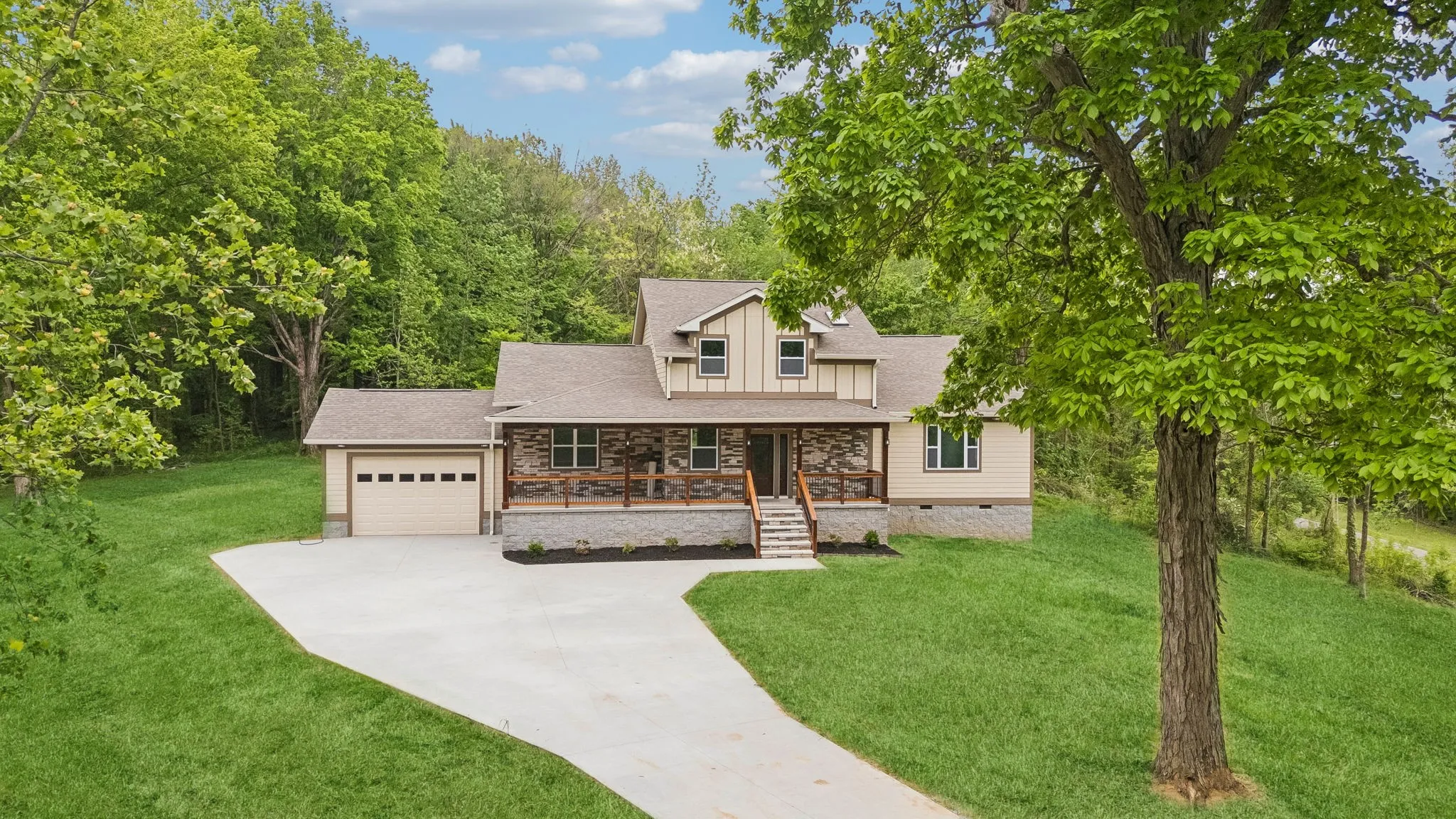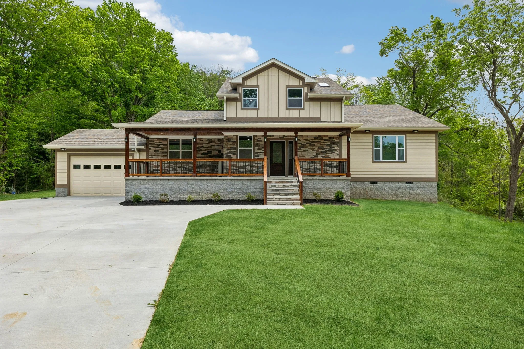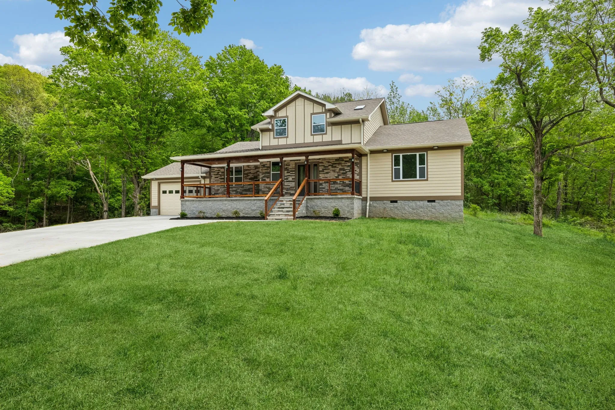 Save up to 1% of your loan amount as a closing cost credit when you use seller’s suggested lender! Located just outside of Gallatin with easy access to Westmoreland and nearby shopping and dining, this beautiful new construction home offers modern living in a peaceful, private setting. Situated on over 2 acres on a corner lot, you’ll enjoy space and scenic views. This thoughtfully designed home features modern finishes and custom built-ins throughout, along with an open floor plan perfect for everyday living and entertaining. The main level includes a large living room, dining area, and a spacious kitchen complete with ample white cabinetry, granite countertops, a tiled backsplash, stainless steel appliances, and a large island. Tucked beneath the stairs is a small, versatile nook—perfect for a cozy dog space or pet retreat. A dedicated office space on the main floor adds flexibility for working from home. The primary suite offers a relaxing retreat with an ensuite bathroom featuring double vanities, a large tiled walk-in shower, and a spacious walk-in closet. An additional bedroom and full bathroom are also located on the main level. Upstairs, you’ll find a third bedroom, another full bathroom, and a versatile flex room that can easily serve as a fourth bedroom, bonus room, or media space. Enjoy outdoor living with a covered front porch and back deck—perfect for taking in the peaceful surroundings and beautiful views. A two-car garage adds convenience and storage. Move-in ready and designed with comfort and style in mind, this home is the perfect blend of modern features and quiet country living!