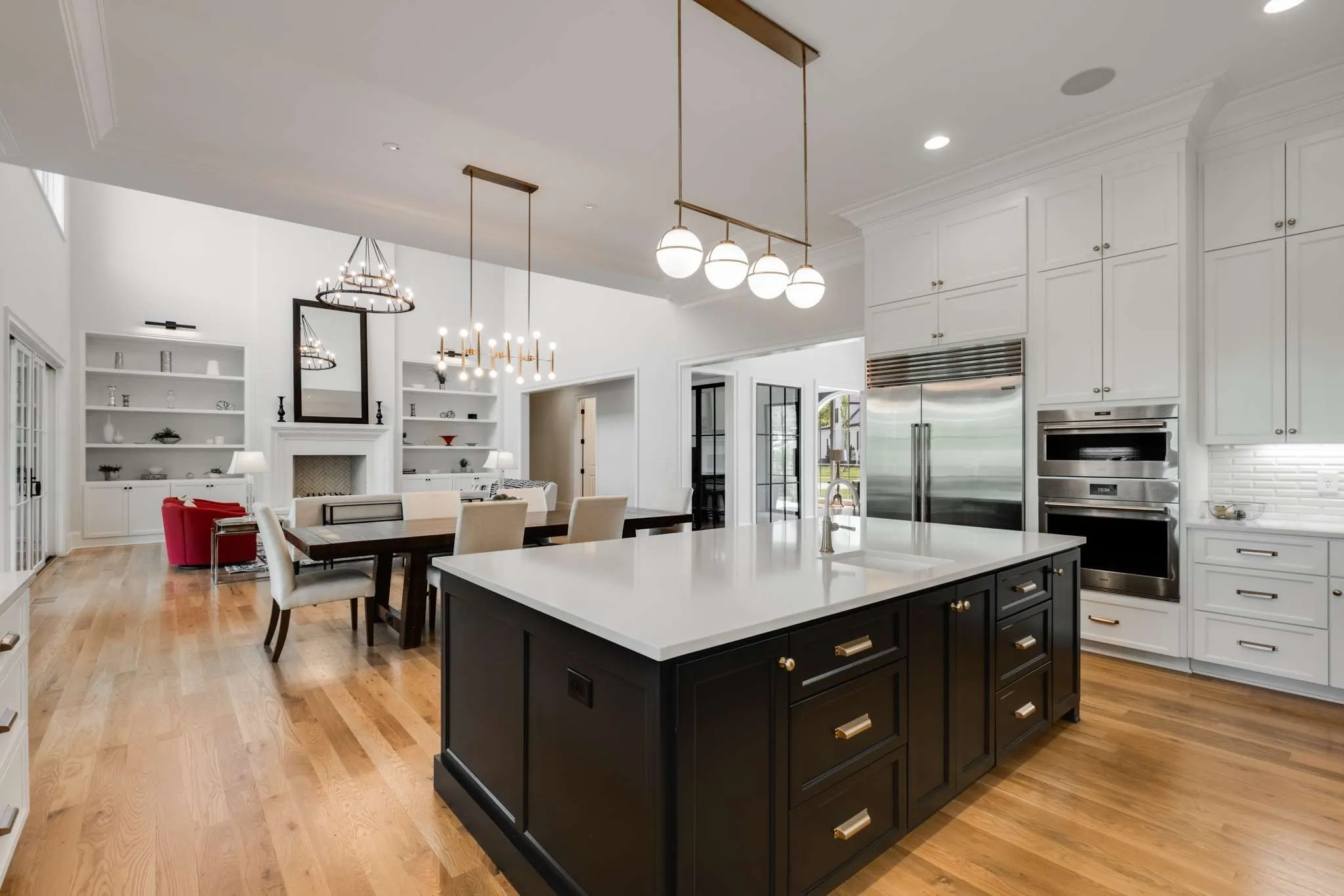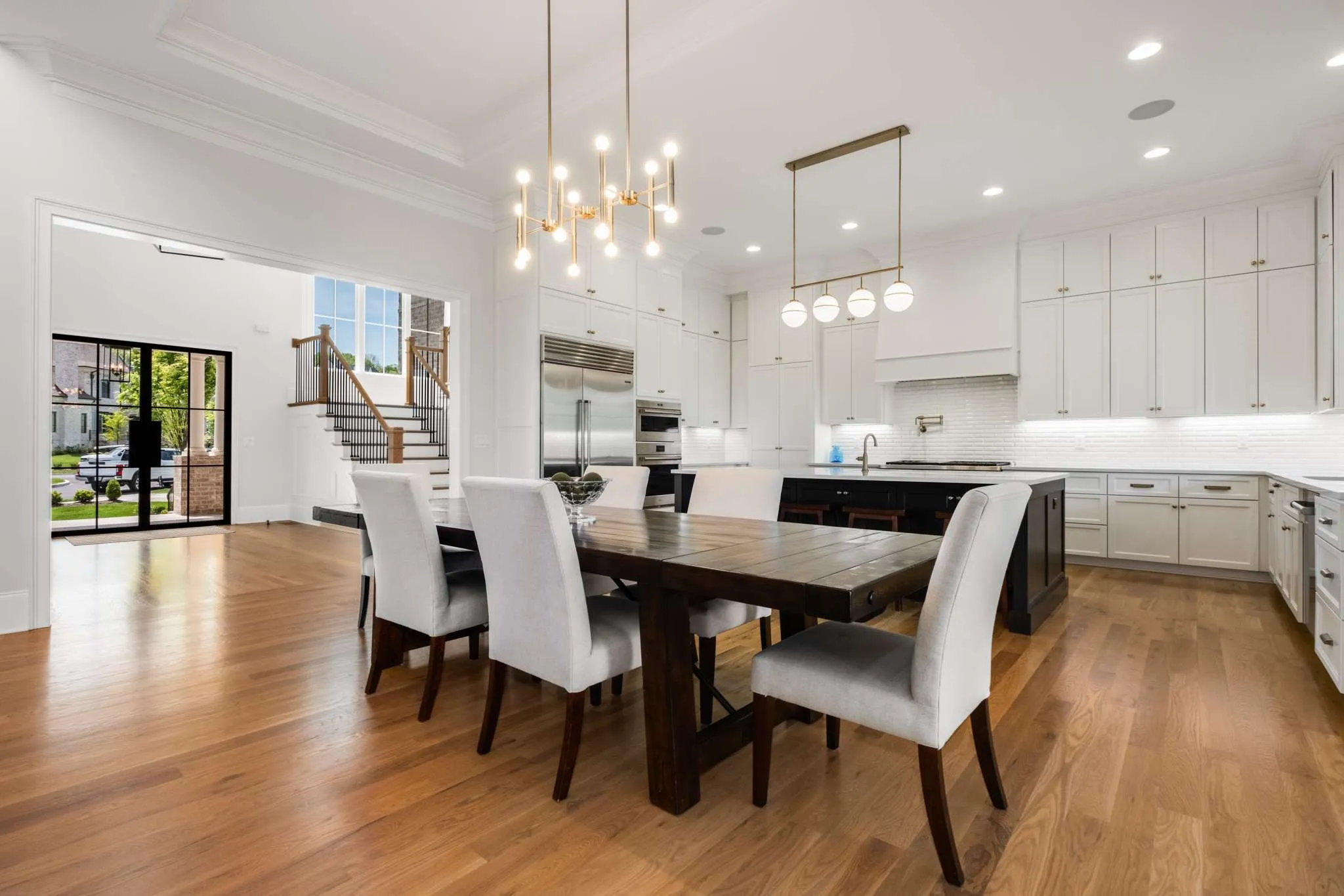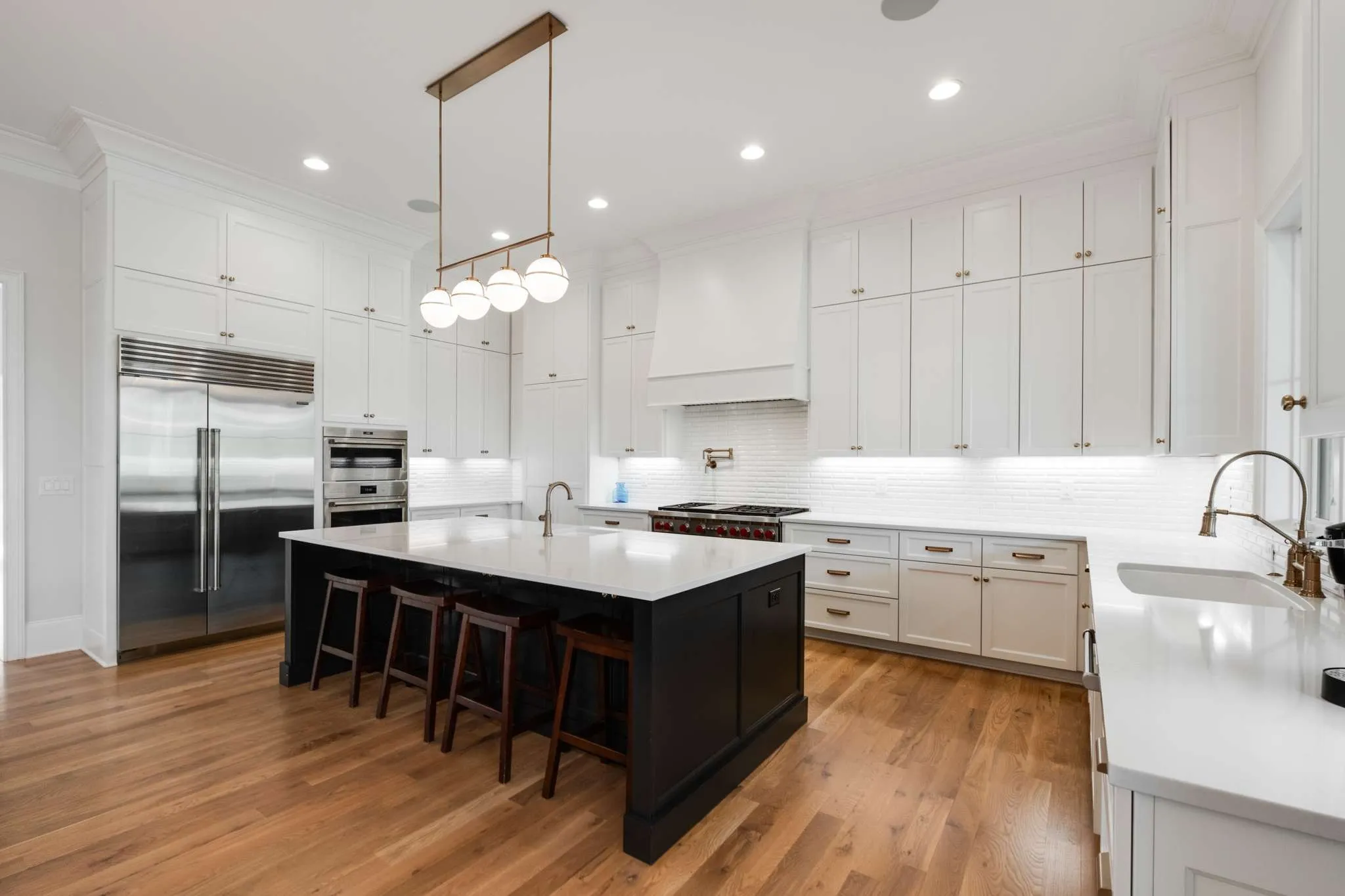 Nestled away in Brentwood’s Witherspoon, sitting quietly at the end of a private cul-de-sac, on a full acre with meticulously landscaped gardens and lawn with complete irrigation, this home is the epitome of luxury living offering a seamless blend of elegance and comfortable living. It’s a sanctuary providing an unparalleled living experience from the grand entrance and wine room to the spa-like primary bedroom retreat and abundance of space for hosting and entertaining guests. And with decks on all three levels, family and friends have room to spread out. With a 4-car garage and 1,000 square feet of conditioned storage, there is plenty of space to store seasonal items. Primary gourmet kitchen includes Subzero freezing and refrigeration, pot filler, 48” Wolf range, oven, Asko dishwasher, and hidden walk-in pantry. Outdoor kitchen on the covered deck includes 36” DCS grill and 24″ Monogram refrigerator. Lower level kitchen includes U-Line beverage center and Scotsman ice maker.