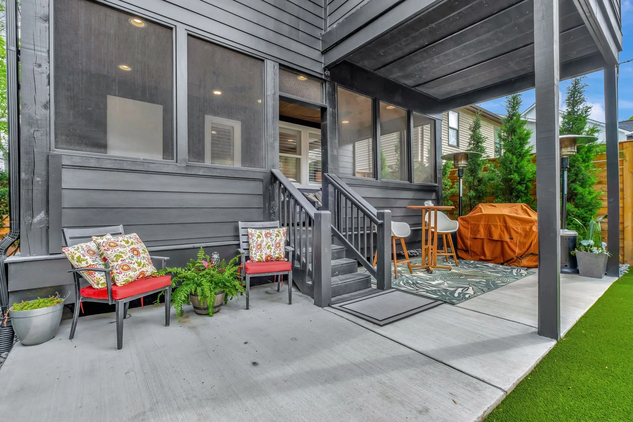 2485 sqft in main home + 650 sqft in detached apartment. Better than new, this 2 year old home has so much to offer. Two blocks from the purposed tunnel or bridge to RiverNorth/Oracle campus, and hot Spots like Red Headed Stranger, The Audrey & Folk. All the outdoor living you could want w/ super low maintenance with turf in the back, irrigation in the planting beds, 3 screened porches, covered and uncovered patios, and huge entertaining deck. Built for entraining and comfortable living this home has 3 living areas, 3 beds, 3.5 baths plus a detached garage apartment that is currently being legally short term rented when not used by owners’ guest. (averaging net $2500 a month/ Highest month was $6000)