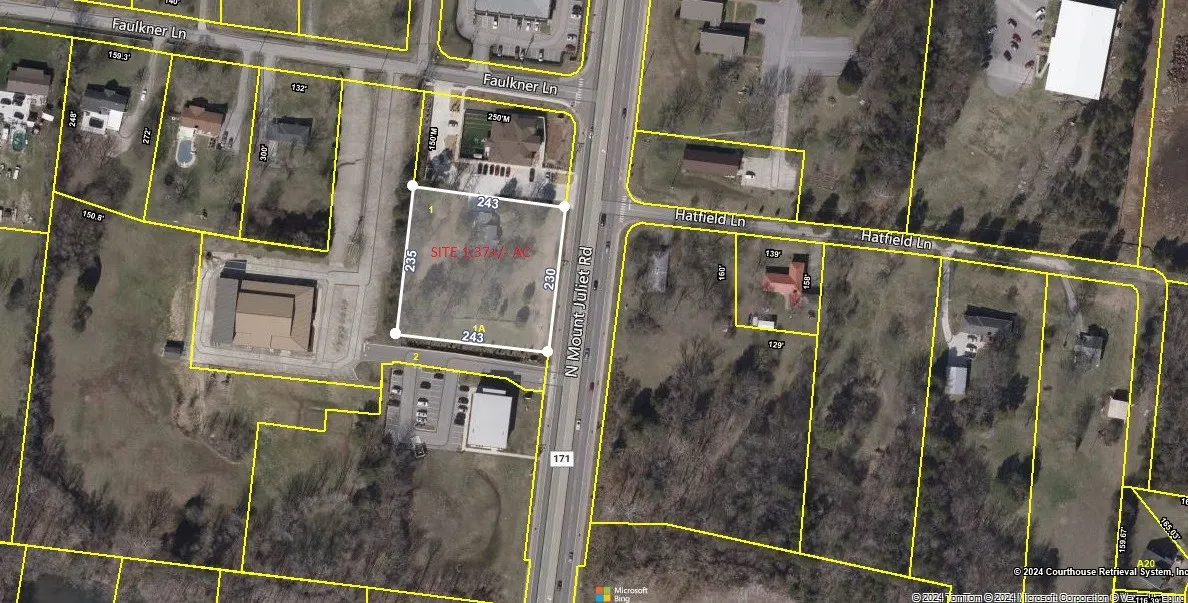 1.36+- acres with house located on heavy traffic road in the heart of Mount Juliet, surrounded by commercial development, has potential for many commercial uses and will require a rezoning. There is a shared access easement in place with the adjacent land owner for access to Faulkner Lane.