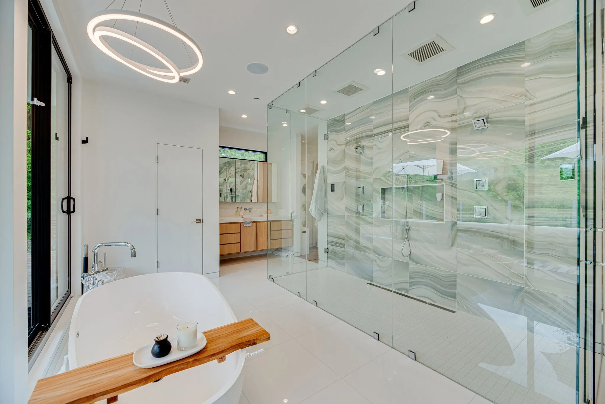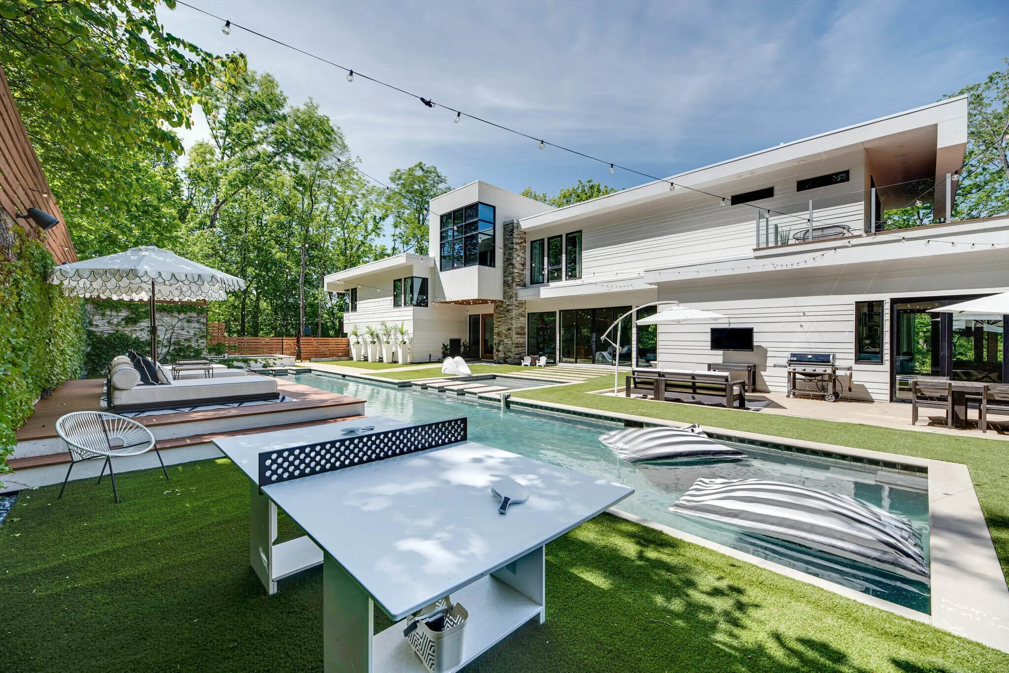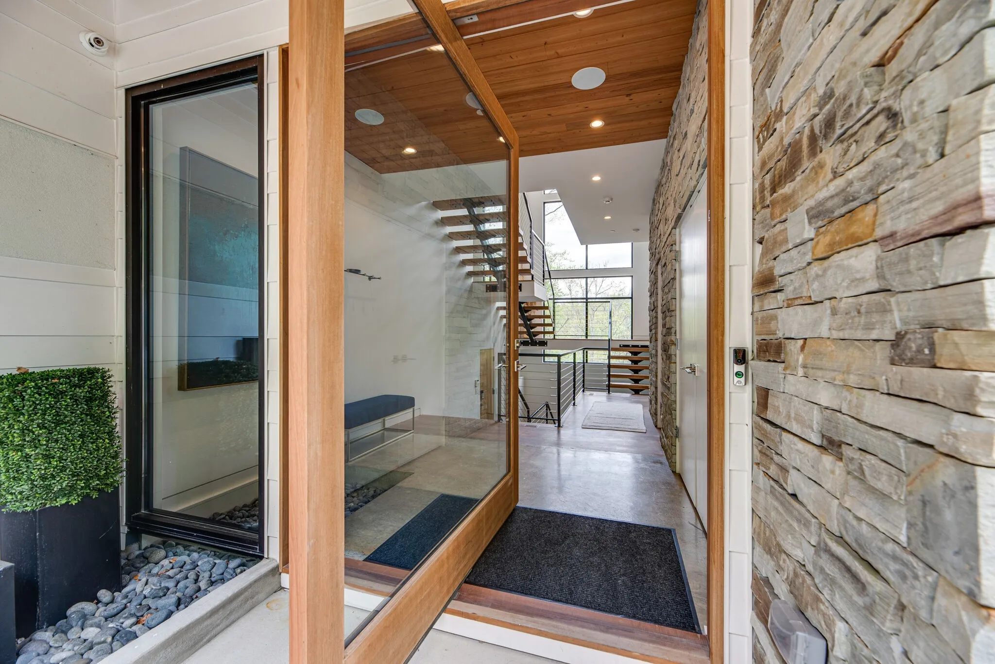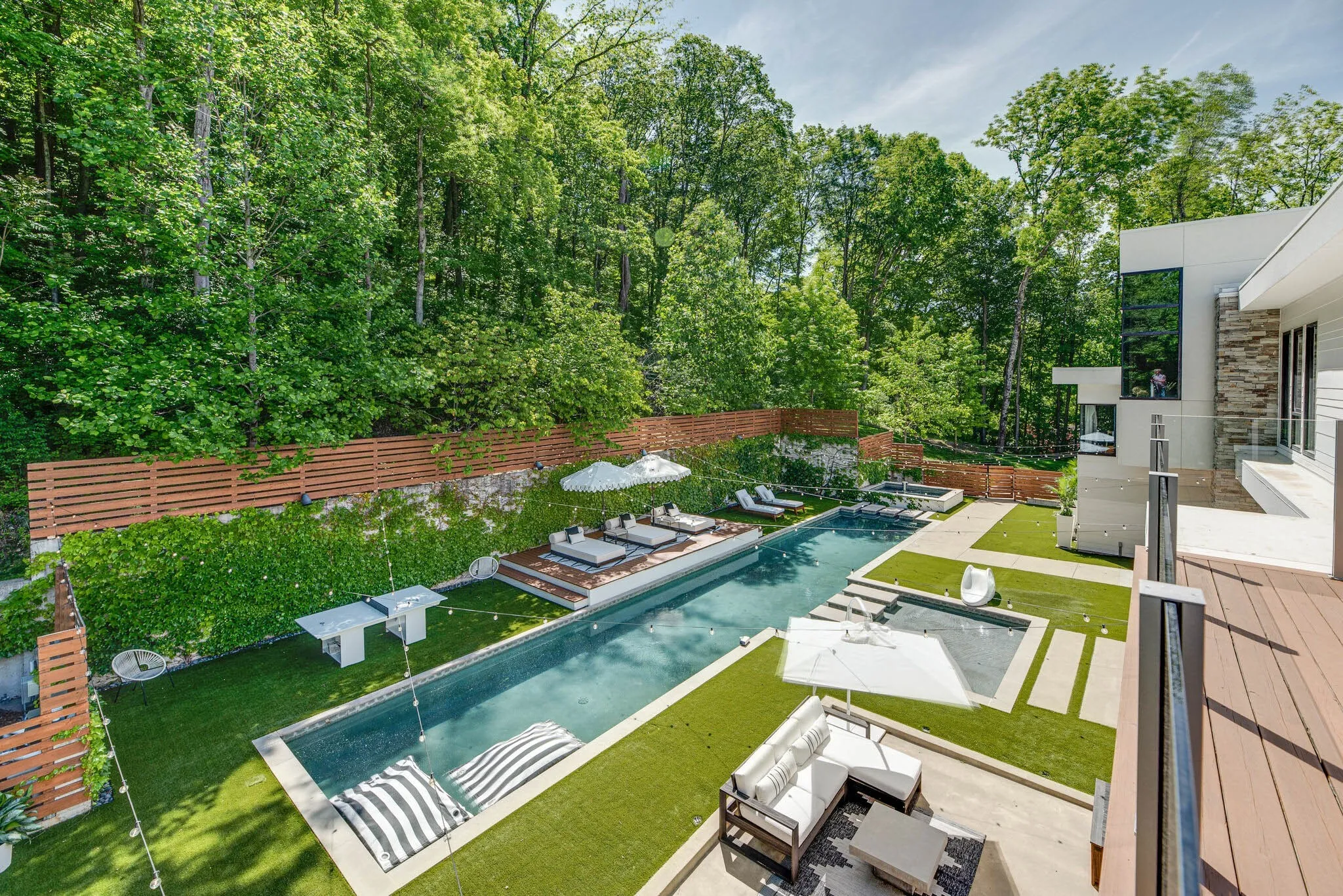 Straight out of Architectural Digest, Nashville Lifestyles calls this modern home the Green Hills Treehouse. Nestled in the treetops of Oak Hill, just 5 mins to all of your favorites, this luxurious home exudes privacy, seclusion, exclusivity, & design. An entertainers dream, the main floor opens to the backyard oasis w vistas at every turn, complete w 65ft L, 4ft D Gunite heated pool w underwater speaker system, 10 person hot tub & turfed yard. Custom favorites include a Poggenpohl kitchen w Miele Appliances, induction cooktop, Ligne Roset lighting, & a tiered dining room w accordion doors to the outside. Primary retreat secluded on the 3rd floor w a newly renovated bathroom, library/office/studio & roof top terrace with 360 views of nature. Home was built with security in mind, a detailed list of features available upon request, but everyone will appreciate the verified storm shelter and whole house generator.