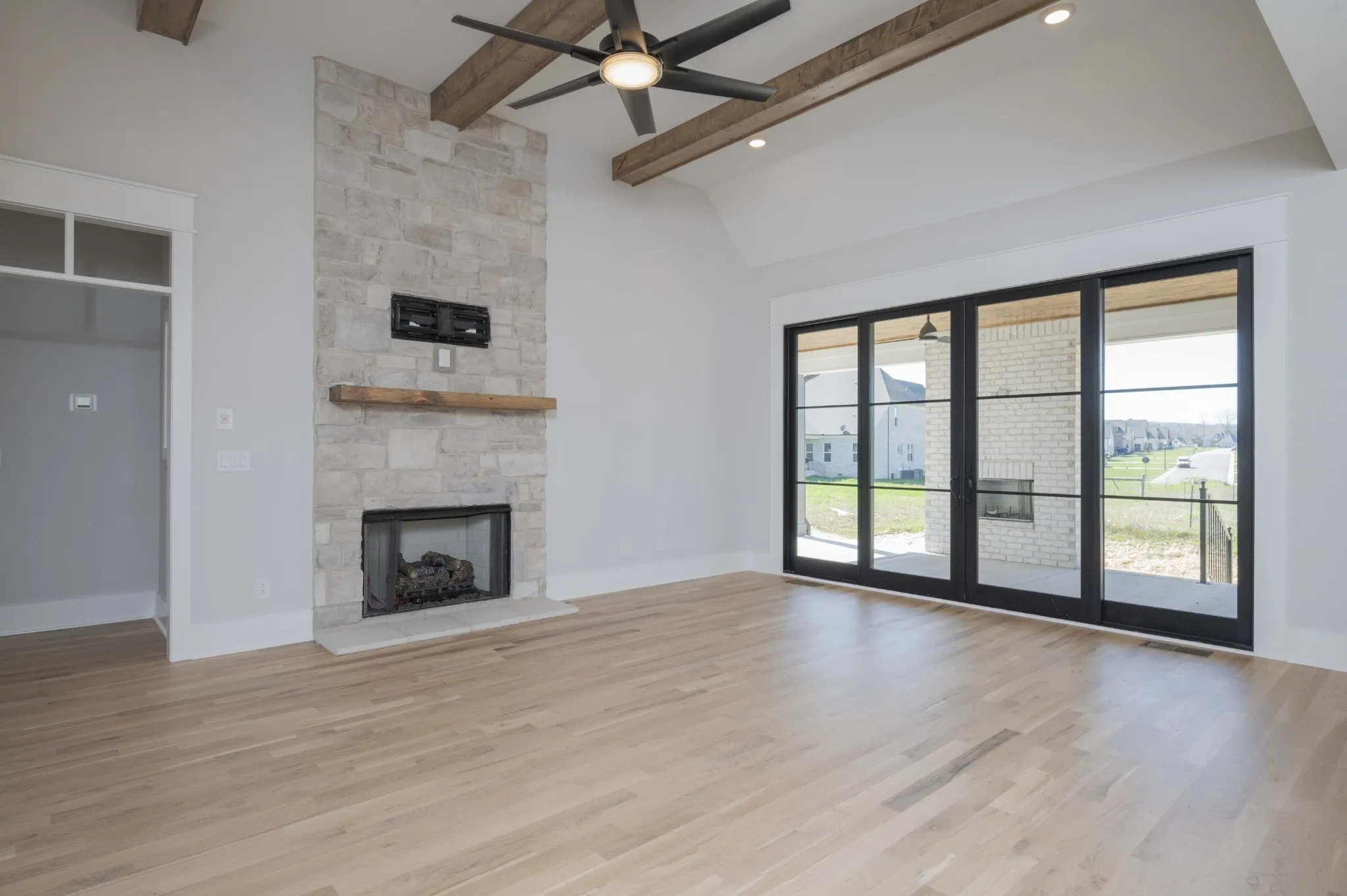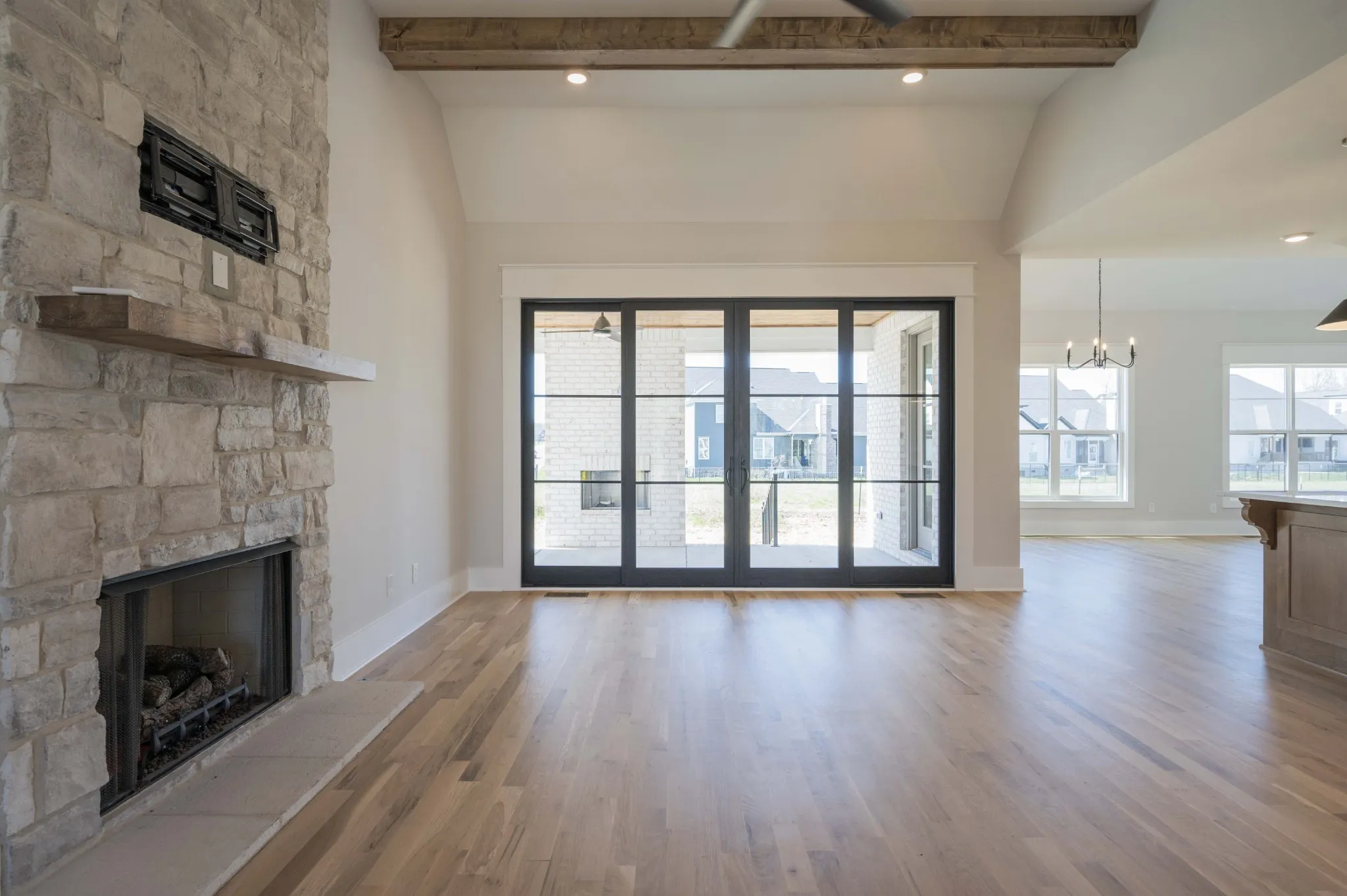 Absolutely Gorgeous! 8 x 12′ Marvin Slider great room door. 2 bedrooms on main level. Open plan with hand stained Wood beams, Stone Accent Wall, stone Fireplace, custom Cabinets, custom vent hood & Calcutta Andromeda Quartz tops. White Oak hardwood throughout main level. Large porches with stained beadboard ceilings. Home backs up to green space strip. Woodburning fireplace on rear porch. Buyers/ Buyers agent to verify elementary school due to enrollment capping. Seller to pay 1% towards buyers closing expense and preferred lender SWBC (Keith Morrow) to cover 1% of Loan Amount with full price offer.