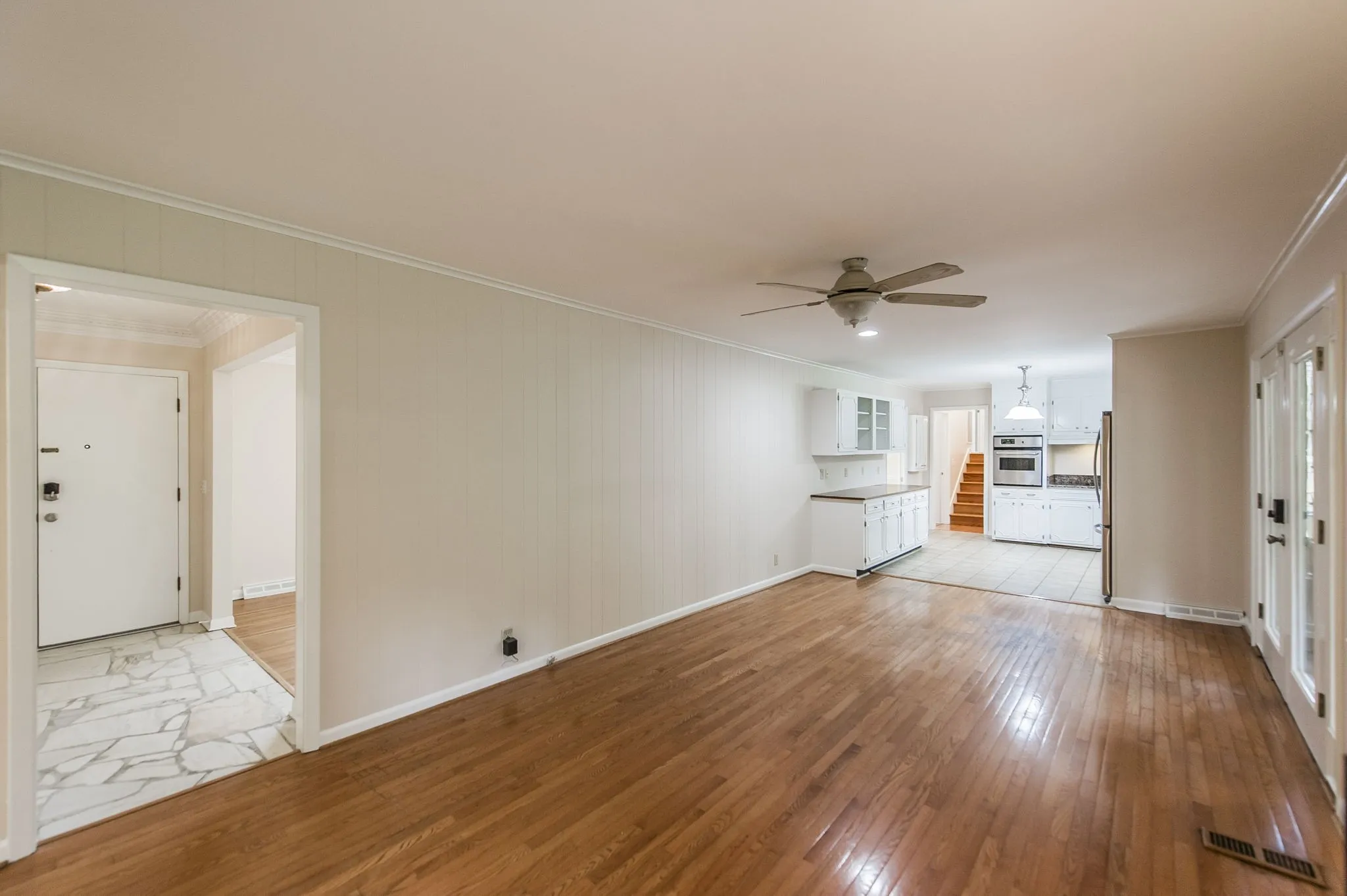 Come See this Renovated Ranch home located in the heart of West Meade! Stunning Western Cedar Screened Porch overlooking the private backyard and concrete patio with all the deer. Freshly painted, Granite Counters, Stainless appliances, Stately Circular Driveway with Stone Mason Parking Area! Original Hardwood Floors, Crown Molding, Encapsulated Crawl Space, Updated Electrical. So many upgrades!
