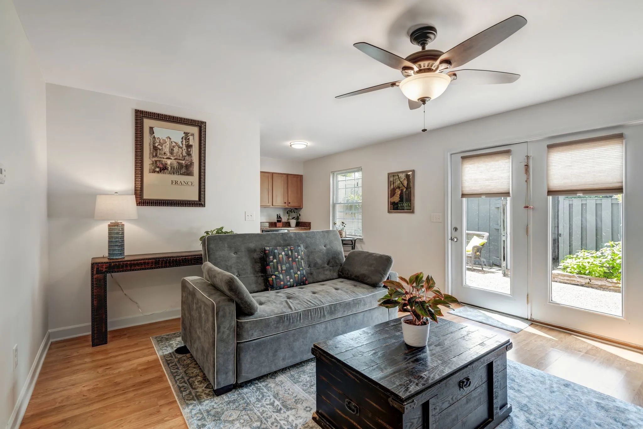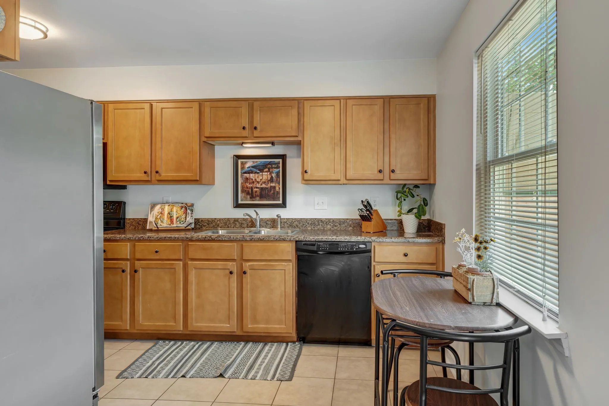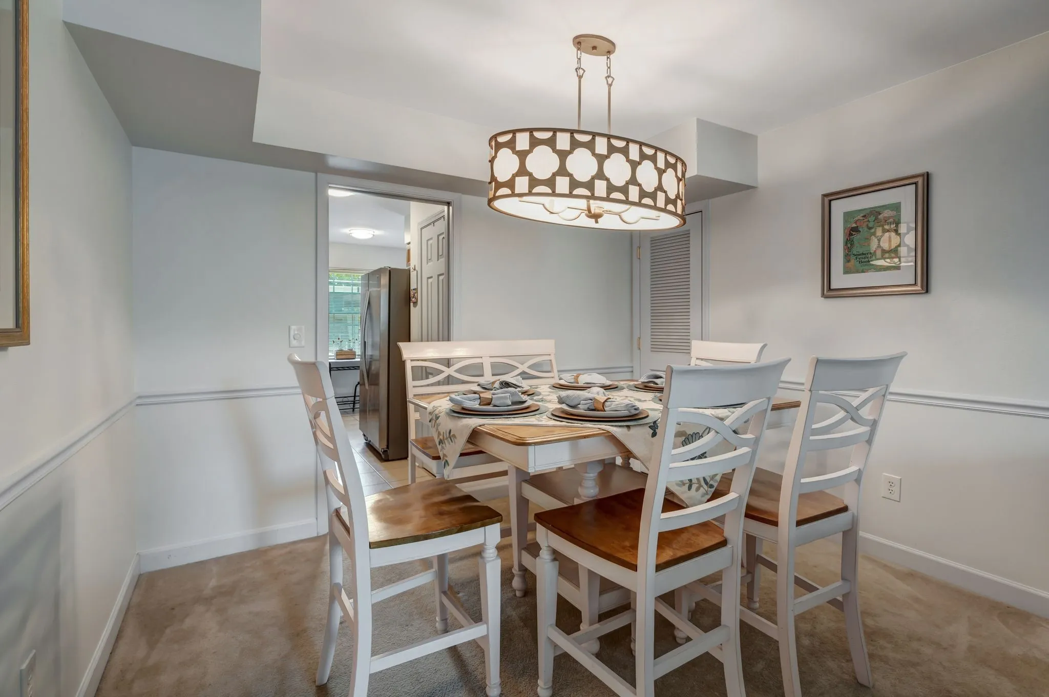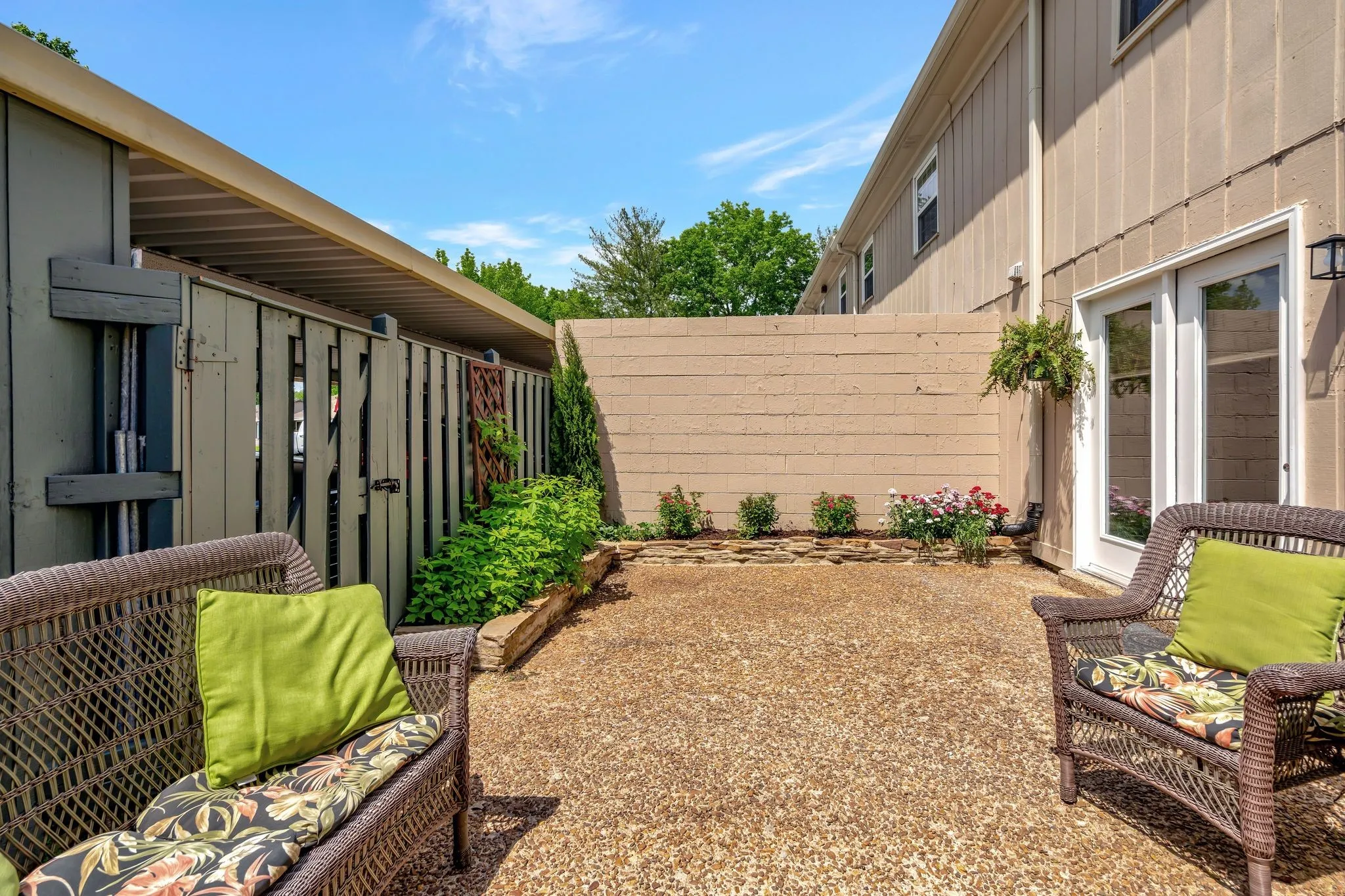 This updated unit boasts fresh paint and new fixtures throughout, creating a stylish ambiance. The great room features a cozy fireplace, flanked by built-in bookcases. The dining room is highlighted by a striking decorative fixture and is conveniently adjacent to the kitchen, with its own eating area. The bathrooms have been modernized with lovely tile work and chic vanities. Wake up to views of trees from the spacious master bedroom. Each bedroom is equipped with ceiling fans and walk-in closets for optimal comfort and storage. The back patio is an oasis, featuring a brick planter and stone landscaped bed. A two-car carport with an attached storage shed offers protection from the elements and access to the great room through the patio. Within walking distance is One Bellevue Place, which is home to over 40 stores and restaurants, grocery, Ford Ice Center, and a movie theater. The unit is a short bike ride from the newly touted James Lawson high school and the Bellevue public library!