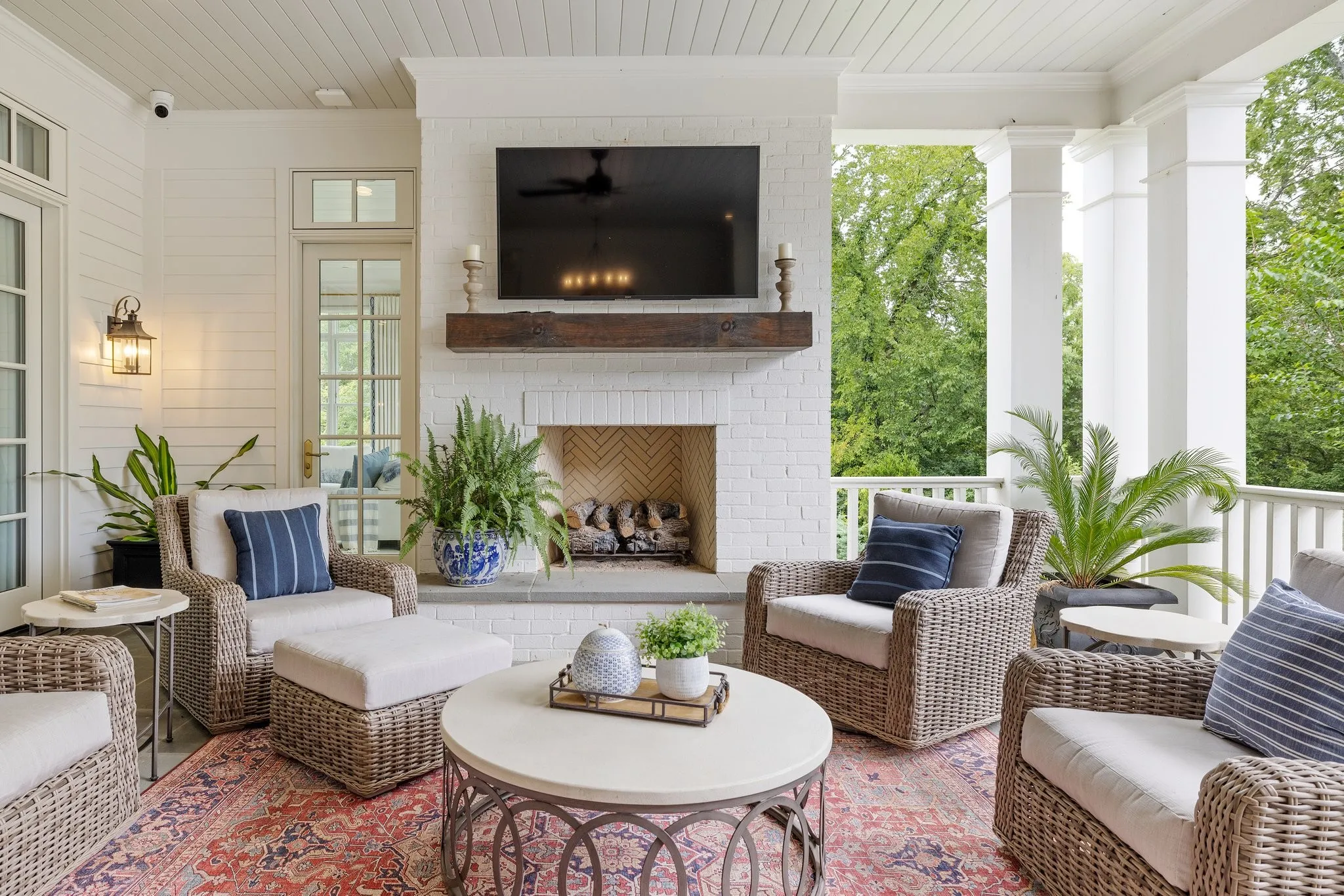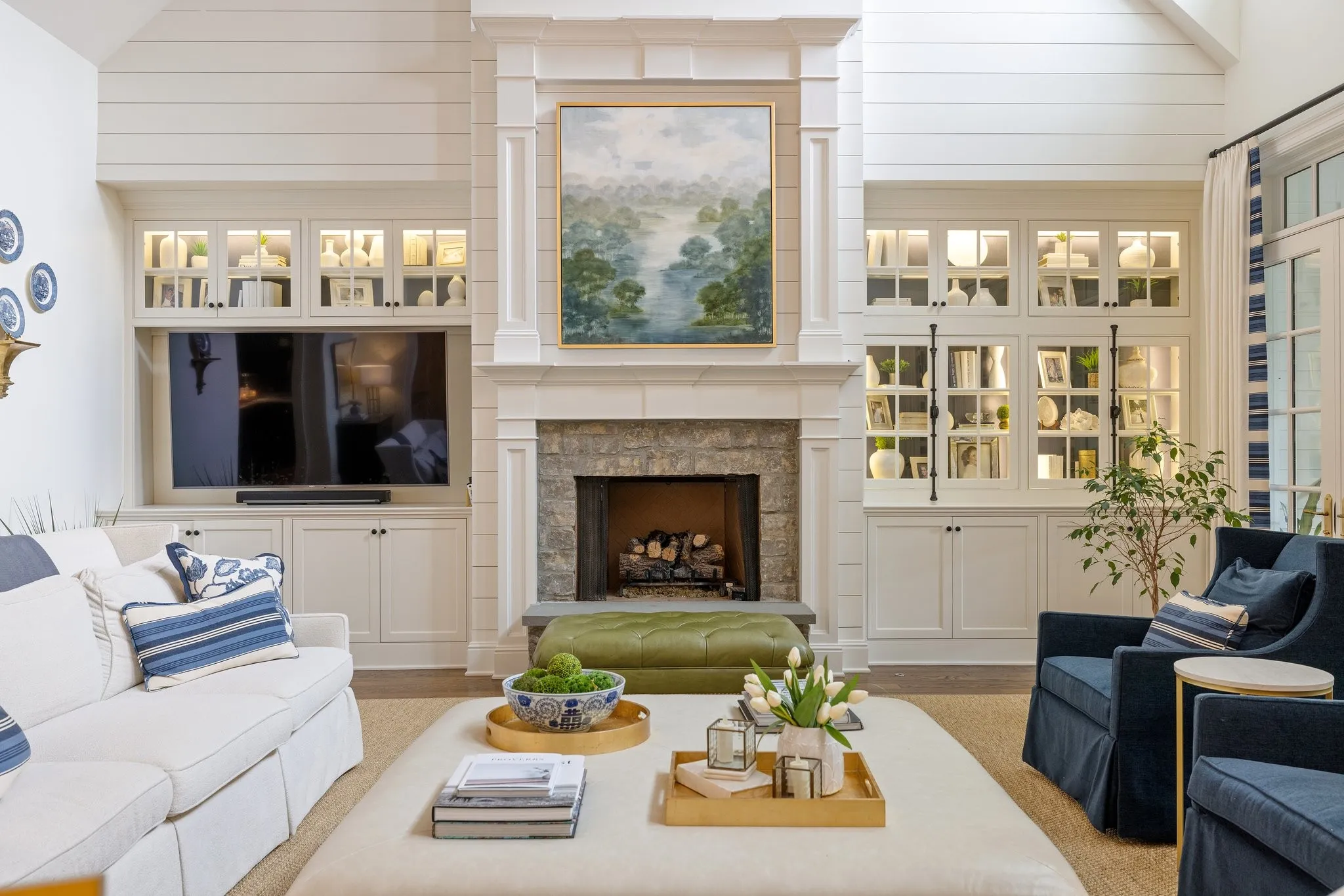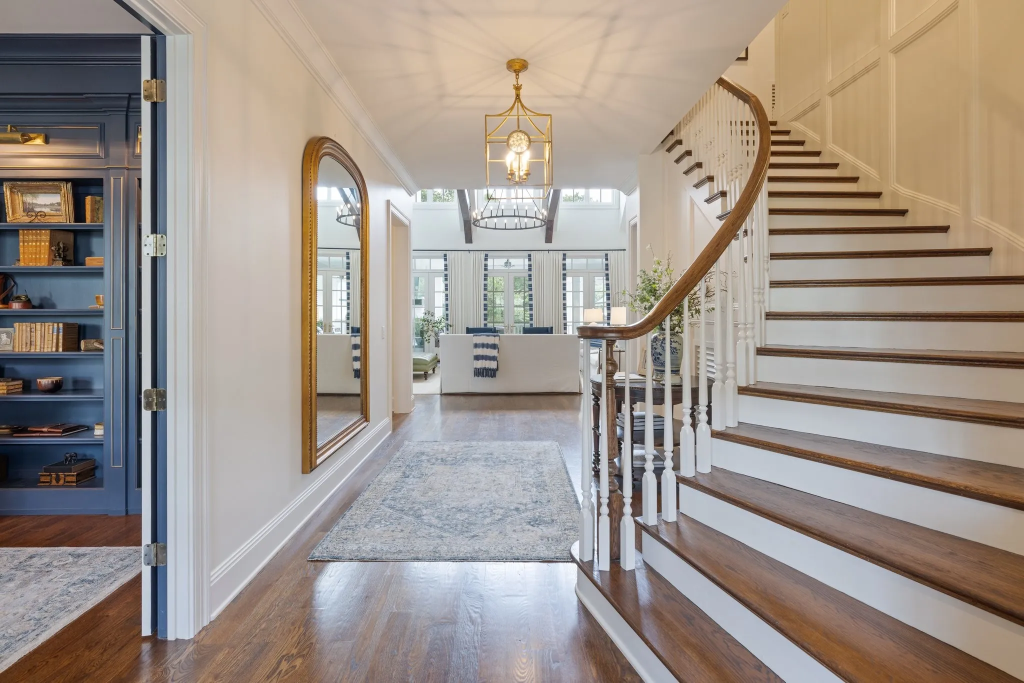Luxury living in a Davis Properties home that boasts elegance & comfort. The circle drive & double porches welcome you. The interior is professionally designed & decorated. Curved stairway, solid wood beams–this home is packed w/ details. The family room/dining room has 5 French double doors, a stone fireplace & built ins. The custom window treatments in the home may remain. The kitchen is a chef’s dream–Wolf stove w/ double ovens, Built-in Sub Zero Refrigerator & Microwave Cabinet, White Dove cabinets w/ brass hardware, Old Chicago brick backsplash, & a huge island. Butler’s pantry boasts a Sub Zero Ice Maker, Wine Fridge & mirrored walls. The large pantry includes workspace. The Primary suite is dreamy—Cathedral ceiling, sitting room, windows w/ remote shades & custom drapery, bath w/ inlaid marble floors, his & her closets. 5 ensuite bedrooms, bonus room, storage galore & 1,300+ sf of porches. PLUS-the 5-car garage w/ workshop will impress! Near BGA in the heart of Franklin!