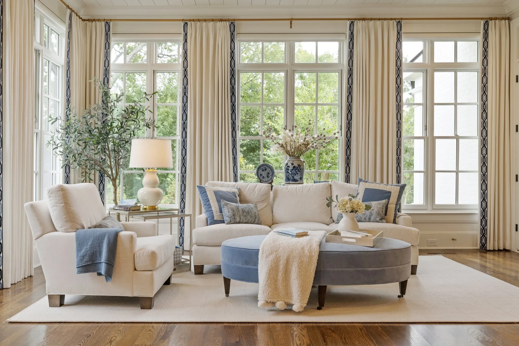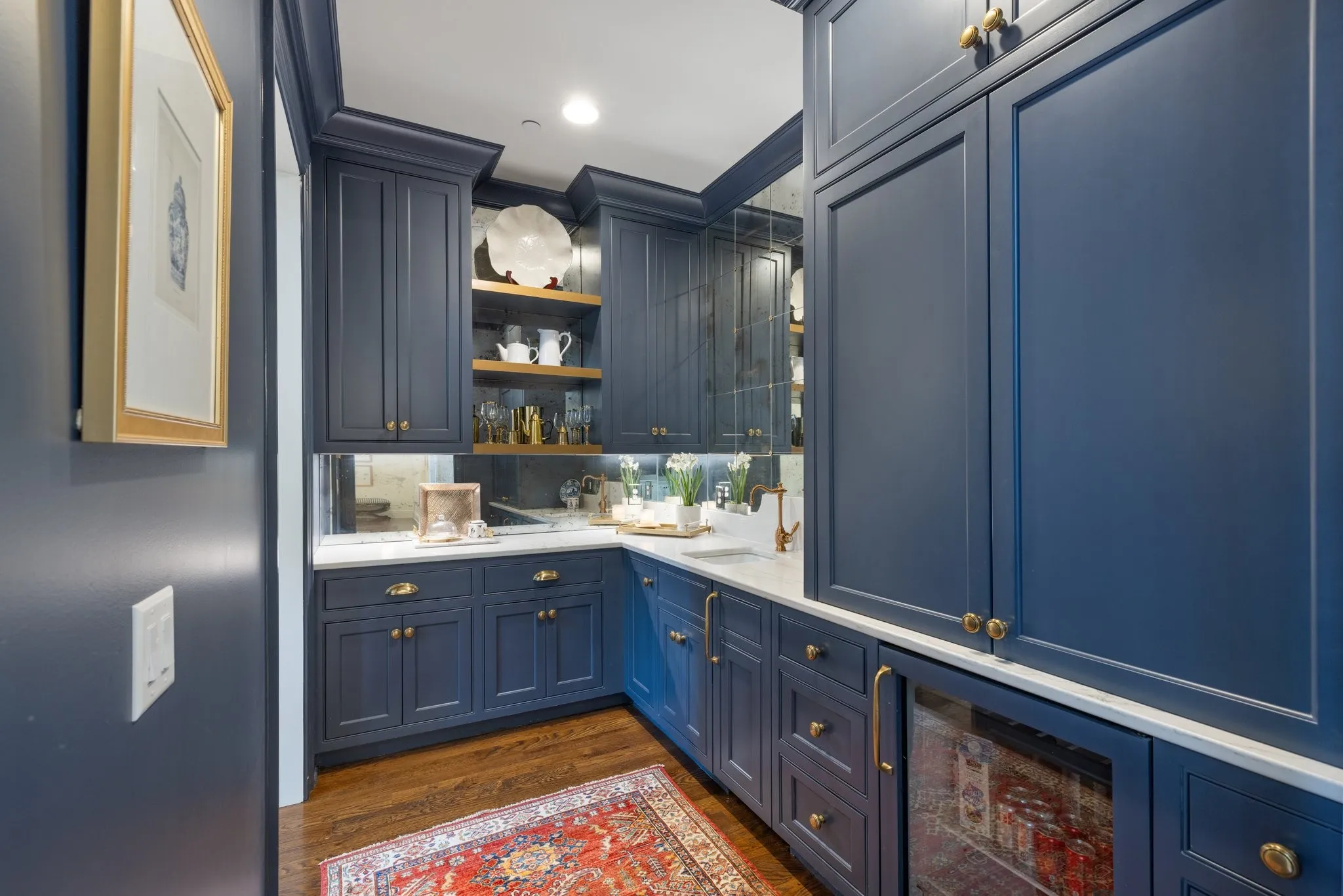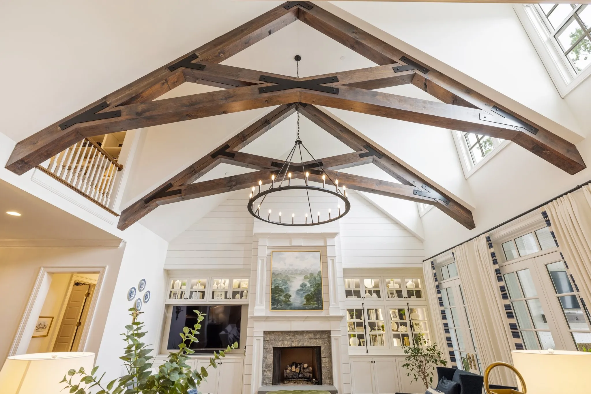 Luxury living in a Davis Properties home that boasts elegance & comfort. The circle drive & double porches welcome you. The interior is professionally designed & decorated. Curved stairway, solid wood beams–this home is packed w/ details. The family room/dining room has 5 French double doors, a stone fireplace & built ins. The custom window treatments in the home may remain. The kitchen is a chef’s dream–Wolf stove w/ double ovens, Built-in Sub Zero Refrigerator & Microwave Cabinet, White Dove cabinets w/ brass hardware, Old Chicago brick backsplash, & a huge island. Butler’s pantry boasts a Sub Zero Ice Maker, Wine Fridge & mirrored walls. The large pantry includes workspace. The Primary suite is dreamy—Cathedral ceiling, sitting room, windows w/ remote shades & custom drapery, bath w/ inlaid marble floors, his & her closets. 5 ensuite bedrooms, bonus room, storage galore & 1,300+ sf of porches. PLUS-the 5-car garage w/ workshop will impress! Near BGA in the heart of Franklin!