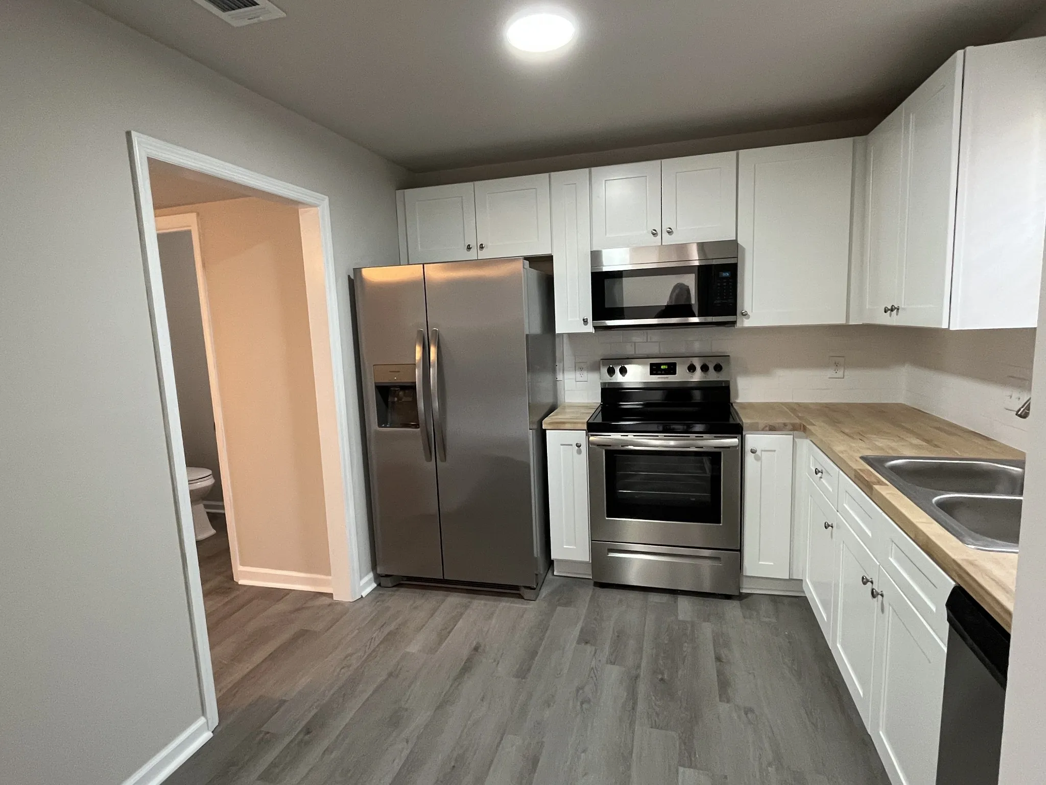 Spacious all brick 2 bedroom,2.5 Bath townhome for rent! Available June 10th!! Both bedrooms and 2 full bathrooms upstairs, 1/2 bath downstairs. LVP flooring throughout, kitchen has stainless steel appliances (refrigerator, stove/oven, dishwasher, built-in microwave), and butcher block countertops. W/D hookups, living room w/ fireplace (decorative purposed only) and French doors to private deck. Tenant is responsible for all utilities and lawn care. 12-month lease. Pets negotiable w/ pet fee and pet rent. Breed and weight restrictions on dogs. UNIT IS OCCUPIED – 24 hour notice required for showings.