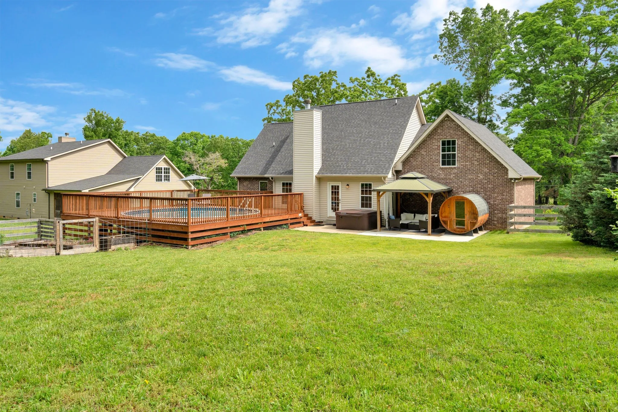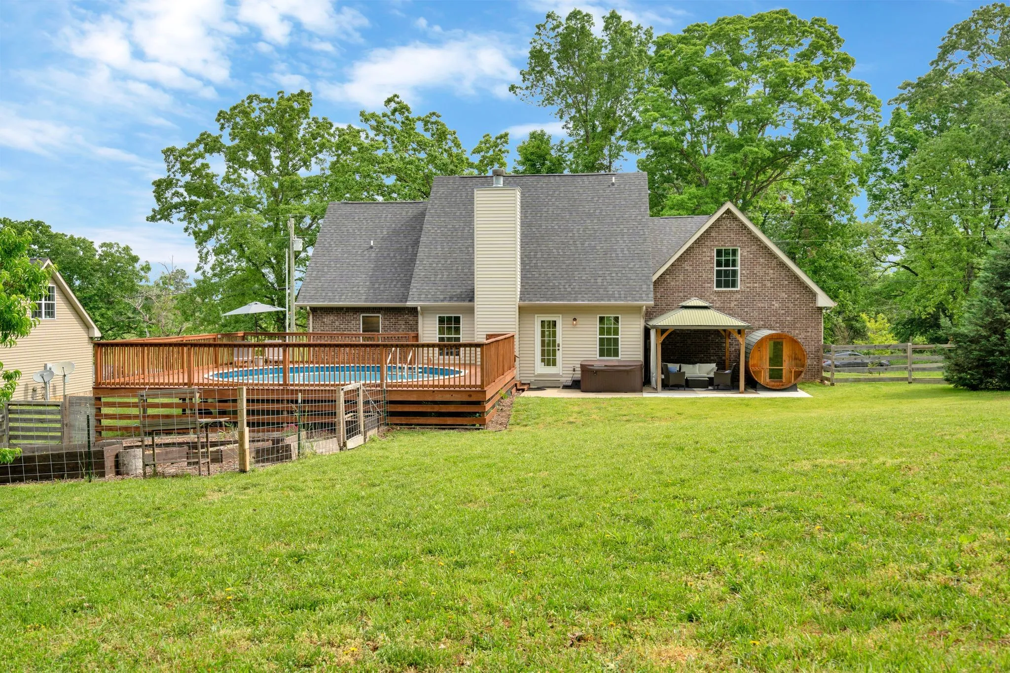 Beautiful, bright, clean, and move-in ready. Less than 20 minutes from Nashville. Open concept floor plan, granite countertops, and stainless steel appliances. Wood fireplace and hardwood floors on the main level. Master on main with jetted tub, tile, and two walk-in closets. Large Bonus room upstairs. The beautiful pool over looking the garden, with a large deck, allows for outside furniture and lounging chairs. Cozy 4-person Finish Barrel Sauna, hot-tub and gazebo make this the ultimate hosting venue. HVAC unit less than a year old.