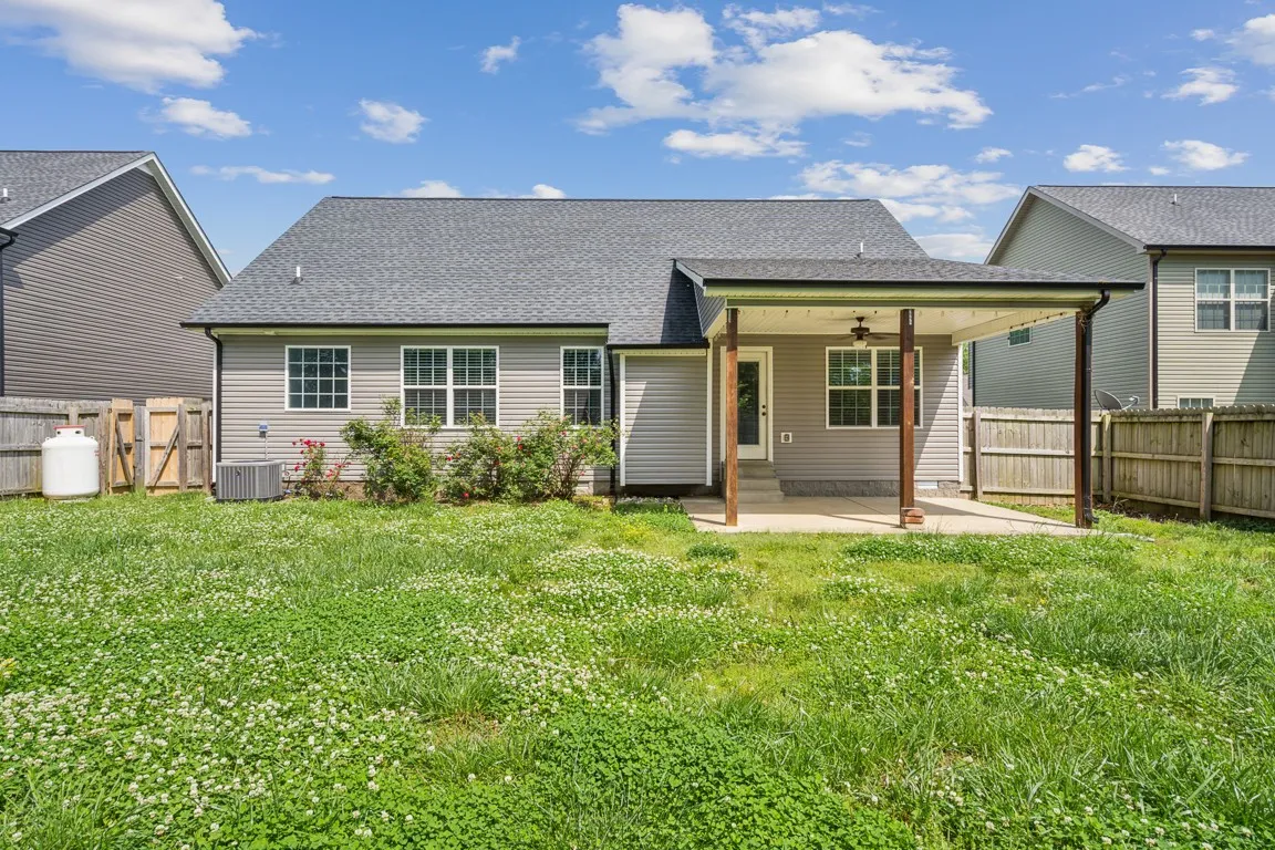 Discover the perfect blend of comfort and convenience in this beautifully maintained home, ideally located near restaurants, schools, shopping centers, and Fort Campbell, KY. Featuring three spacious bedrooms and two full bathrooms, this residence boasts gleaming hardwood floors throughout the living areas, including the kitchen and dining room. The open layout creates an inviting atmosphere that flows seamlessly outdoors to a covered patio and a privacy-fenced backyard—perfect for entertaining or quiet relaxation. The home includes a versatile bonus room, providing additional space for hobbies or home office. Additionally, enjoy the convenience of an oversized laundry room strategically located near the primary bedroom. This home is a true gem, ready for you to make it your own.