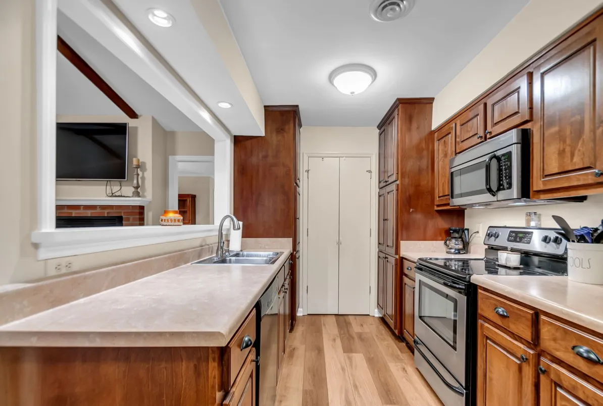 Don’t miss the opportunity to call this beautiful condo home. Move-in ready and priced to sell. Enjoy this one level, end unit condo in Bellevue’s popular River Plantation! Nice entry foyer for greeting your guests. Spacious living room/dining room combination with double sided, gas log fireplace, and luxury vinyl plank flooring. Cozy den with vaulted ceiling, wood beams, gas log fireplace with remote, vinyl plank flooring. Two large bedrooms, and 2 full baths. Primary bedroom with walk in closet. Beautiful covered outdoor patio space. Storage room off the 2 car carport. This unit is well maintained, and ready to move in. Clubhouse, swimming pool, and tennis court across the road. Roof was replaced in 2023, gutters and soffits replaced January 2024. Luxury Vinyl Plank floors and cover for the patio installed in 2021.