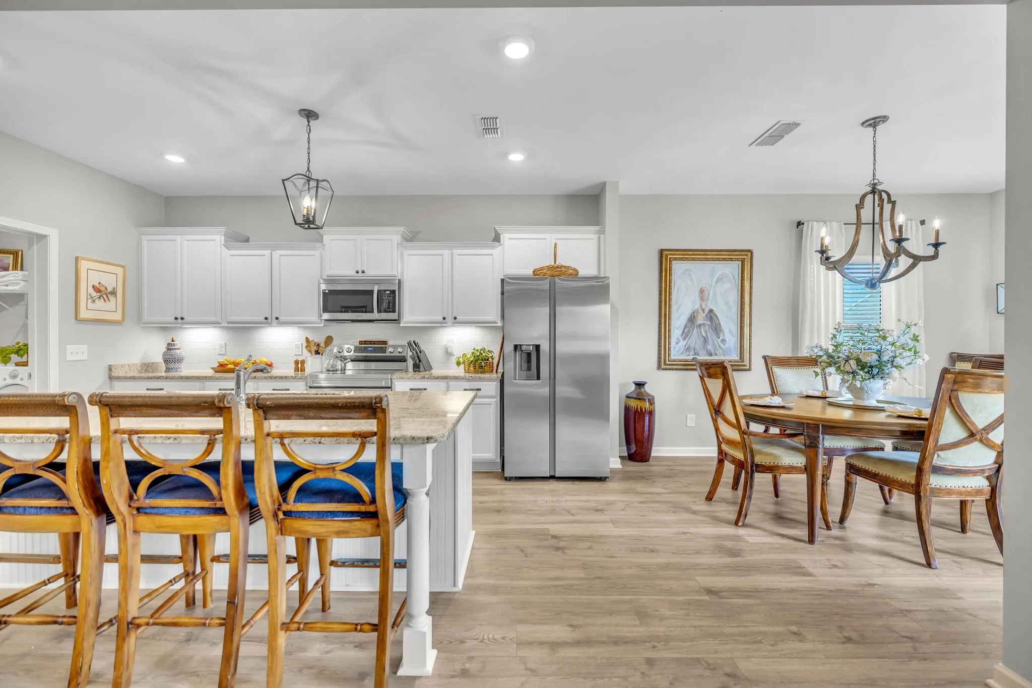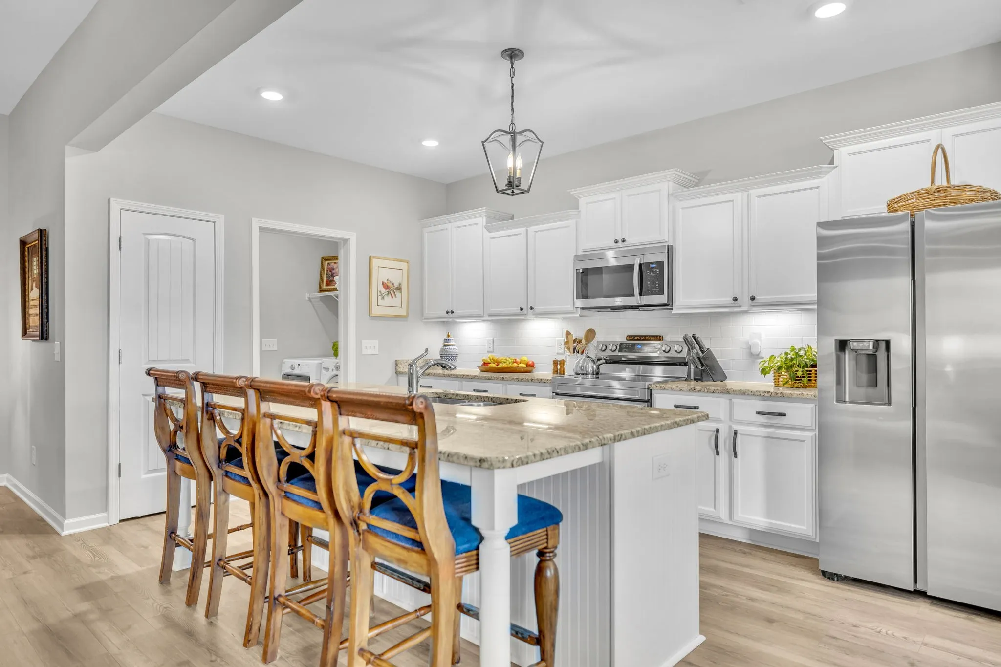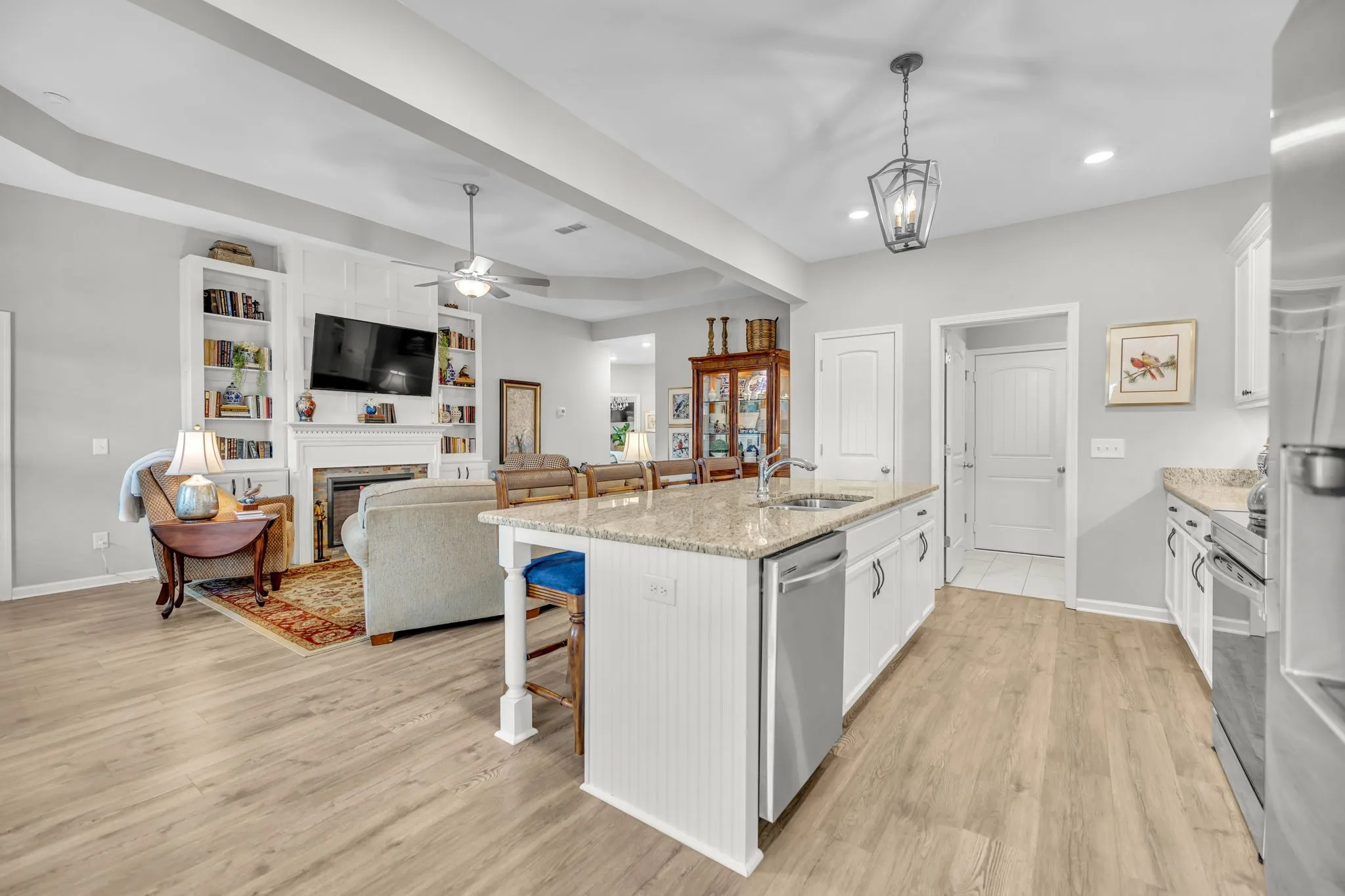 Step into modern comfort and timeless charm with this recently built 3 bed, 2 bath home. Featuring an inviting open floorplan, cozy fireplace in the living room, and a sleek, heated and cooled garage for year-round versatility. Enjoy the convenience of single-level living with a covered back patio, perfect for entertaining or simply unwinding. Future neighborhood pool will be within walking distance! Welcome home to effortless elegance & comfort in this better than new home!