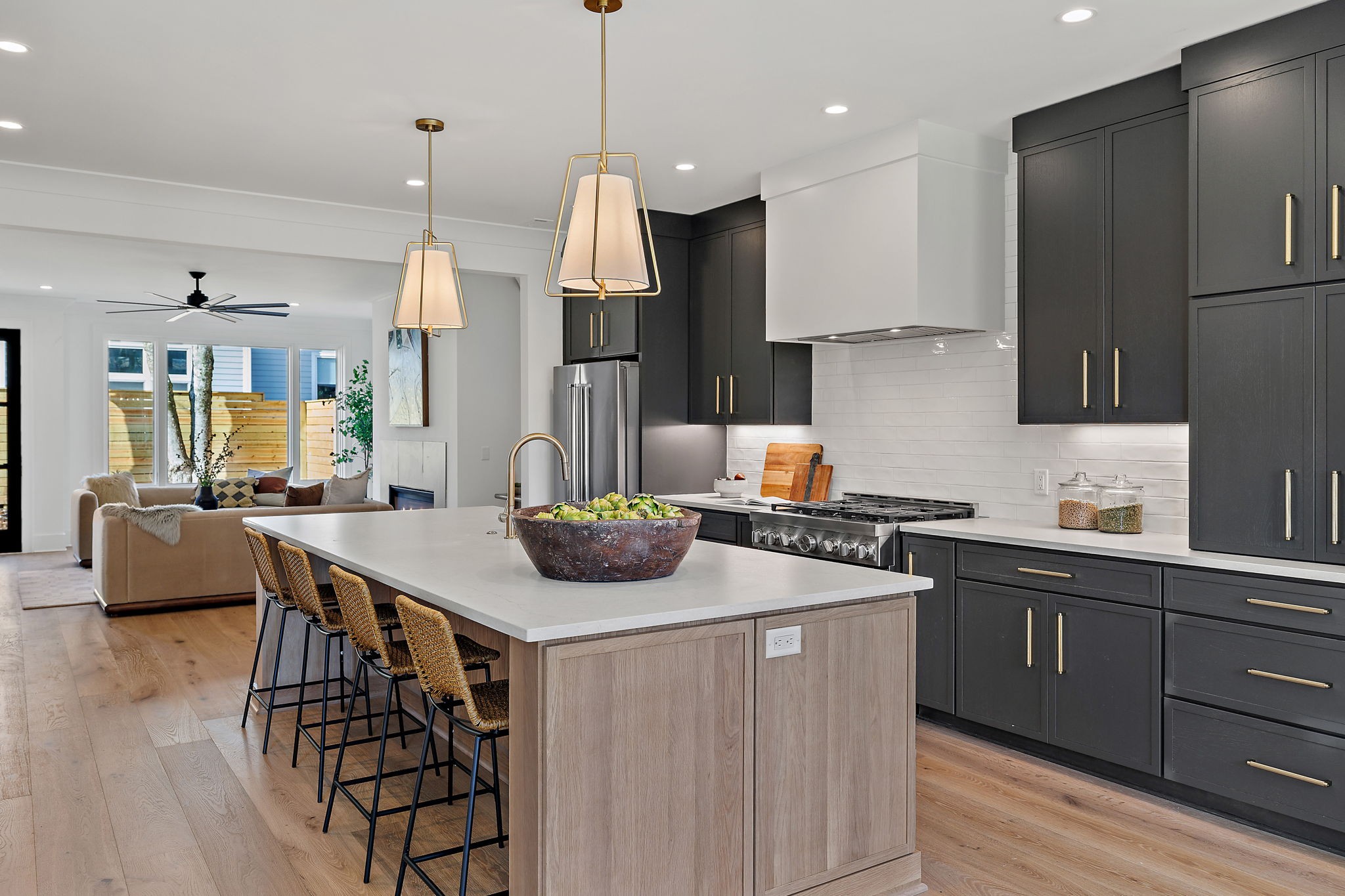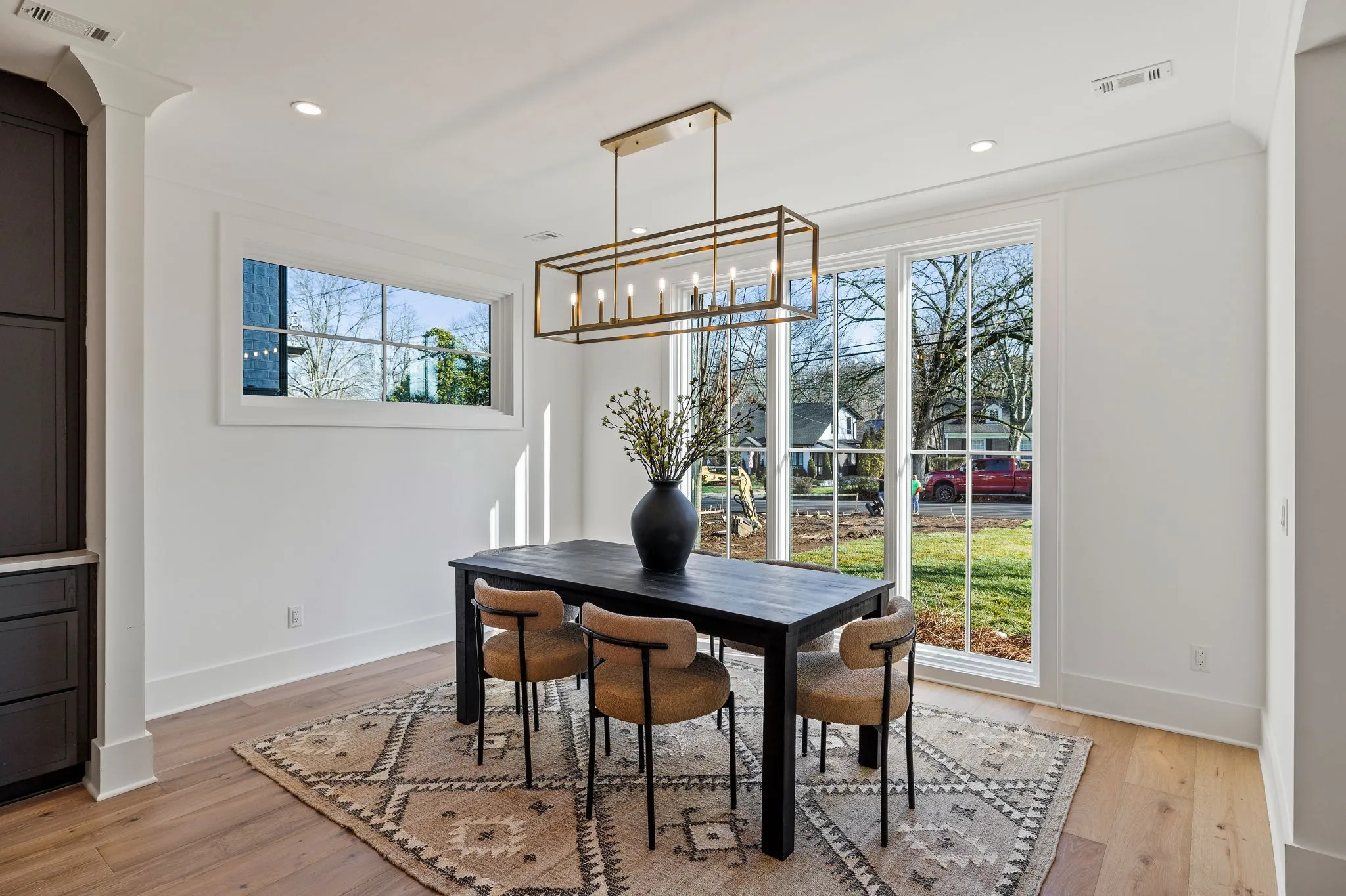 Brand new all-brick home ideally situated in Green Hills on a corner lot. Step through the double door glass entry doors into a welcoming 2-story foyer, graced w/hardwd floors. To the left, discover a versatile guest suite or office, while to the right an informal dining area awaits w/floor-to-ceiling windows. The kitchen boasts a fully functional island w/seating & a KitchenAid gas range paired w/a vented hood. The LR offers convenient backyard access & feat. a gas fireplace w/a mantle. Access the 2-car rear-entry garage conveniently located near the main flr half bath/drop zone. Upstairs retreat to the primary w/ensuite, complete w/double vanities, soak tub, tiled shower & walk-in closet. 2 additional bedrms w/private bathrms, a laundry rm & bonus rm w/a powder room complete the upper level. Outside in addition to the driveway is an extended brick parking pad & sidewalk leading to the front entry. Easy access to nearby restaurants, and the greenway, shopping! Zoned for Julia Green.