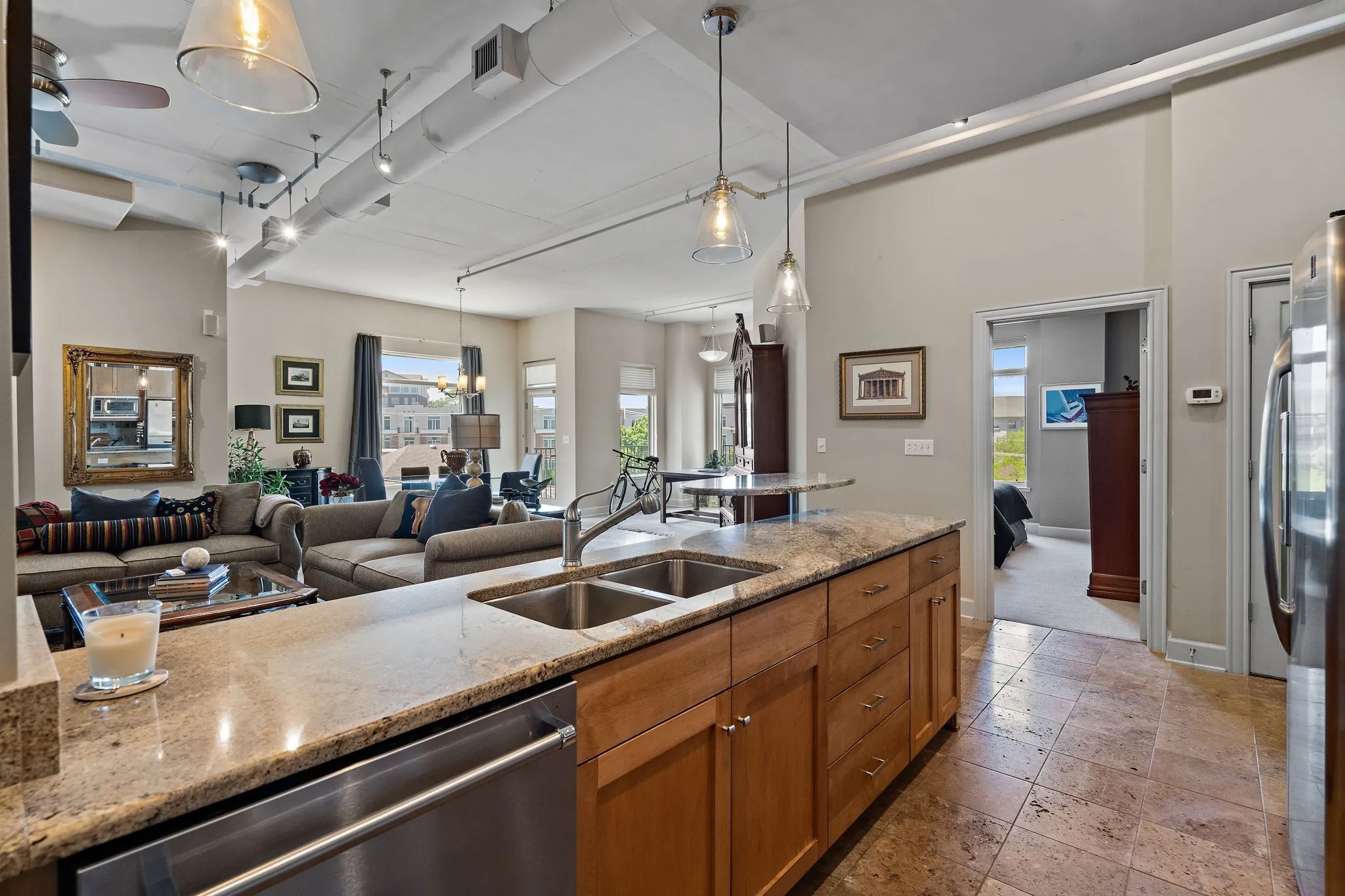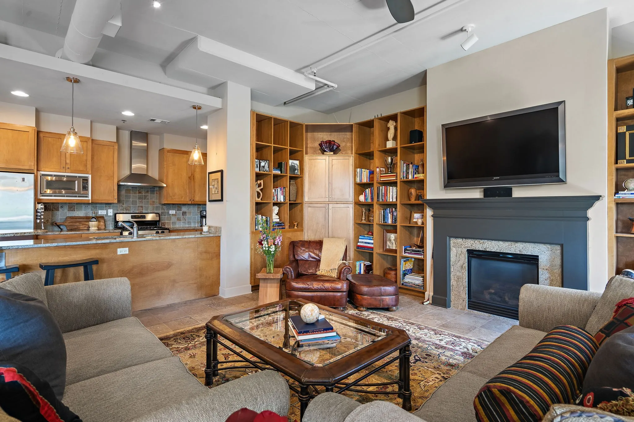 Discover elegant loft living in this one-of-a-kind 2-bedroom condo, the largest one-level unit in the building. Originally two units, this stunning residence was custom-designed during construction to create a sophisticated, luxurious space that feels like a single-story home. Enjoy the warmth of the gas fireplace in the spacious living area, complemented by beautiful oak bookcases, creating a cozy and inviting atmosphere. The condo offers a spacious, open layout with massive 8 x 14 owner’s closet, large bedrooms with ensuite bathrooms, and a chic, stylish feel throughout. Located in the vibrant West End Vandy corridor, you’re just steps away from BrickTops and a variety of other restaurants, offering a convenient and dynamic lifestyle. Plus, this condo comes with 2 prime garage parking spots located right across from the elevator, providing added convenience and ease of access. Experience an exceptional living environment in this unique and welcoming home.