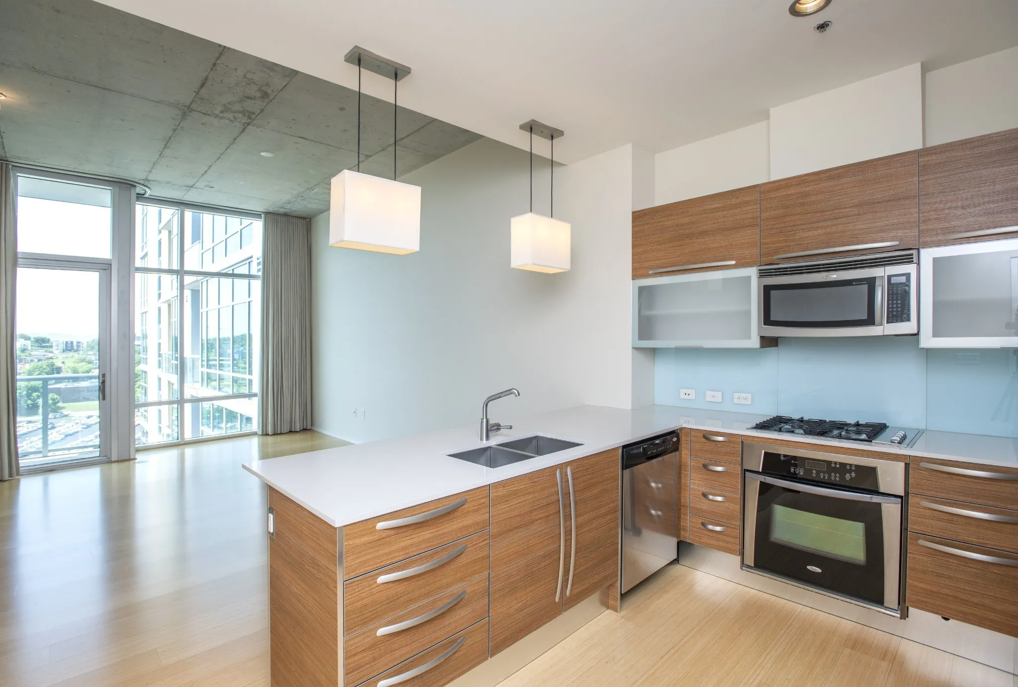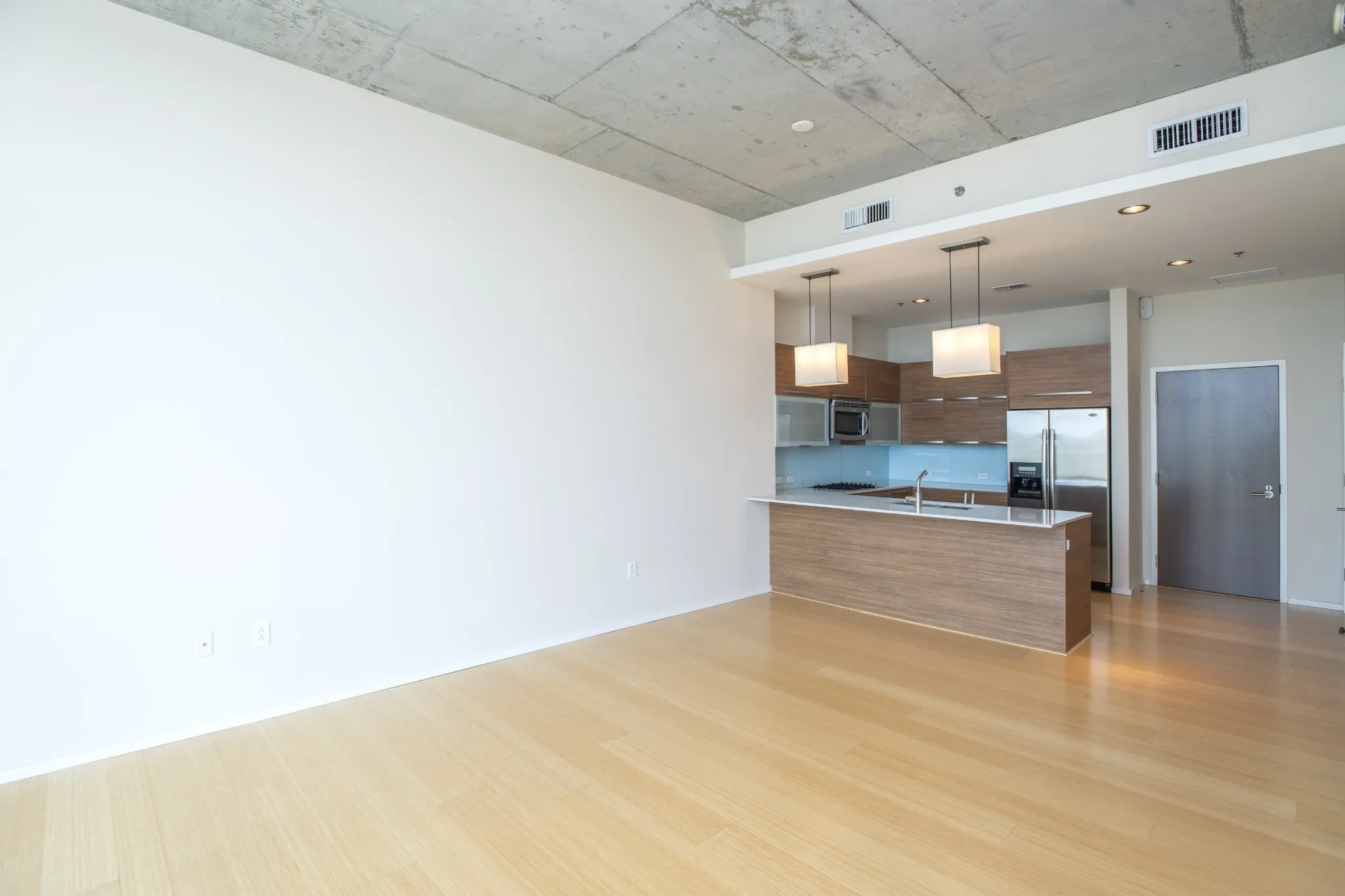 Contemporary 1-bedroom 1-bath, 12′ ceilings, Italian wood cabinets, Gas cooktop, Granite countertops in both Kitchen & bath. Bamboo floors. Italian tiled bathroom w/ tub and separate shower. Pets are welcome on a pet by pet basis. deposits apply per pet. Pool, gym and hospitality center. Unit conveys with parking in the garage. washer and dryer in unit. Exceptional address.