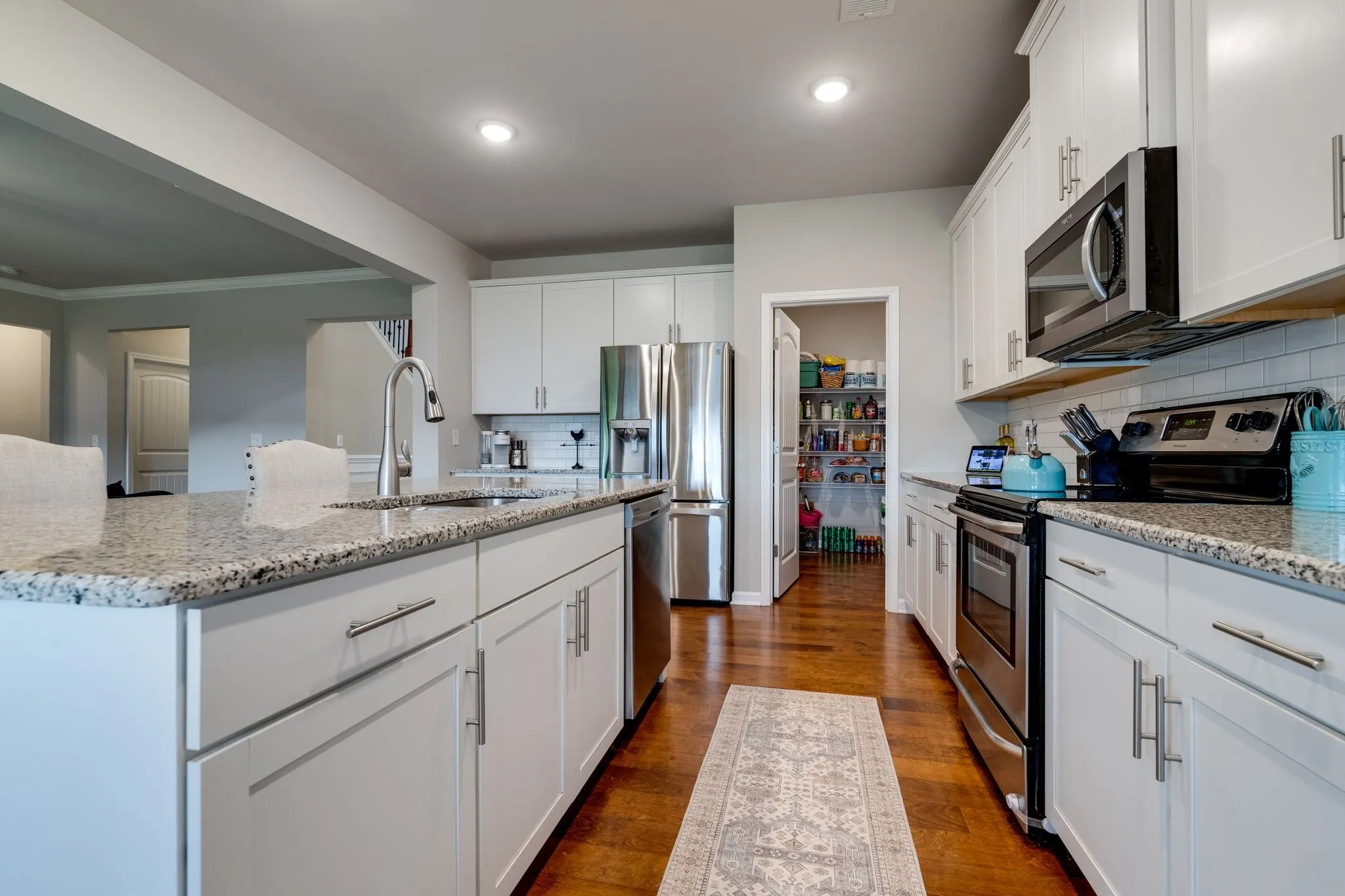 Motivated Seller *REDUCED $25,000 **($10,000 to BUYERS CLOSING)! Soaring entry, stunning staircase, wainscoting & trim accents, formal dining/flex room welcome you as you come inside. Open family room, kitchen & dinning nook. Family room can fit a big sectional or 2 large couches + chair & large entertainment center. 42” tall kitchen cabinets, granite countertops w/ HUGE island. Stainless-steel appliances. HUGE walk-in pantry. Master suite downstairs. Drop-zone & custom shoe shelving. Engineered hardwood / laminate in downstairs main areas. Upstairs opens to 2nd living room / loft + open study nook. All 5 bedrooms will fit a king size bed (the front boy’s room has one now) More storage: 4 walk-in closets + others, 2 decked attic spaces *NEW ROOF 2023 *TANK-LESS WATER HEATER *Roman shades & curtains *Sodded yard mature landscaping *Community Pool *Future re-zone to triple Stewarts Creek (Buyer to confirm w/ County) **LOWEST PRICE per sq’ in Woodmont currently $176 **GREAT DEAL**