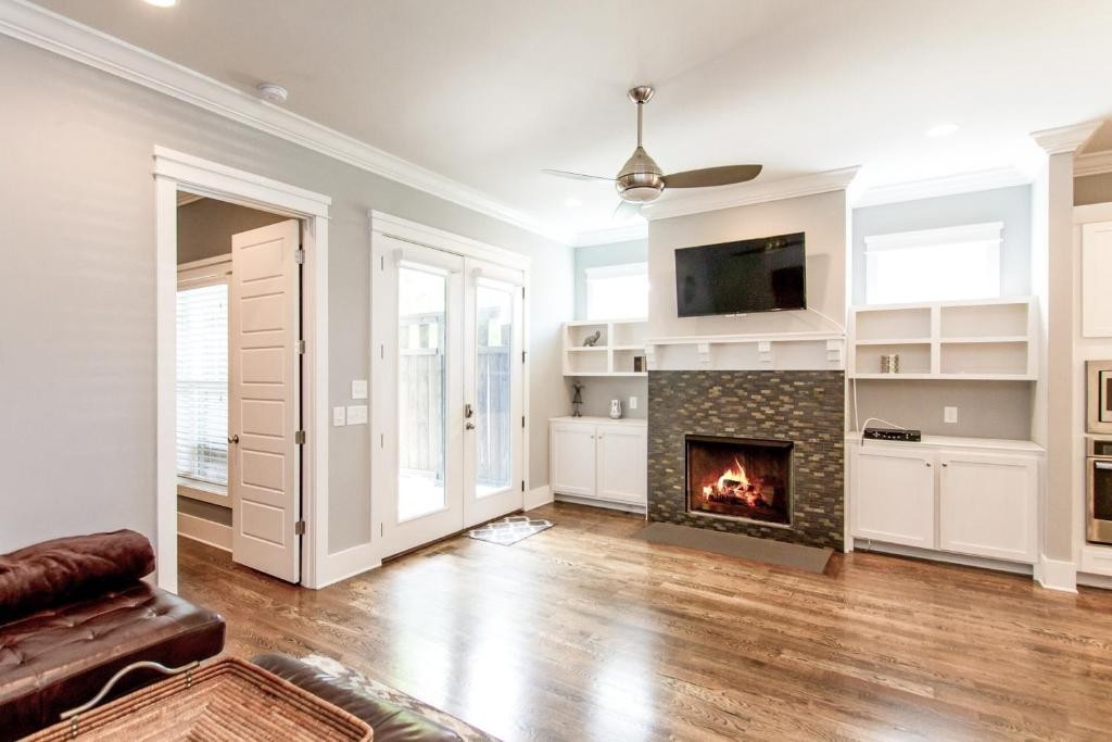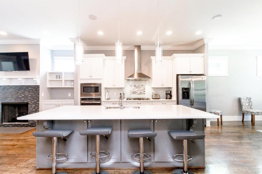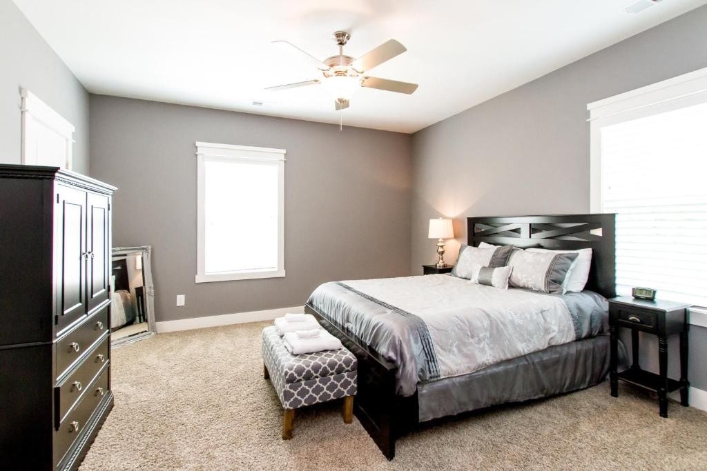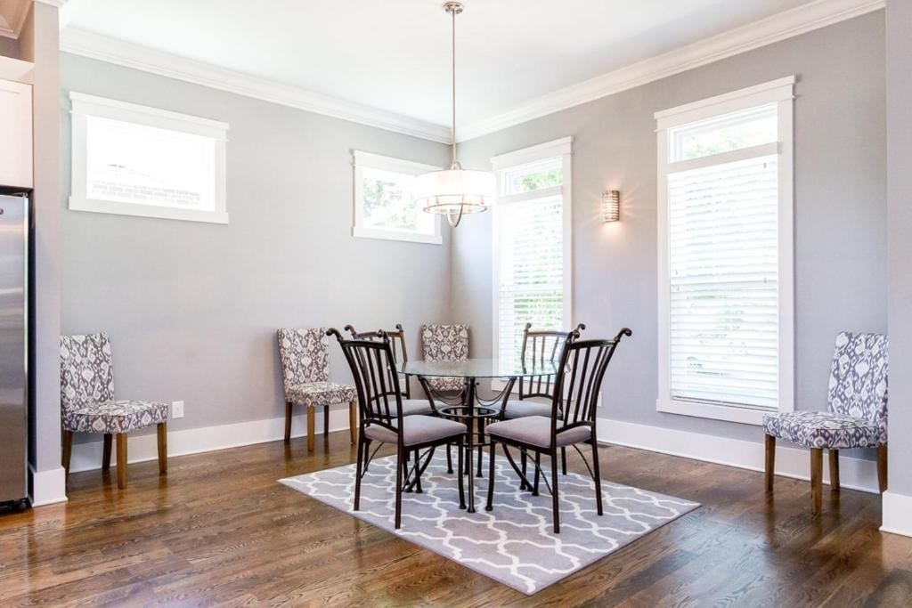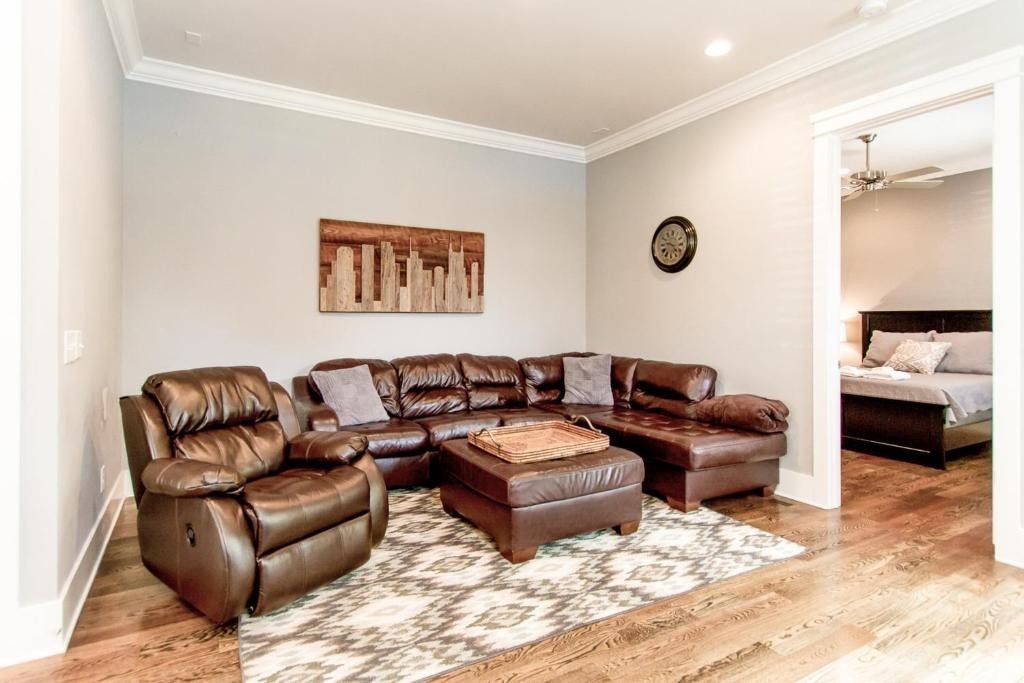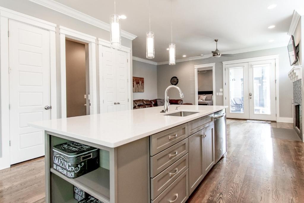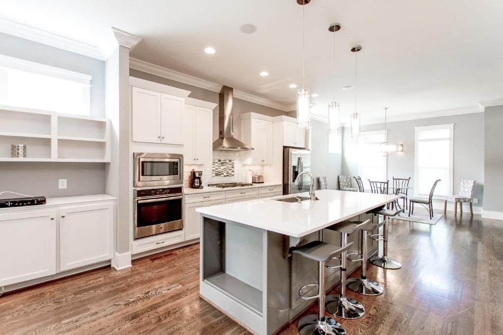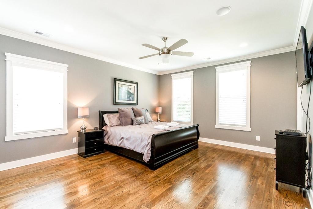 Furnished or unfurniished rental w/High End Finishes! OPEN Spacious 4 BR (1 on main with furniture closet) 3 1/2 BA *Quartz in Kitchen & Granite in Baths*Hardwood in Main Living Area, Master & Rec Room/Bonus* Master has 2 Custom Closets, Double Vanities & Grand Shower*3rd Bedroom up has Private Bath*Walk in Closets in All Up Bedrooms! Laundry room features Cabinets & Sink*Bonus Area Upstairs with 2 Sleeper sofas! Covered Front & Back Porch*Oversized 1 Car Garage with Parking in Rear