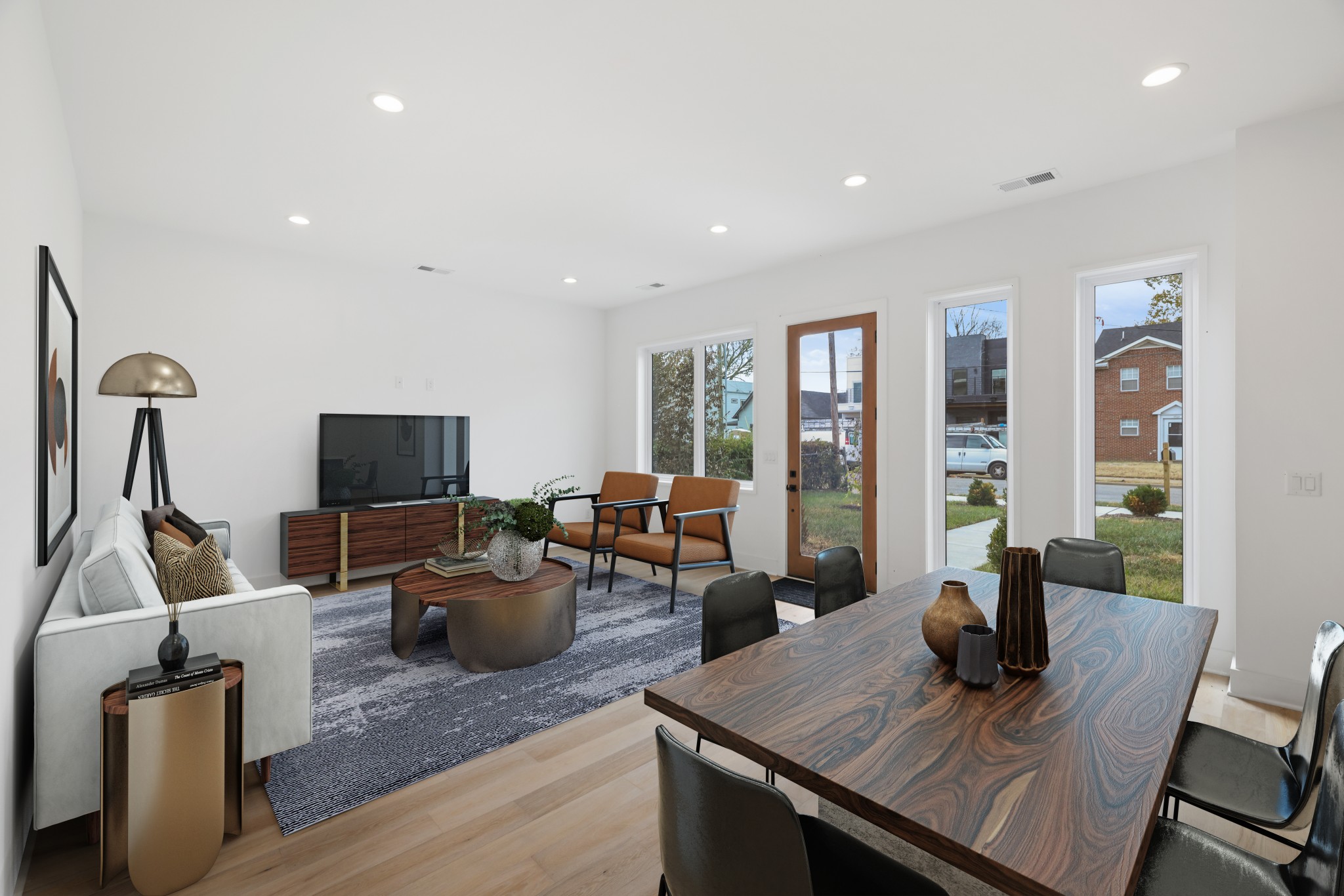 The builder is offering 2% to buy down the rate with the preferred lender! Beautiful 3-story new construction in Nashville with downtown views! Enter into the gorgeous open-concept living space flooded with natural light. The chic kitchen features sleek modern cabinets, a built-in fridge, and a large waterfall island. Up the stairs on the second floor, you will find 2 bedrooms with en-suites and a conveniently located laundry room. The primary is enormous with a dream walk-in closet, and the primary bathroom boasts a dual vanity and wet room with a rainfall shower and tub. 2 additional bedrooms on the third level share a well-appointed bathroom, and the upstairs flex space is complete with a wet bar for elegant entertaining. Additional laundry room on the third floor for added convenience. A charming covered terrace allows you space to unwind outdoors. 2-car garage and parking pad for additional vehicles, all in a great location near downtown Nashville!
