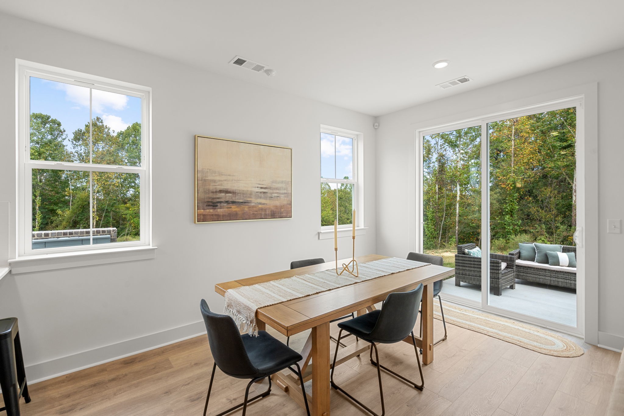 Located In Riverwalk subdivision on a ridge surrounded by lush green trees, this community is tucked away from it all yet only minutes from I-40 and Nashville. This quaint development consists of 61 townhomes and has access to amenities that include 3 pools, playground, walking trails by the Harpeth River, pavilion with picnic tables and fireplace. Beautiful curb appeal with brick or Hardie exteriors with 3 beds, 2.5 baths plus a 1 car garage. Highly upgraded features include: hard surface flooring on 1st floor, oak stairs, quartz countertops throughout, white cabinets, subway tile backsplash, black hardware & faucets, craftsman trim details, double vanities, subway tile shower and water closet in owner’s suite.